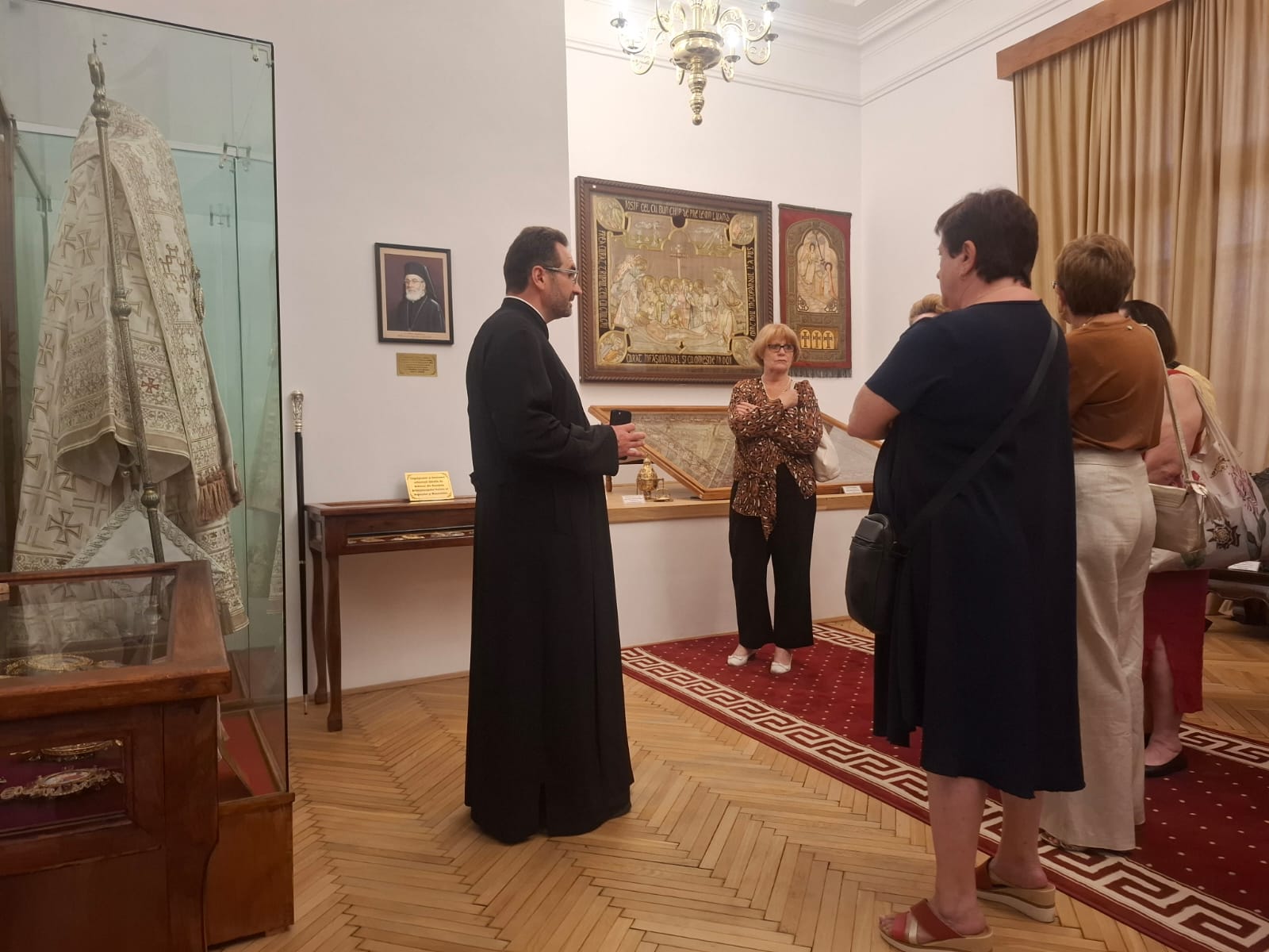 După o prezentare a istoricului monumentalei biserici ctitorită de către Sfântul Voievod Neagoe Basarab, distinșii oaspeți au fost însoțiți de către părintele ghid Adrian Enache, în Palatul Mitropolitan, unde au vizitat Sala Manole și au lăsat un gând în Cartea de Onoare, Paraclisul cu hramul “Nașterea Maicii Domnului” ce a adăpostit vreme îndelungată racla cu Moaștele Sfintei Filoteea, precum și Muzeul Arhiepiscopal ce oferă prin colecția de obiecte de patrimoniu o incursiune de 500 de ani în istoria locului și nu numai.