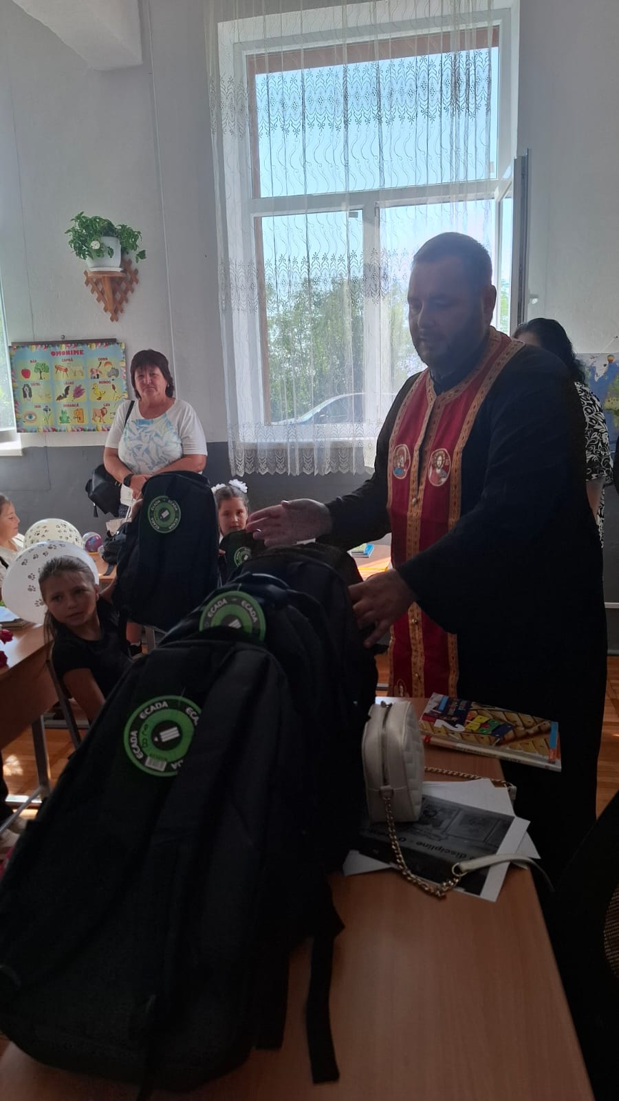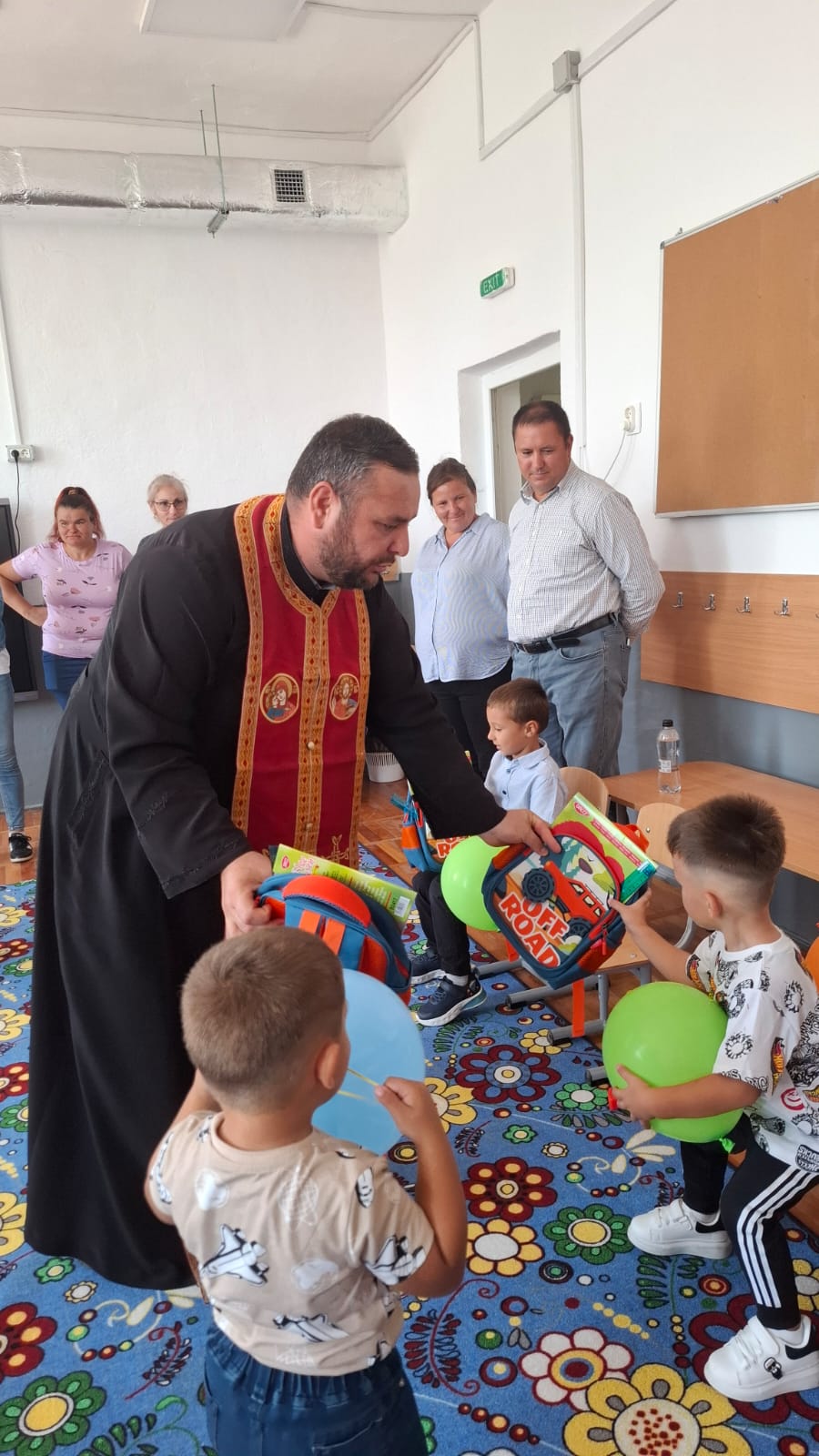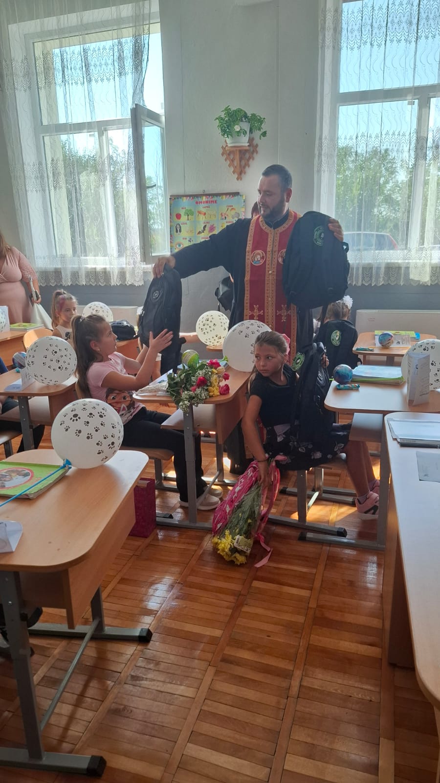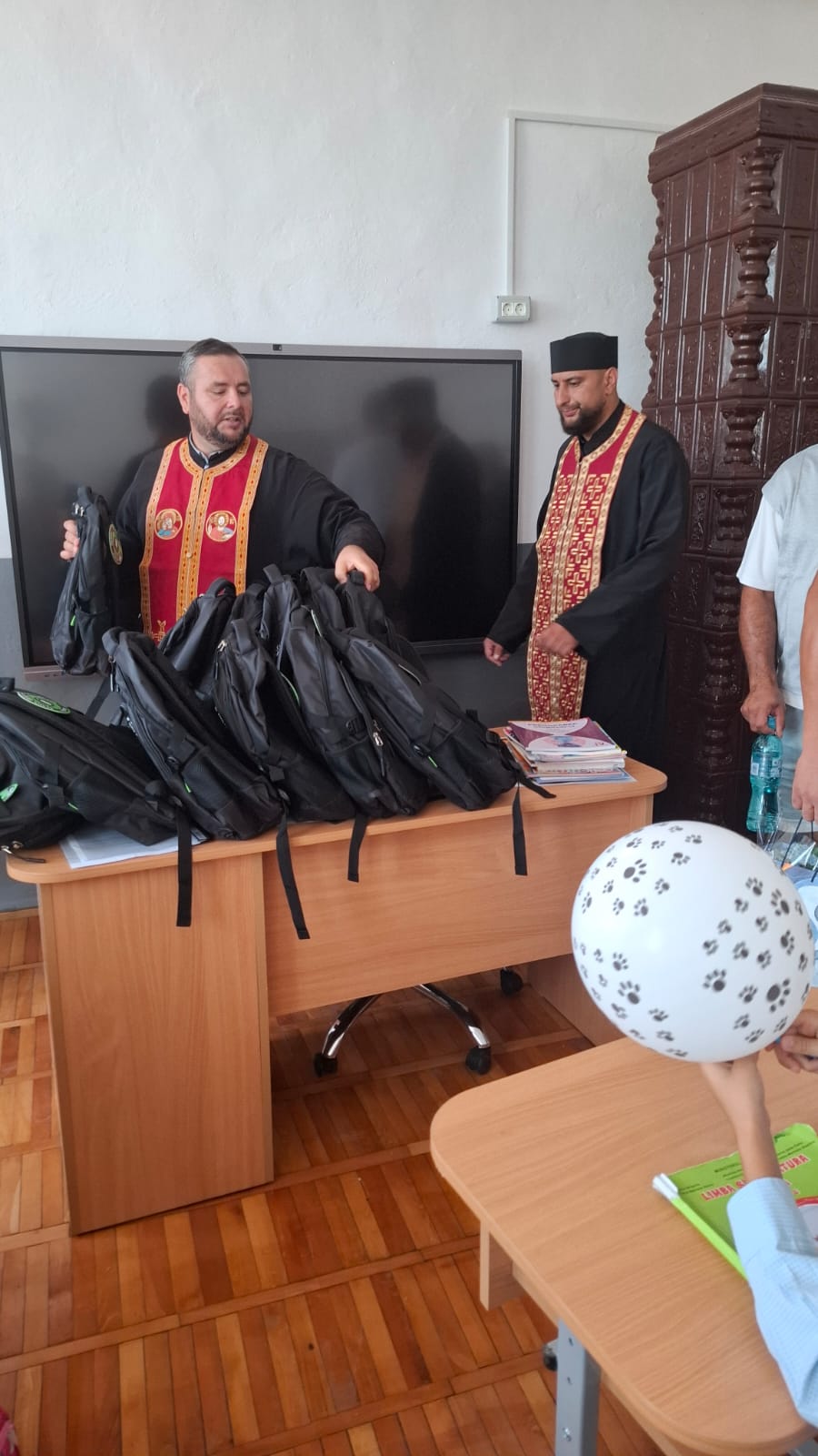Preoții slujitori Popa Gabriel Ciprian de la parohia Săpata și Dincă Iuliu Raoul de la parohia Mîrțești, protoieria Pitești, au fost în mijlocul celor 90 de copii de la Școala Gimnazială din comuna Săpata, dăruind ghiozdane și rechizite, la început de an nou școlar.