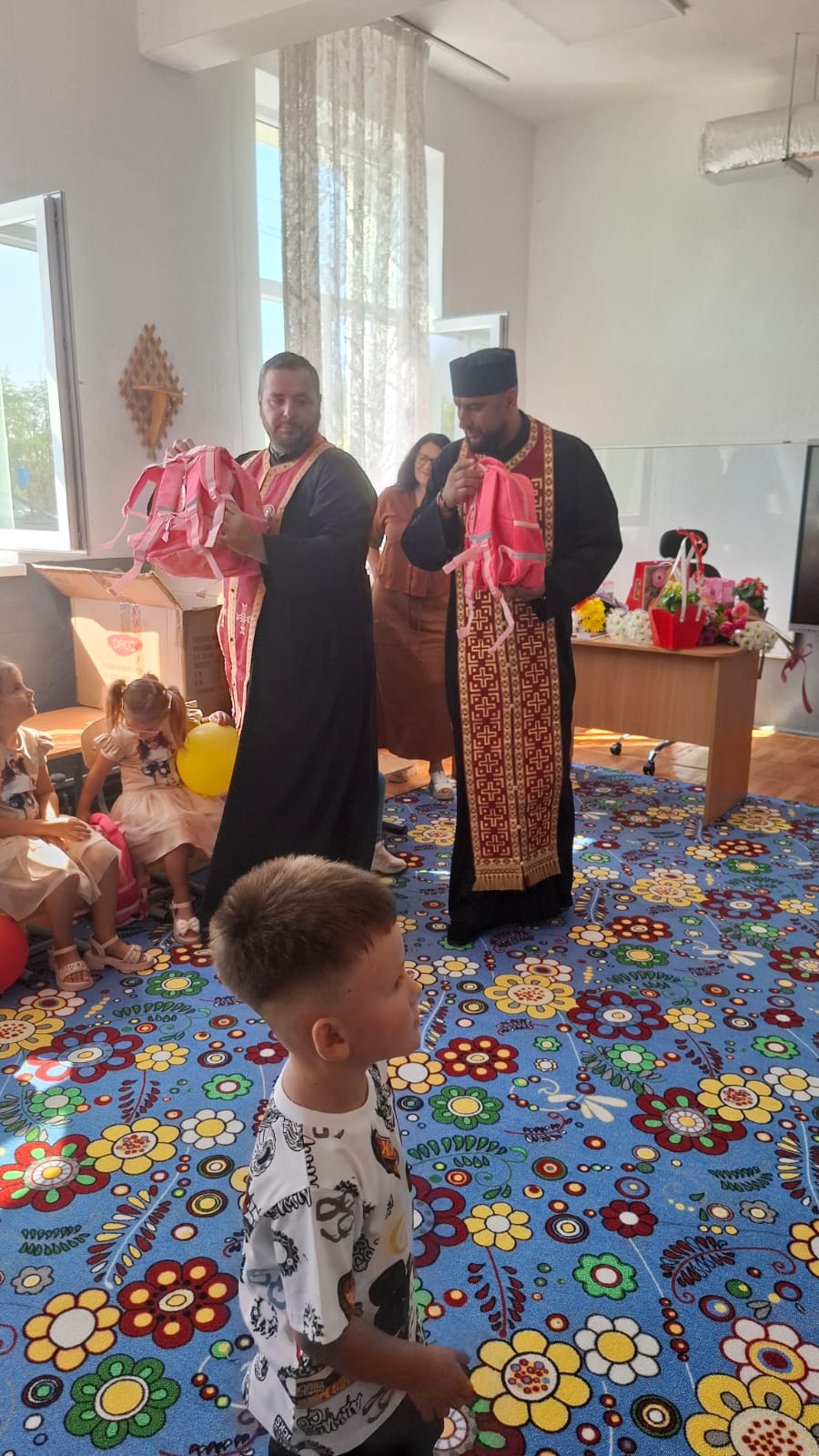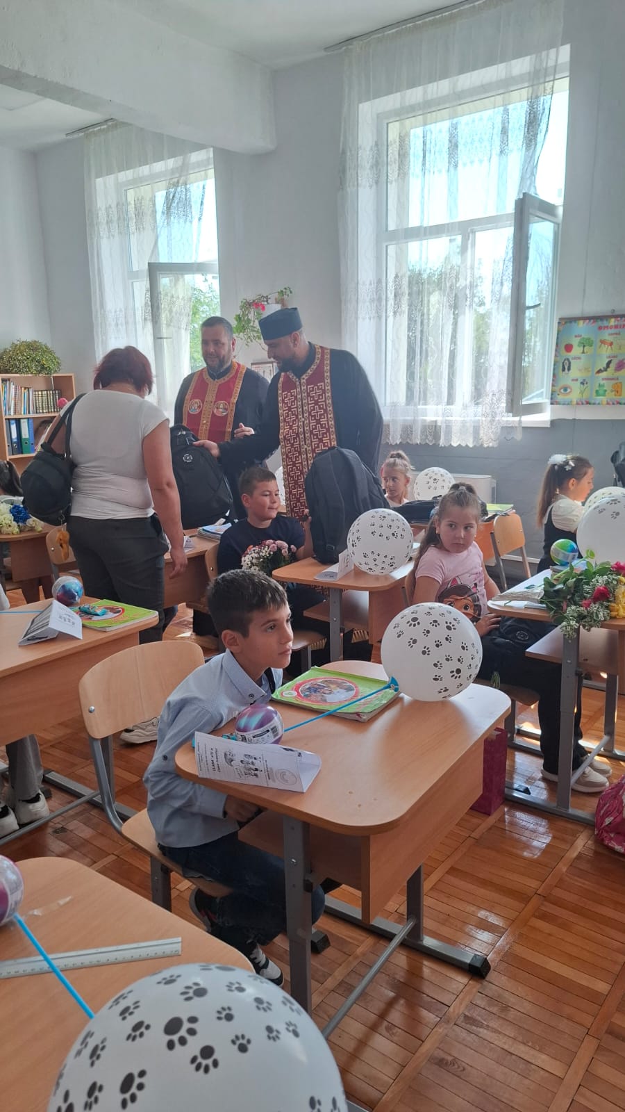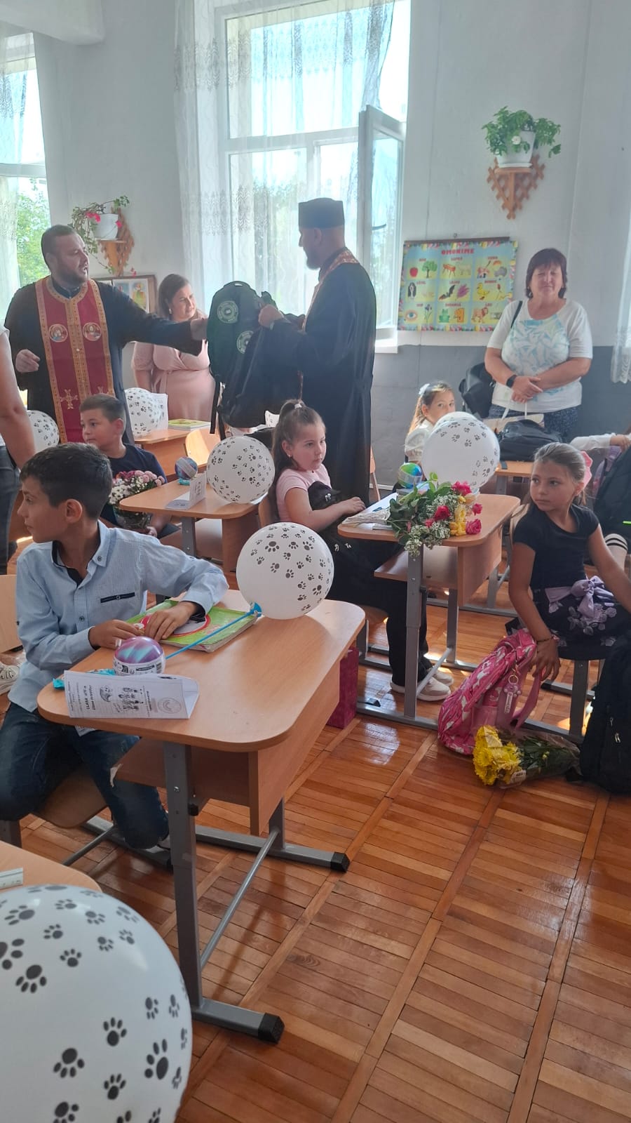 Preoții slujitori Popa Gabriel Ciprian de la parohia Săpata și Dincă Iuliu Raoul de la parohia Mîrțești, protoieria Pitești, au fost în mijlocul celor 90 de copii de la Școala Gimnazială din comuna Săpata, dăruind ghiozdane și rechizite, la început de an nou școlar.
