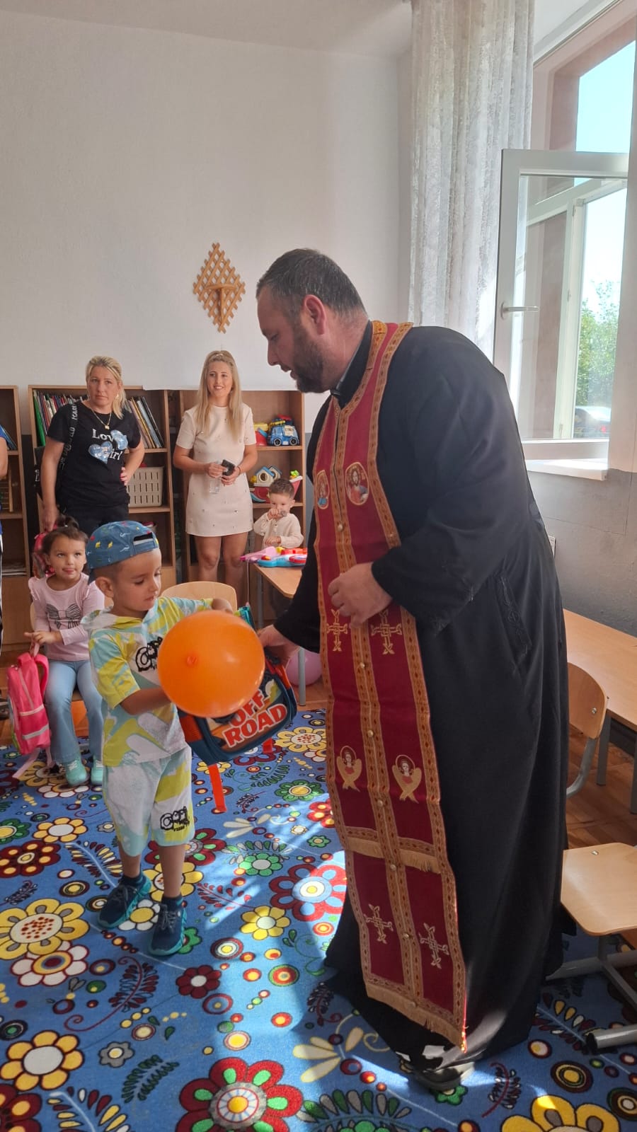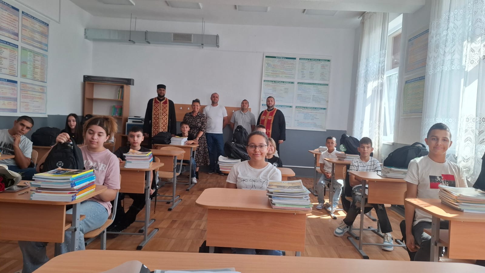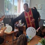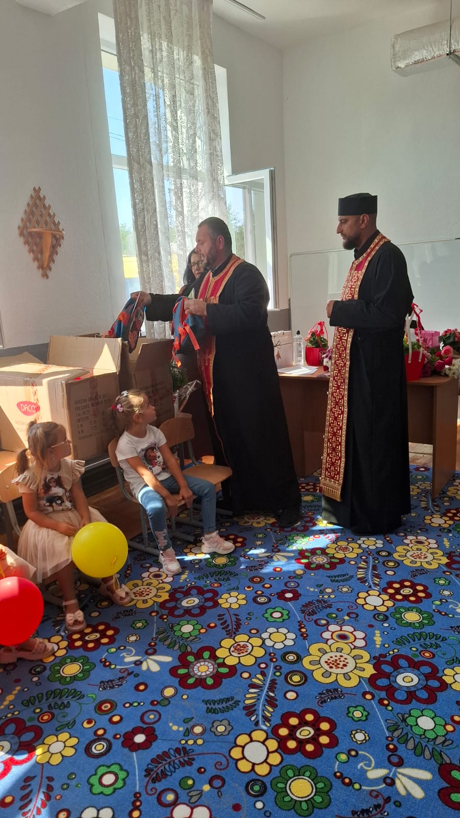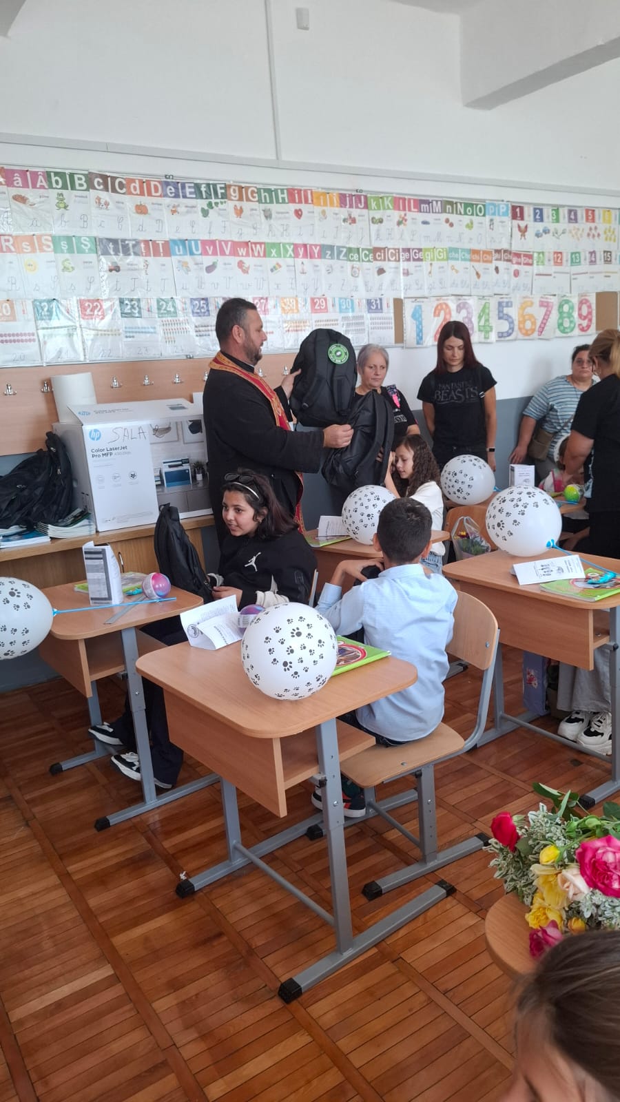 Preoții slujitori Popa Gabriel Ciprian de la parohia Săpata și Dincă Iuliu Raoul de la parohia Mîrțești, protoieria Pitești, au fost în mijlocul celor 90 de copii de la Școala Gimnazială din comuna Săpata, dăruind ghiozdane și rechizite, la început de an nou școlar.