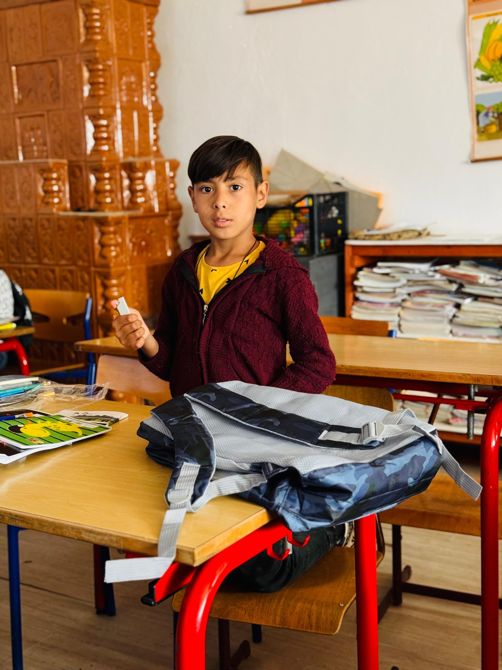 Campania social filantropică ,, Ghiozdanul meu”, aflată la a X-a ediție, a ajuns astăzi la 92 de copii din cătunul Valea Măcelarului – parte a parohiei Bughea de Mijloc.
