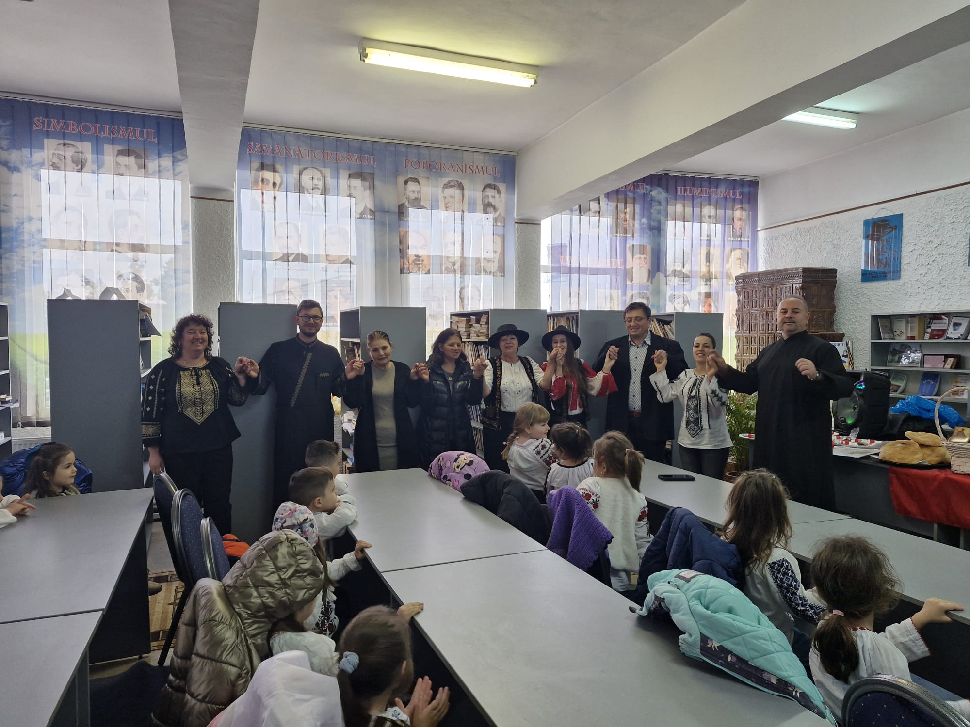 Preoții slujitori Moisescu Ionuț Daniel și Moraru Alexandru au vorbit copiilor coordonați de doamnele Trăistaru Maria, Talpazan Andreea, Bănică Nicoleta și Andrei Adelina, despre importanța Unirii Principatelor Române.