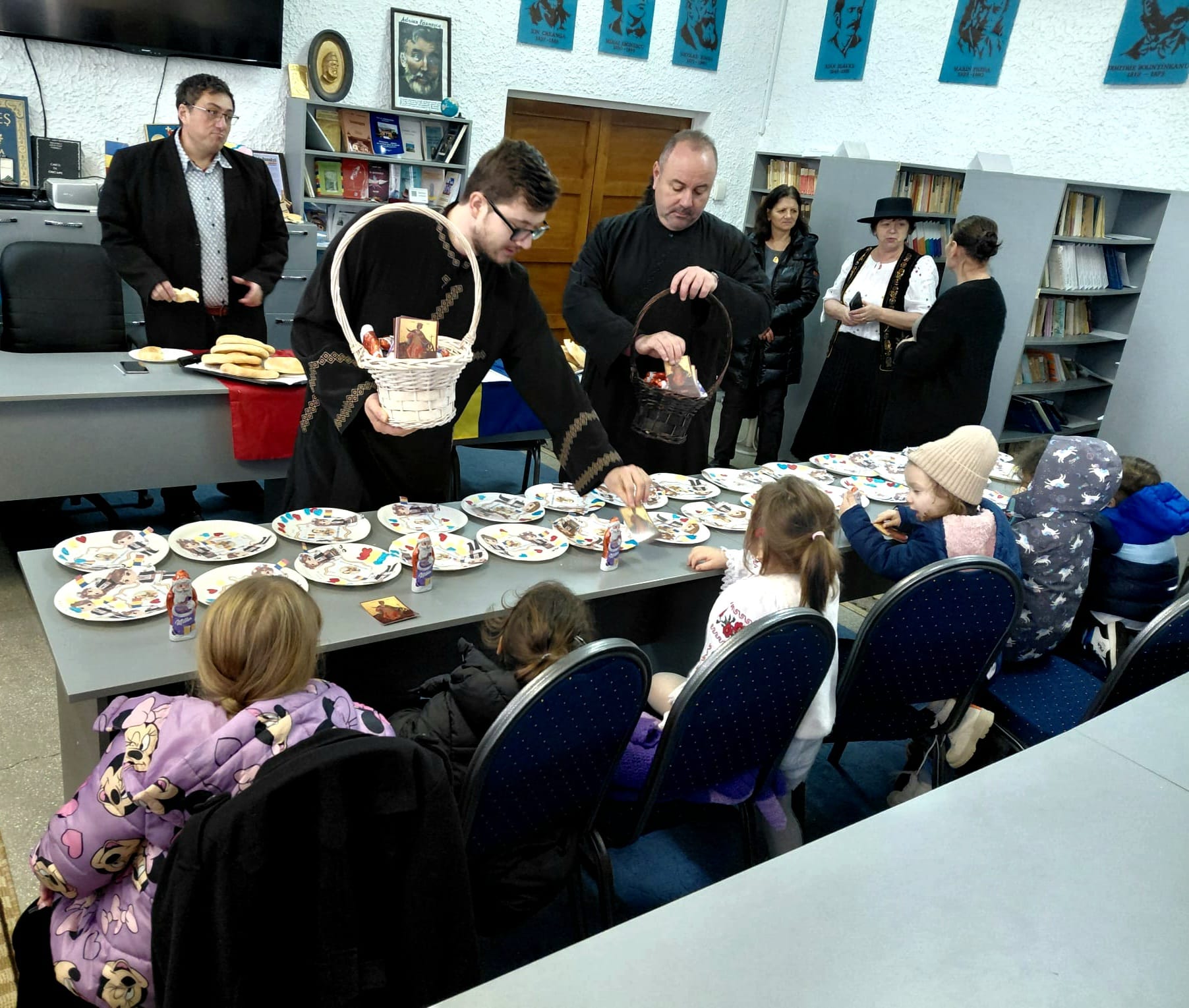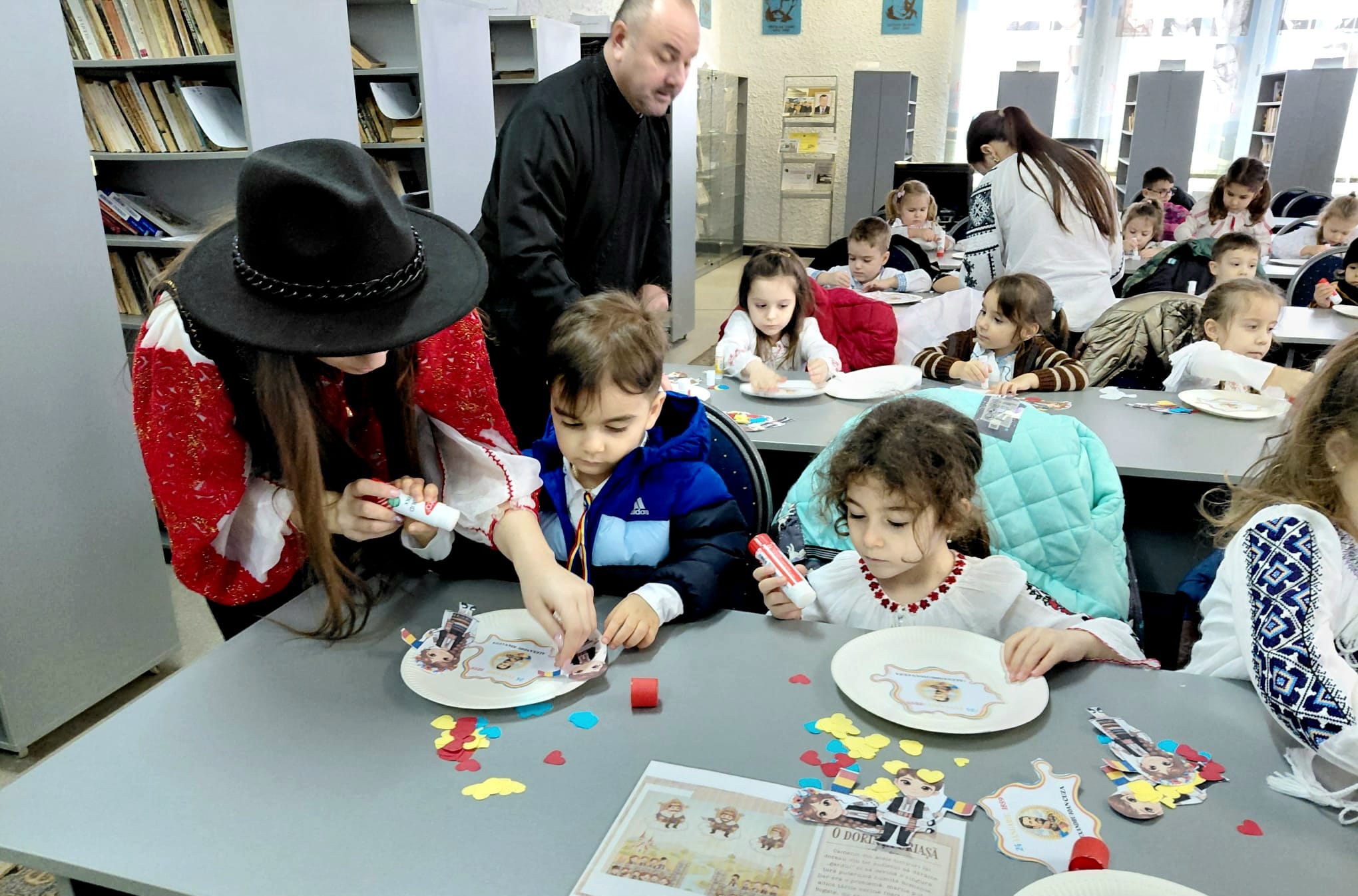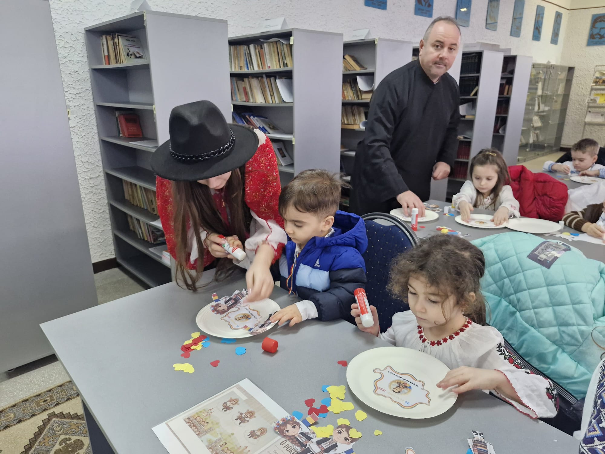 Preoții slujitori Moisescu Ionuț Daniel și Moraru Alexandru au vorbit copiilor coordonați de doamnele Trăistaru Maria, Talpazan Andreea, Bănică Nicoleta și Andrei Adelina, despre importanța Unirii Principatelor Române.