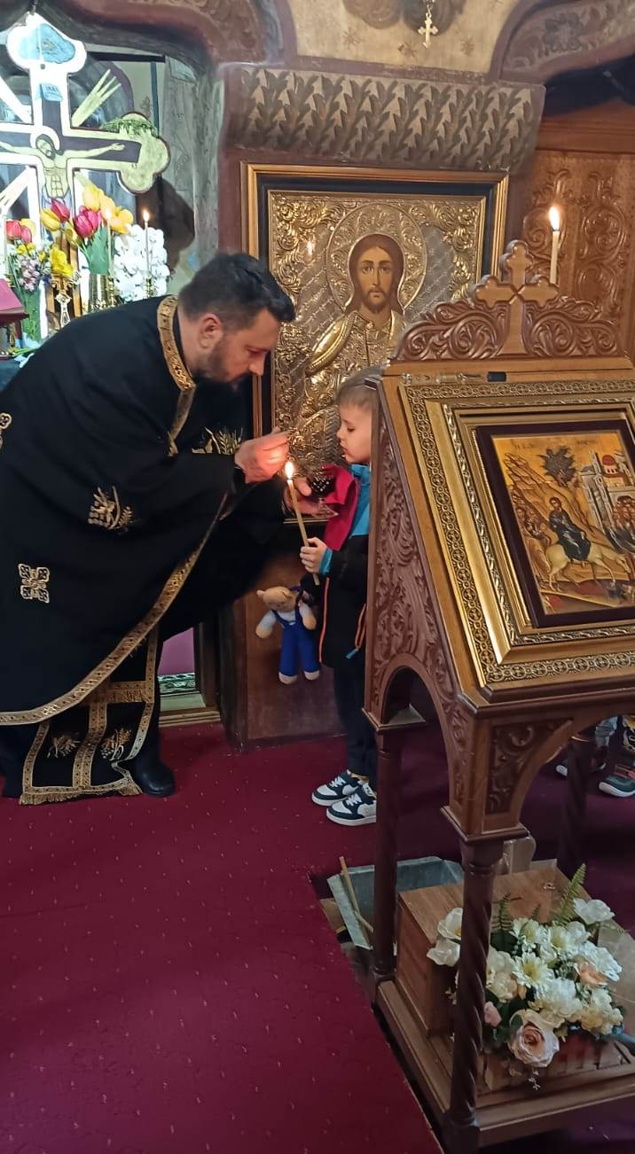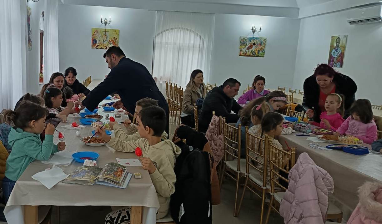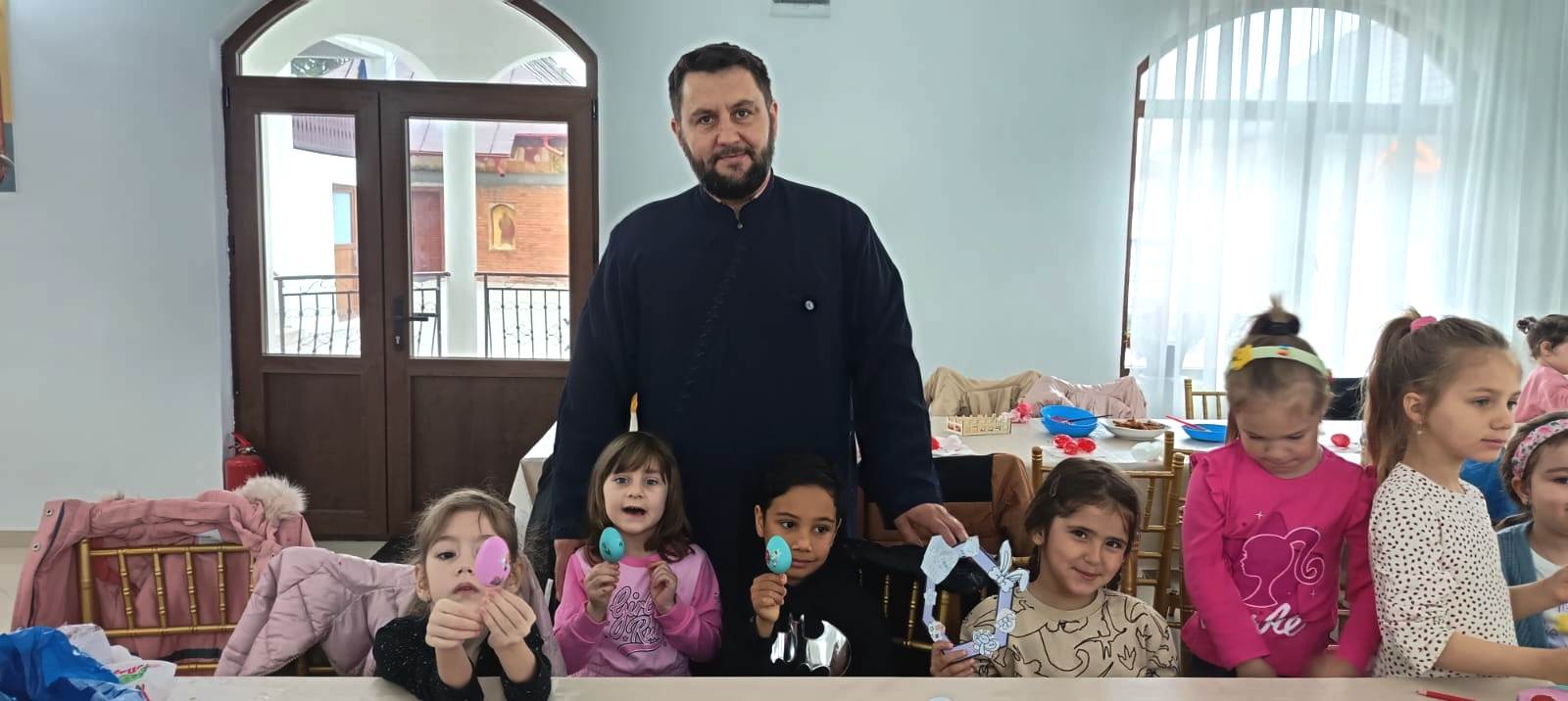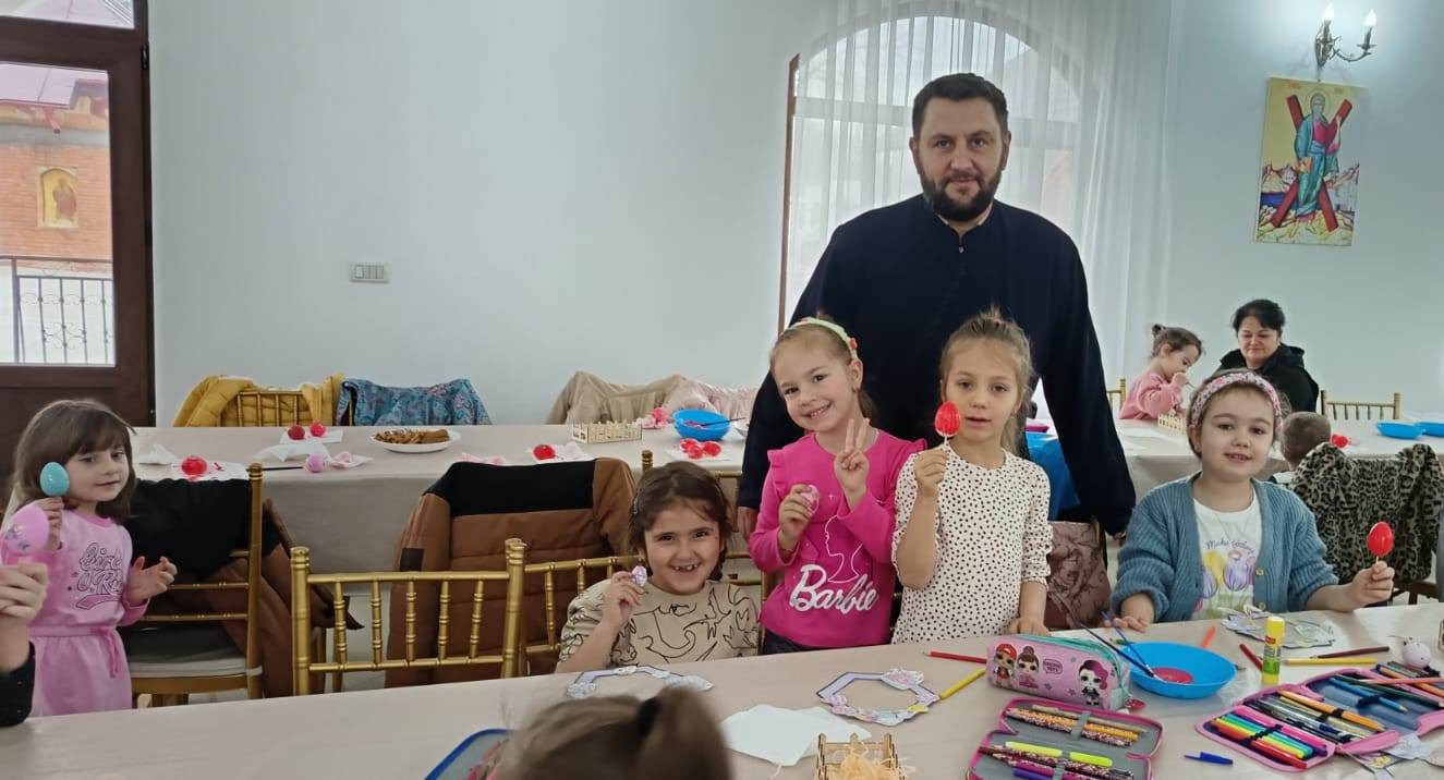 În timp ce copiii şi-au arătat măiestria de a decora ouă de Paşti, părintele le-a prezentat semnificaţia săptămânii Sfintelor Pătimiri ale Domnului, ce culminează cu răstignirea pe cruce şi triumfă prin Învierea din morţi.