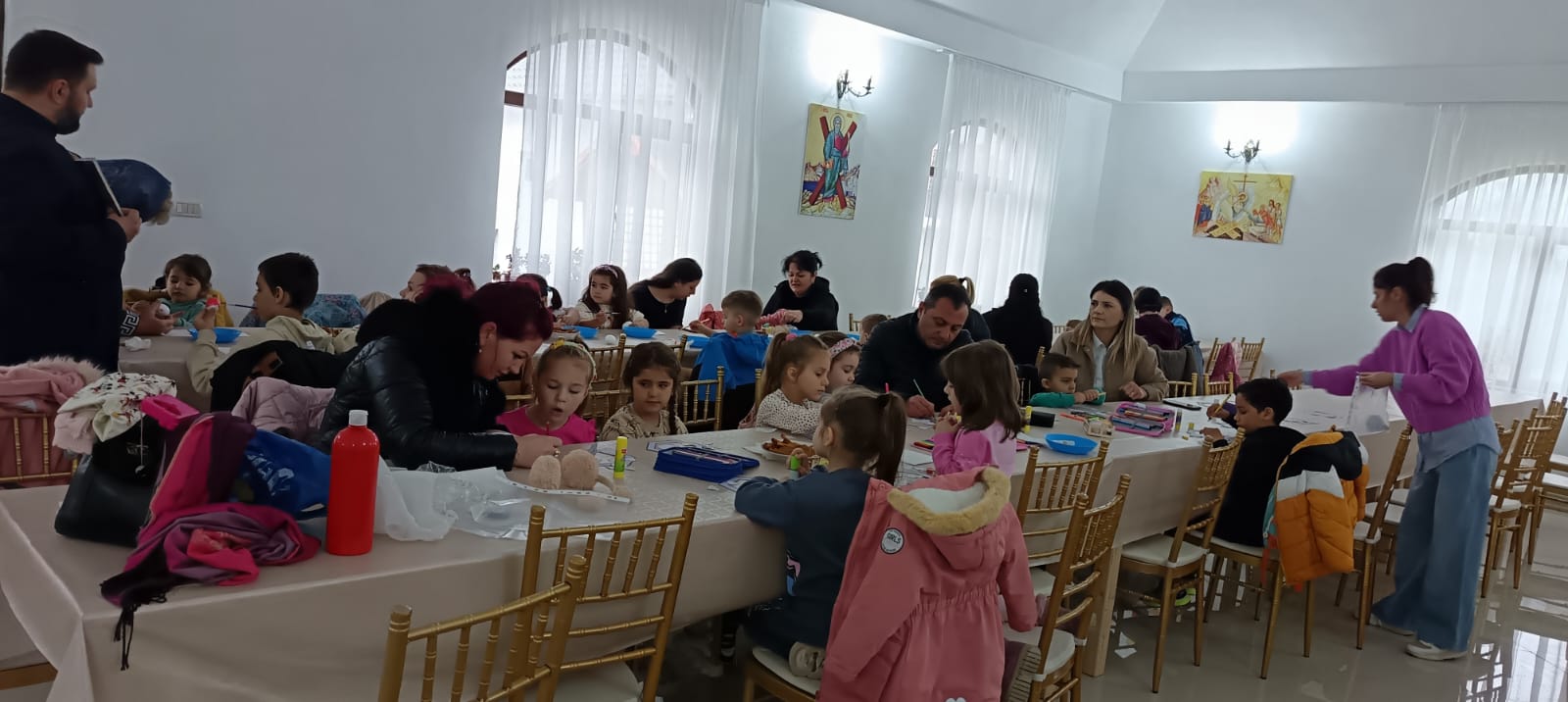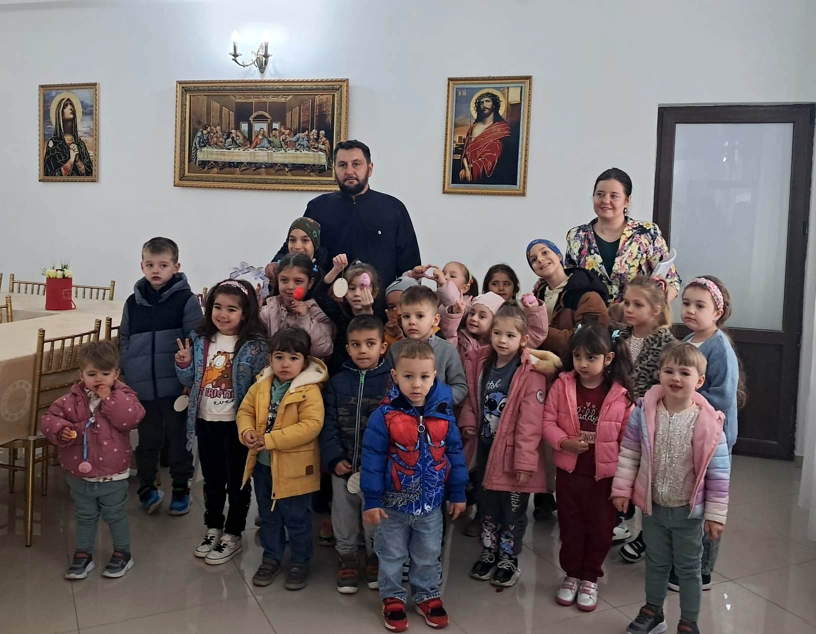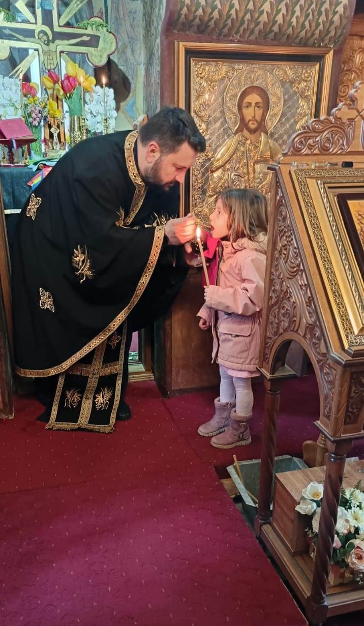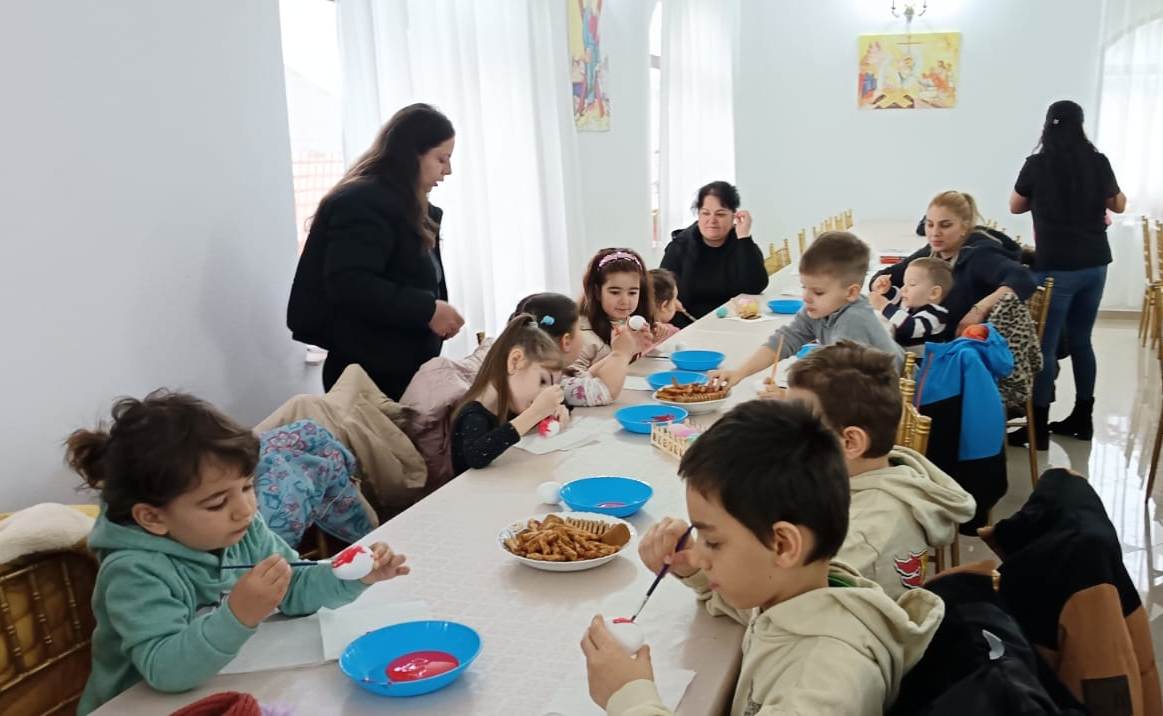 În timp ce copiii şi-au arătat măiestria de a decora ouă de Paşti, părintele le-a prezentat semnificaţia săptămânii Sfintelor Pătimiri ale Domnului, ce culminează cu răstignirea pe cruce şi triumfă prin Învierea din morţi.