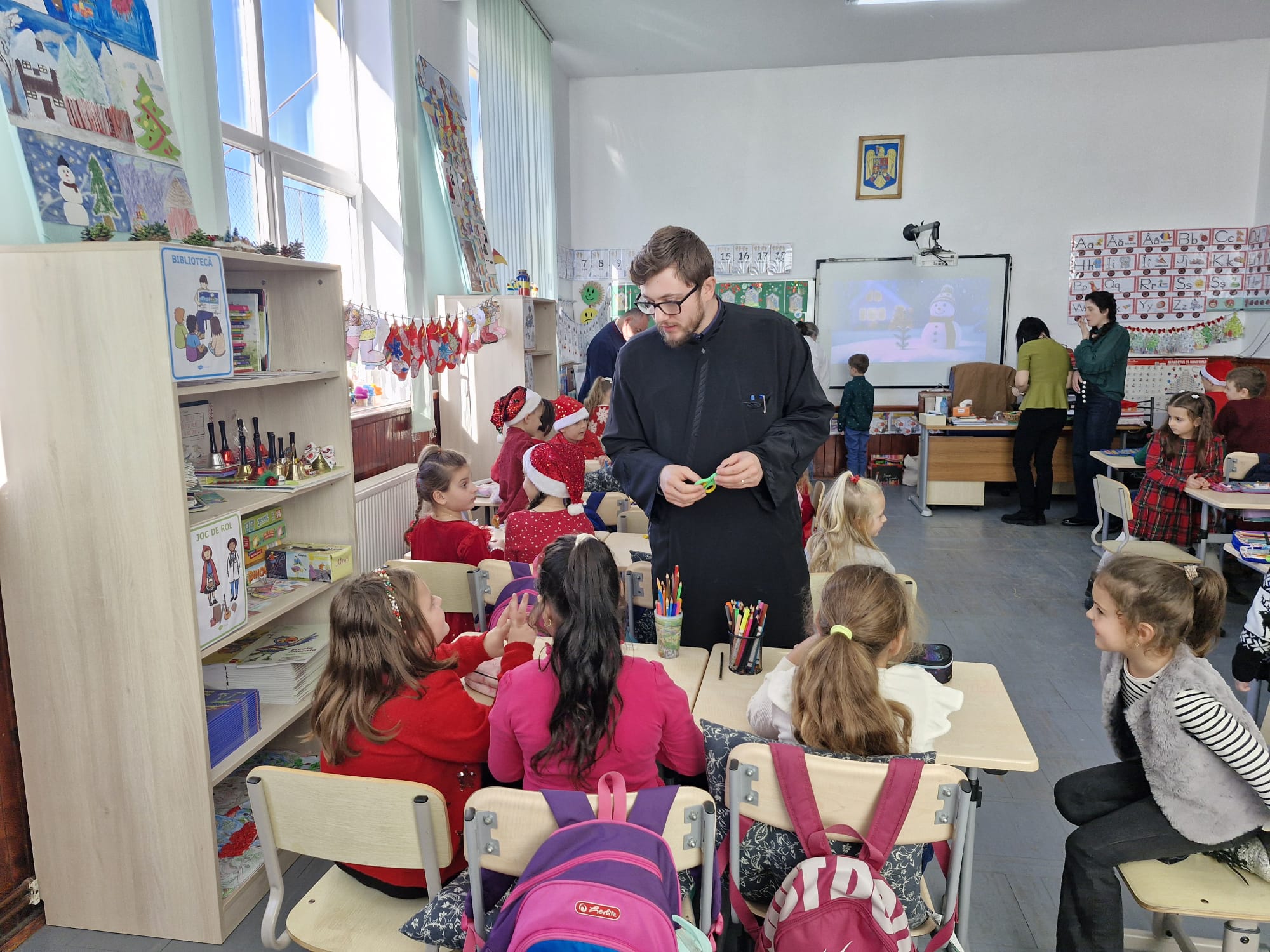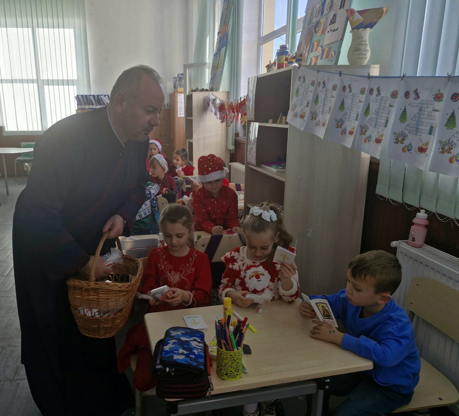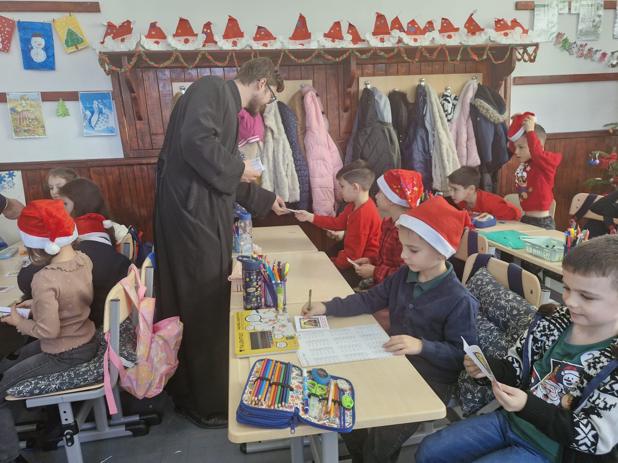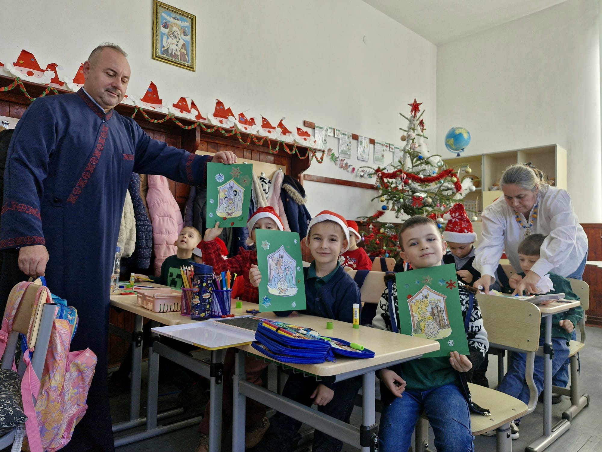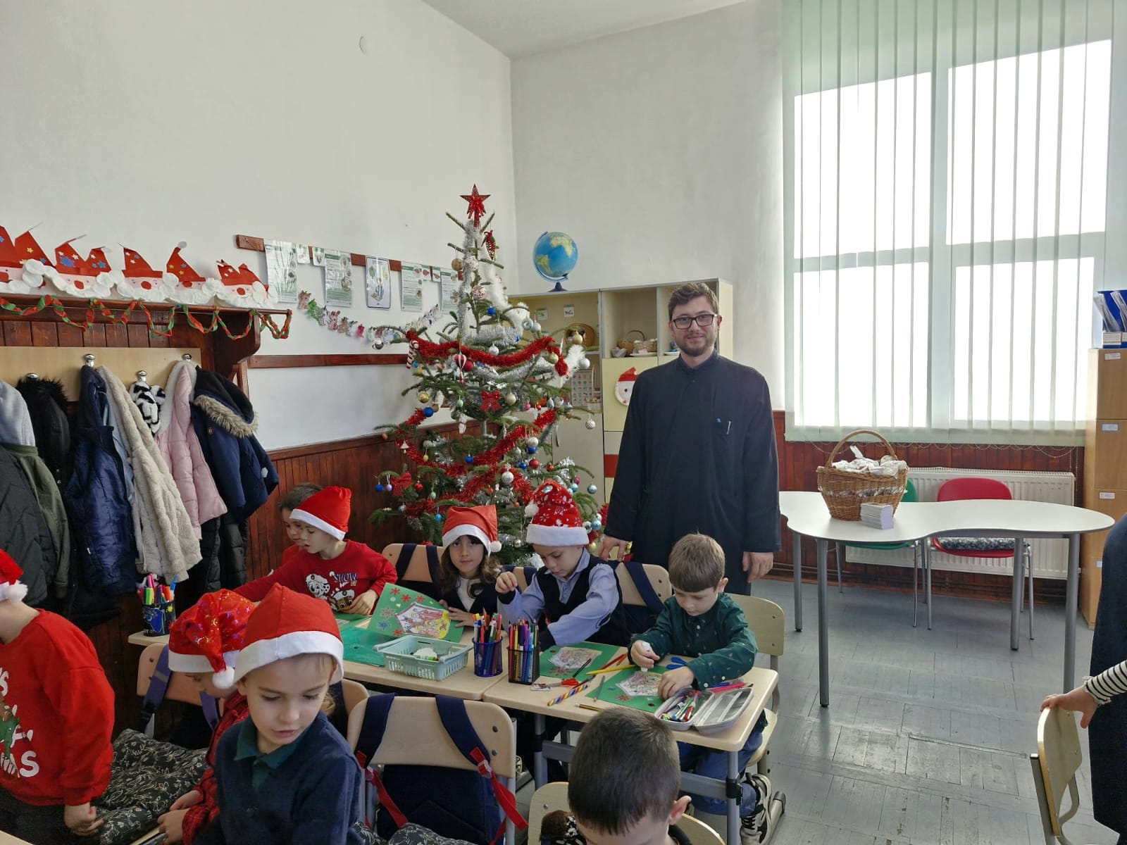 Preoții slujitori Moisescu Ionuț Daniel și Moraru Alexandru s-au aflat în mijlocul elevilor de la clasele pregătitoare, coordonați de doamnele învățător: Protopopescu Florina, Gagiu Ioana, Crăciun Petruța, Georgescu Iuliana și Voica Aura, unde au rostit o cateheză despre Praznicul Nașterii Mântuitorului Iisus Hristos.