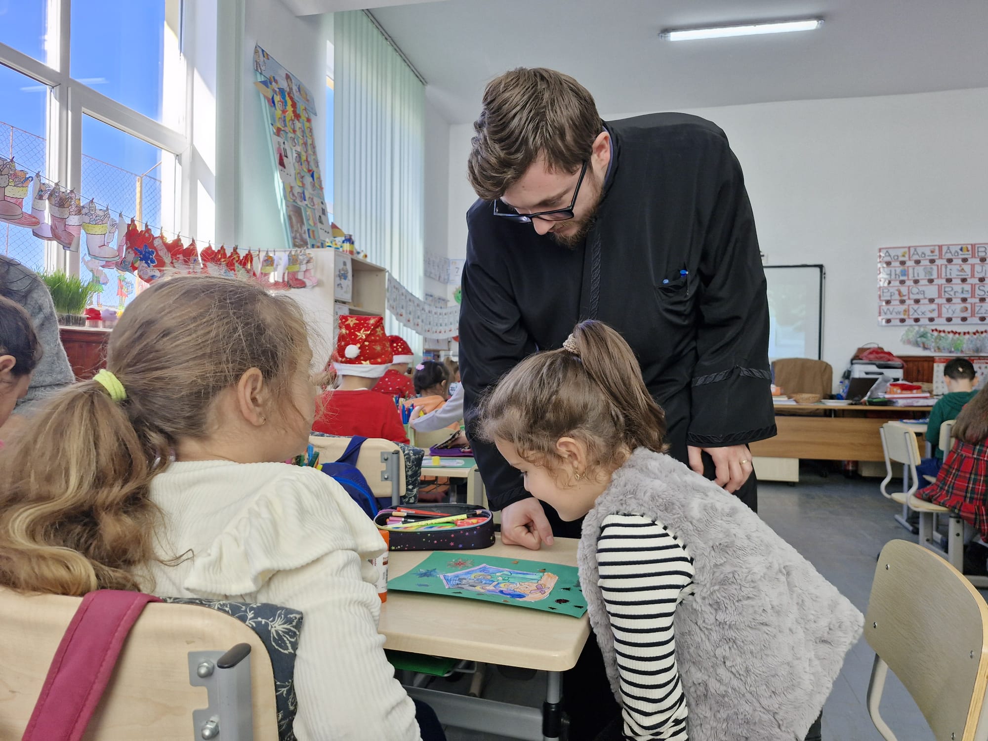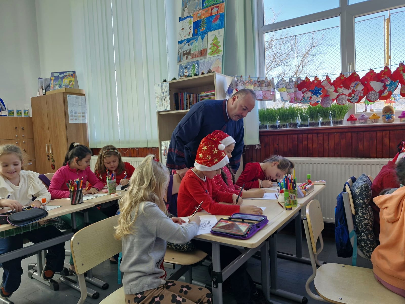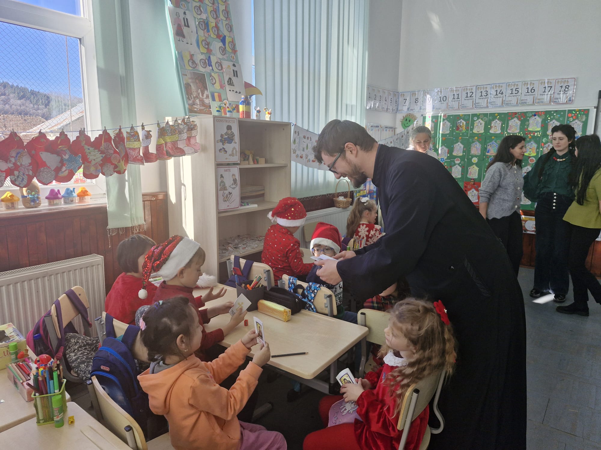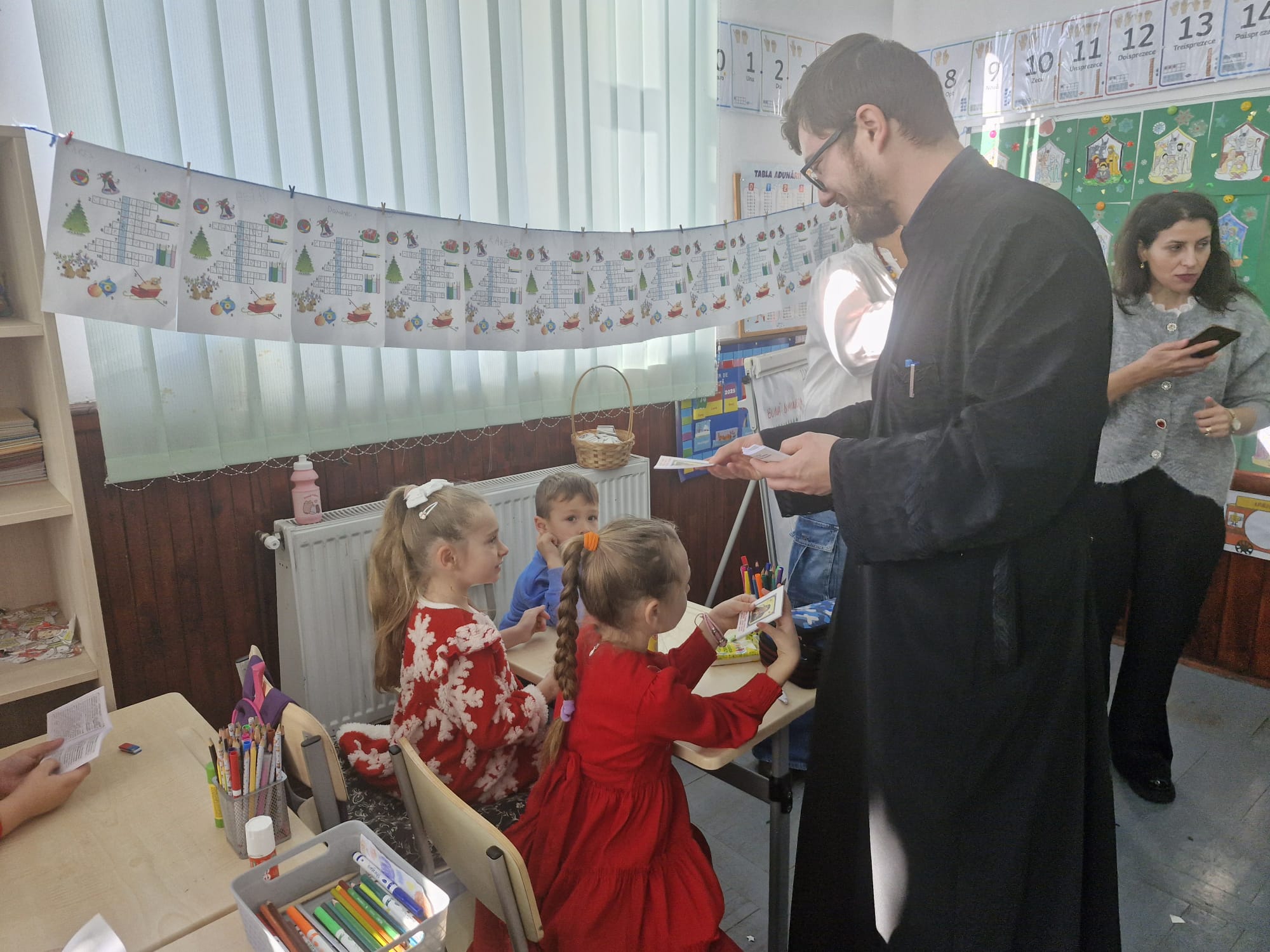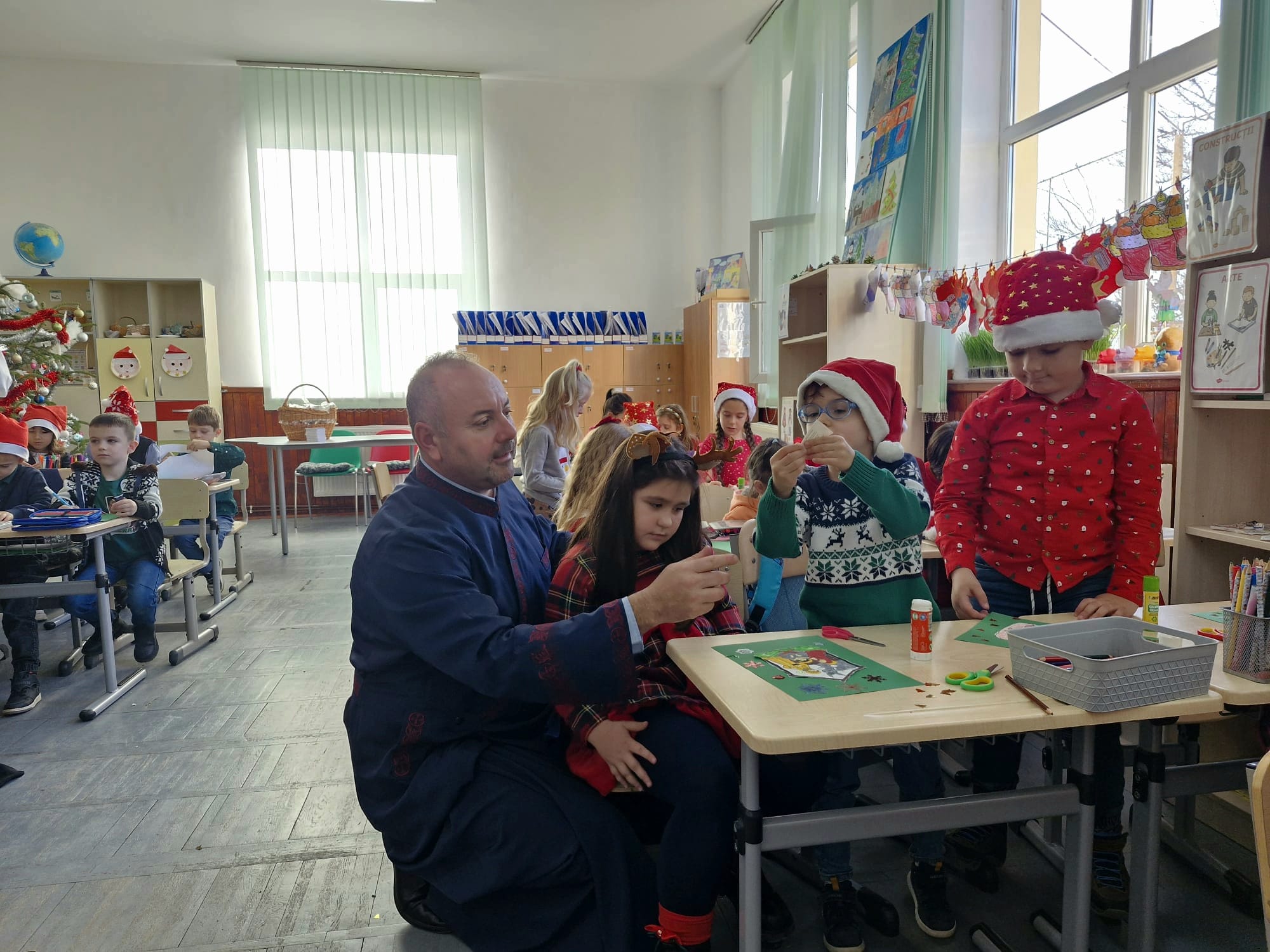 Preoții slujitori Moisescu Ionuț Daniel și Moraru Alexandru s-au aflat în mijlocul elevilor de la clasele pregătitoare, coordonați de doamnele învățător: Protopopescu Florina, Gagiu Ioana, Crăciun Petruța, Georgescu Iuliana și Voica Aura, unde au rostit o cateheză despre Praznicul Nașterii Mântuitorului Iisus Hristos.