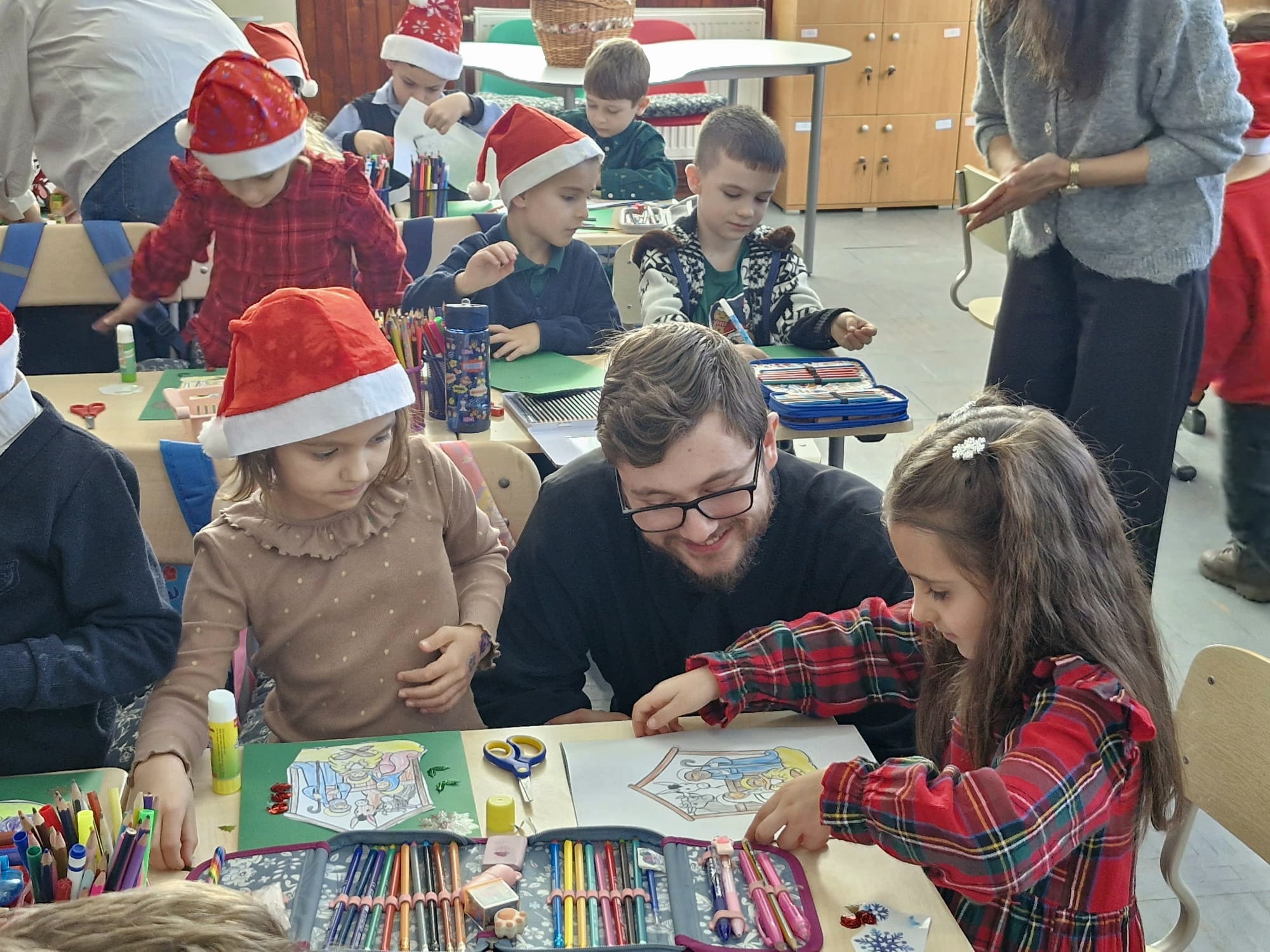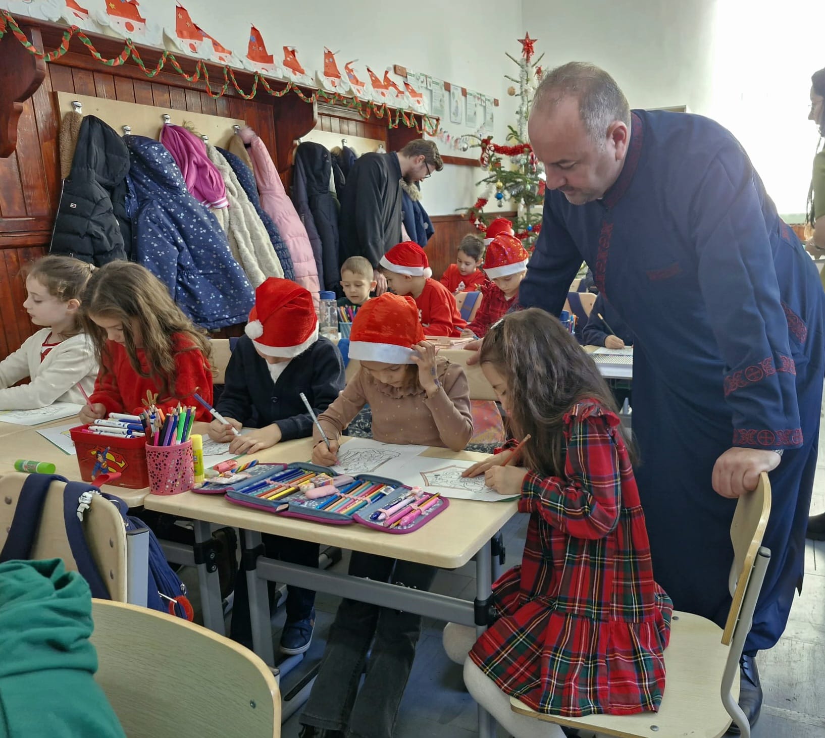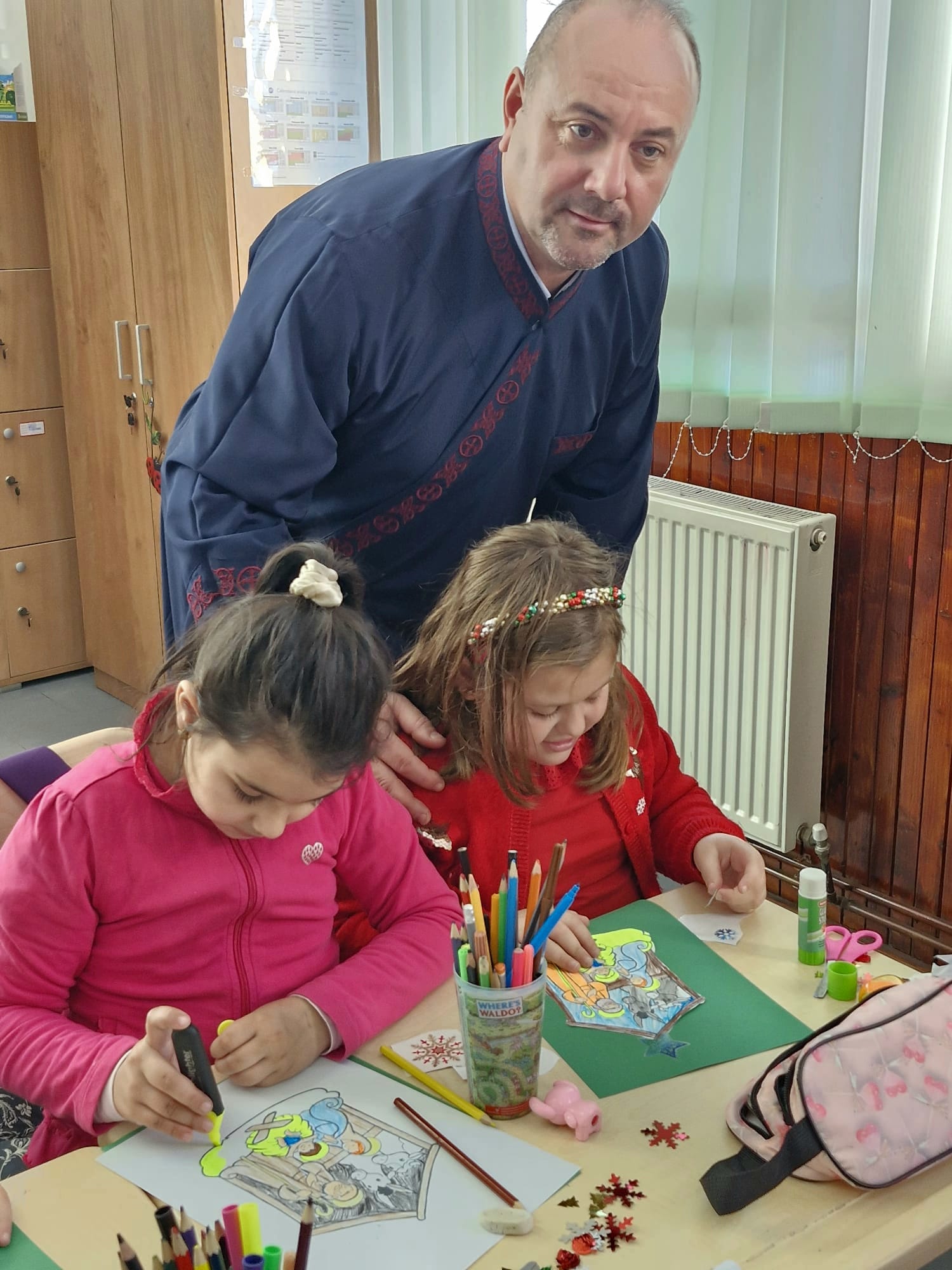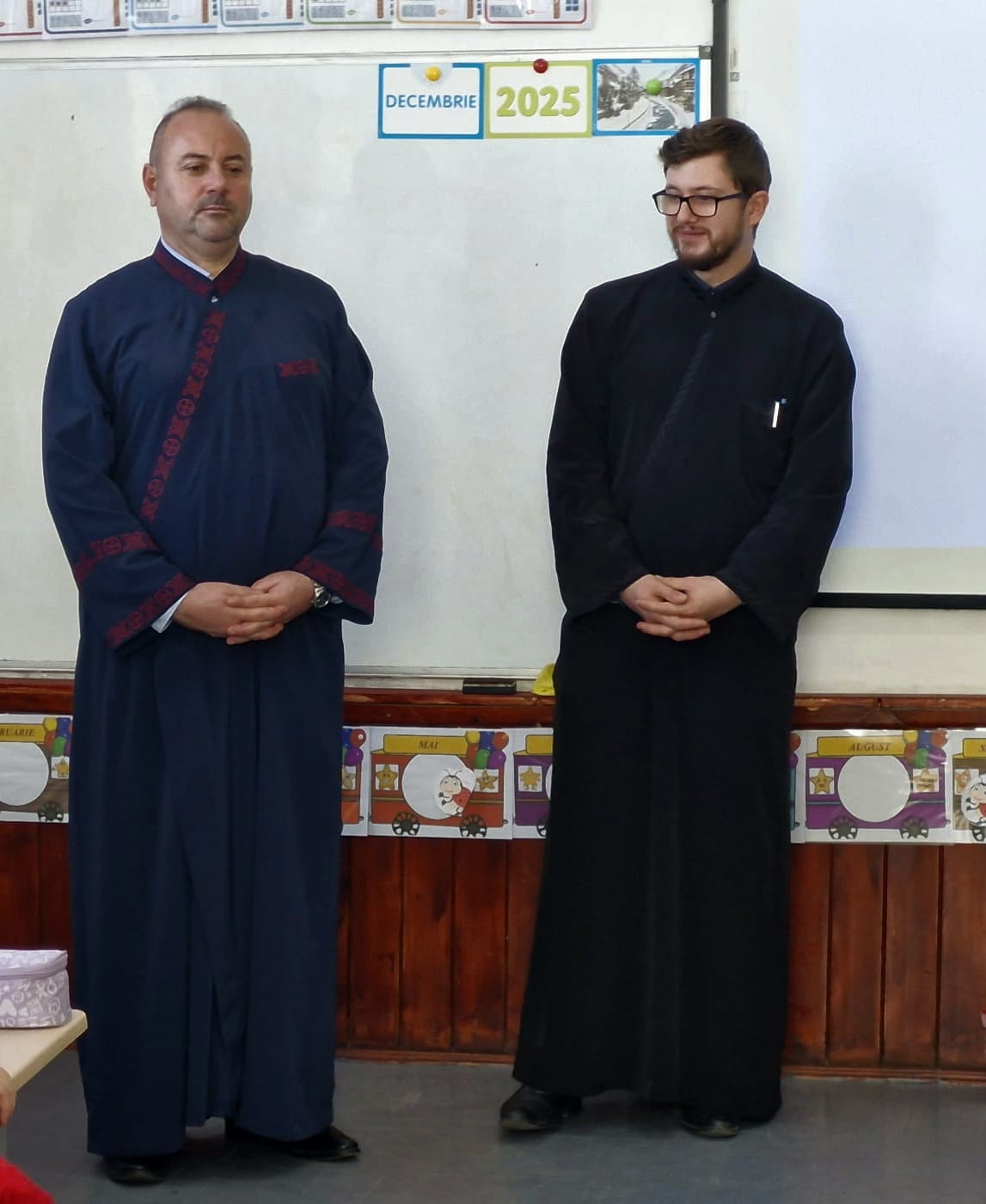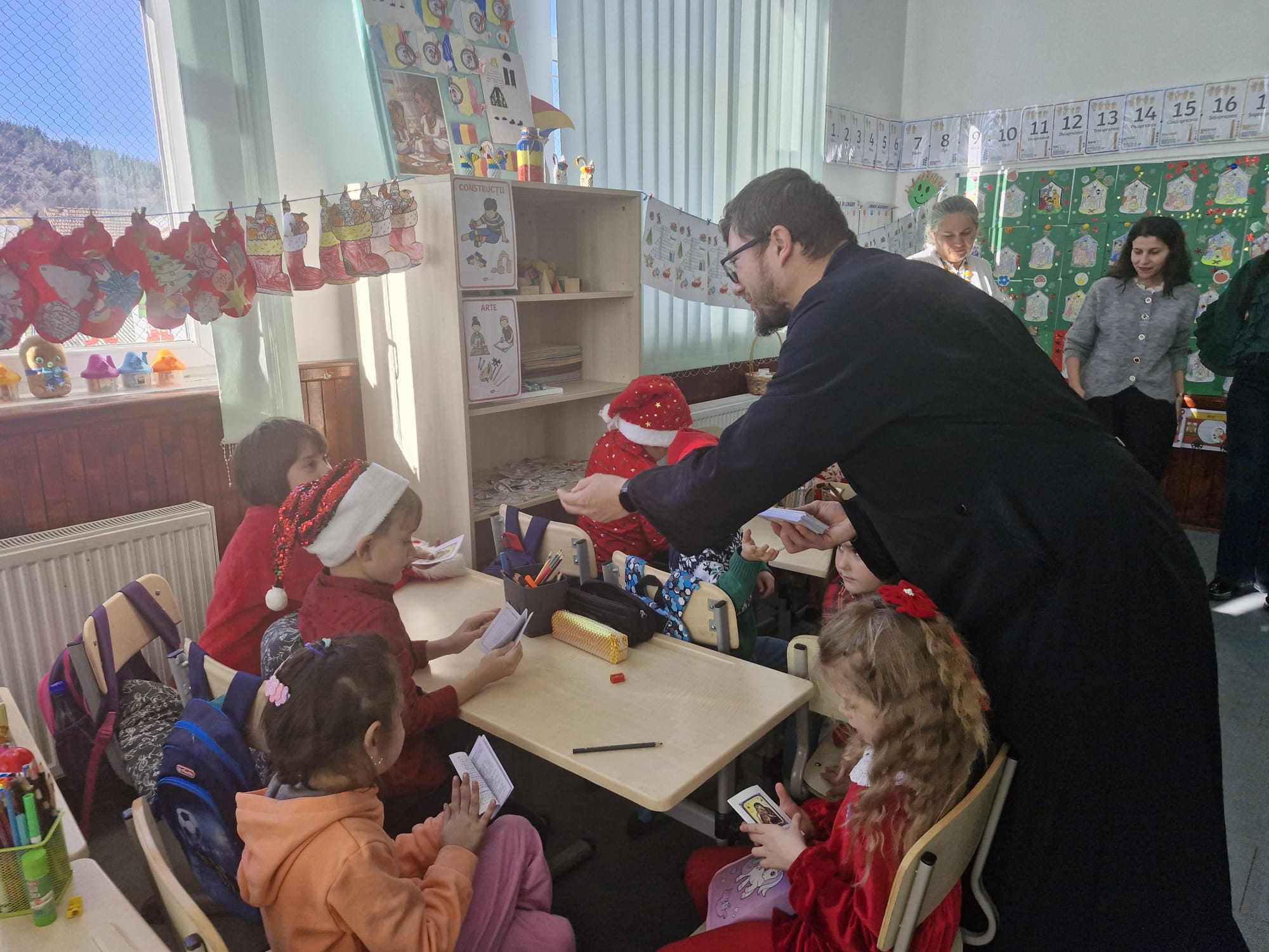 Preoții slujitori Moisescu Ionuț Daniel și Moraru Alexandru s-au aflat în mijlocul elevilor de la clasele pregătitoare, coordonați de doamnele învățător: Protopopescu Florina, Gagiu Ioana, Crăciun Petruța, Georgescu Iuliana și Voica Aura, unde au rostit o cateheză despre Praznicul Nașterii Mântuitorului Iisus Hristos.