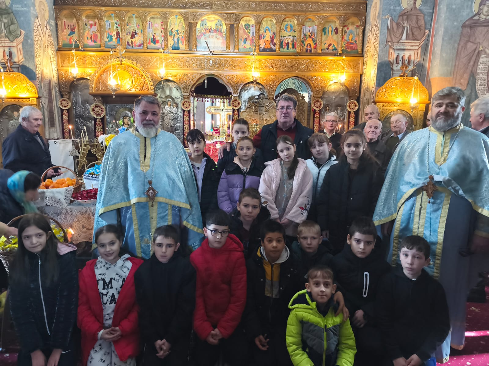 Preoții slujitori Moraru Mihai și Moraru Romică au rostit un cuvânt de învățătură copiilor de la școala din localitate, vorbind despre Praznicul Intrării în Biserică a Maicii Domnului.