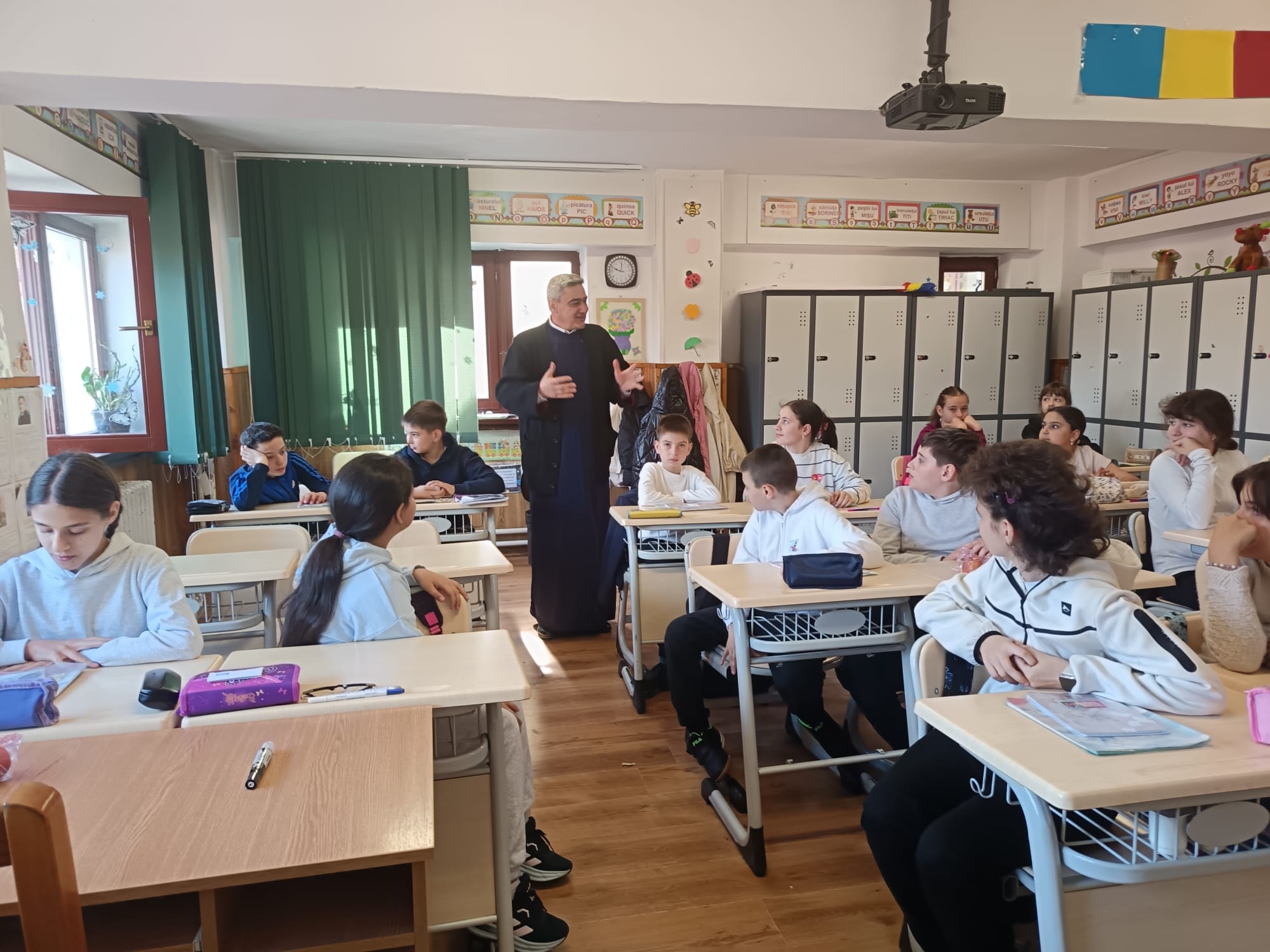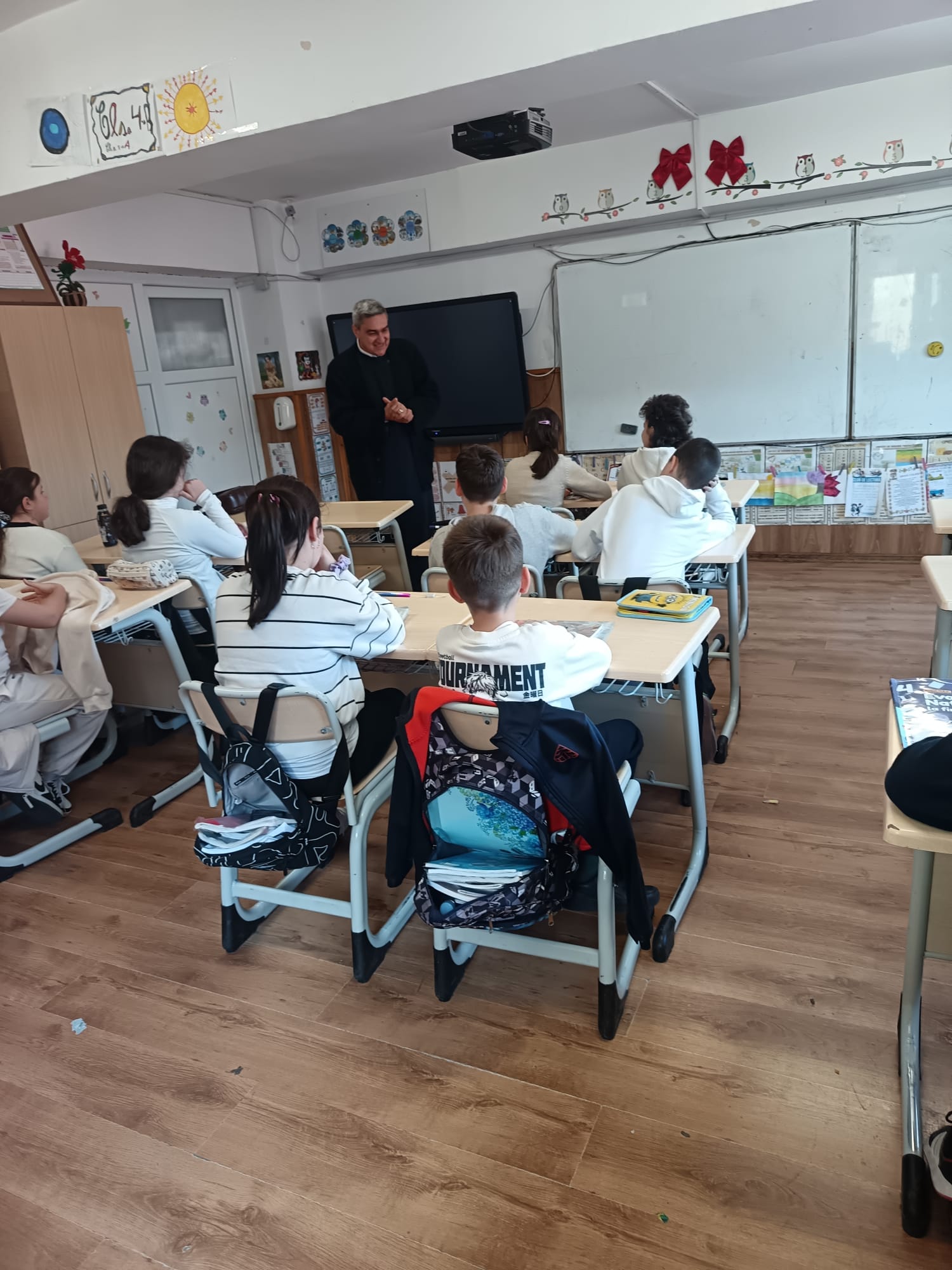 D-na director prof.de Religie Durdun Oana, a invitat la ora de Religie de la clasa a V a, pe părintele Sebastian Arsulescu, responsabilul Biroului de catehizare al Protoieriei Câmpulung Muscel. Preotul Sebastian Arsulescu a susținut cateheza cu tema ,,Femeile mironosițe – pilde de credință, curaj și devotament”, în care le-a vorbit copiilor despre Învierea Domnului și arătările Sale după Înviere, în ziua cea dintâi a săptămânii, adică Duminica, femeilor purtătoare de miruri, care au venit la mormânt, dis de dimineață, pe când era încă întuneric, ca să ungă cu miresme, după obiceiul iudaic, Trupul Domnului Iisus Hristos.