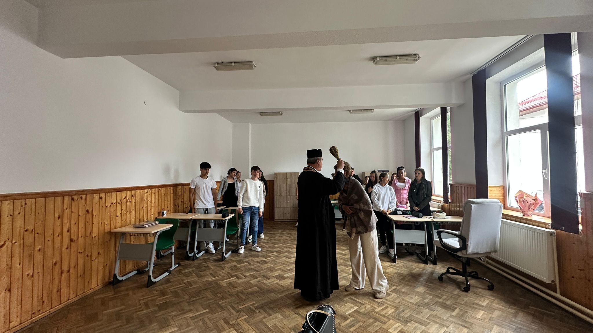 Preotul slujitor Arsulescu Sebastian a mers în fiecare clasă, unde a stropit cu Agheazmă și a susținut cateheze în fața elevilor pentru începutul anului școlar, binecuvântând și încurajând pe elevi, pentru începutul și parcurgerea unui an școlar cu bogate realizări pe plan științific și duhovnicesc, îndemnându-i să manifeste încredere și ascultare față de cadrele didactice.