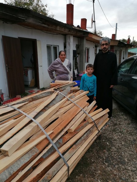 Părintele slujitor Barbu Vasile, de la parohia Sfinții Împărați Constantin și Elena din municipiul Curtea de Argeș, a dăruit lemne de foc pentru două familii cu venituri modeste, necesare pe timpul iernii.