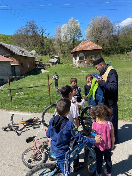 Părintele slujitor Preda Ion Alen de la parohia Stănești, protoieria Curtea de Argeș, a fost prezent în mijlocul copiilor din parohie, cărora le-a oferit dulciuri și ouă roșii.