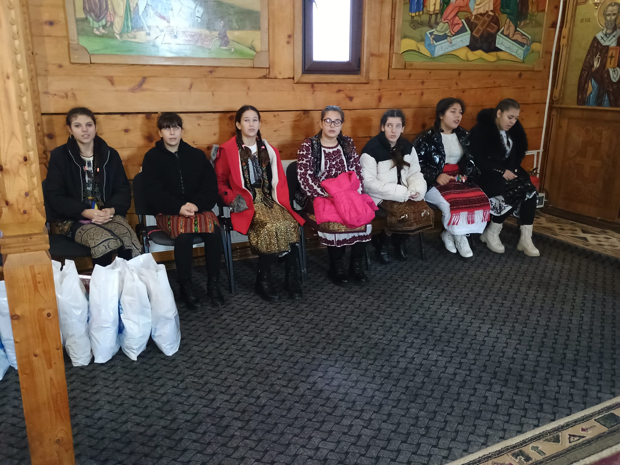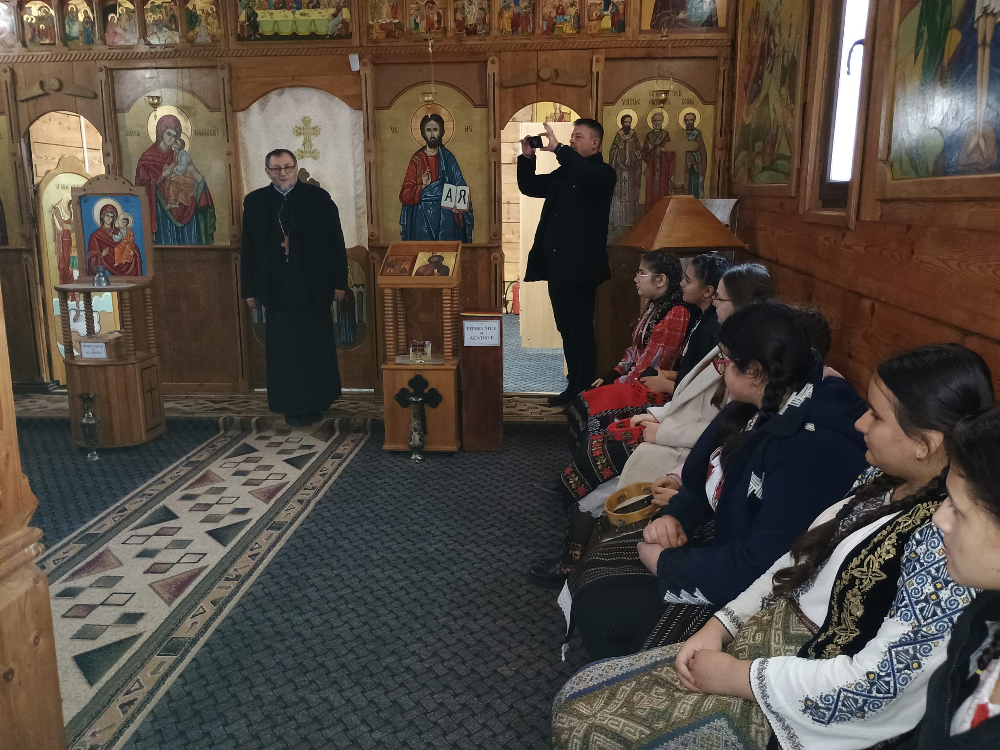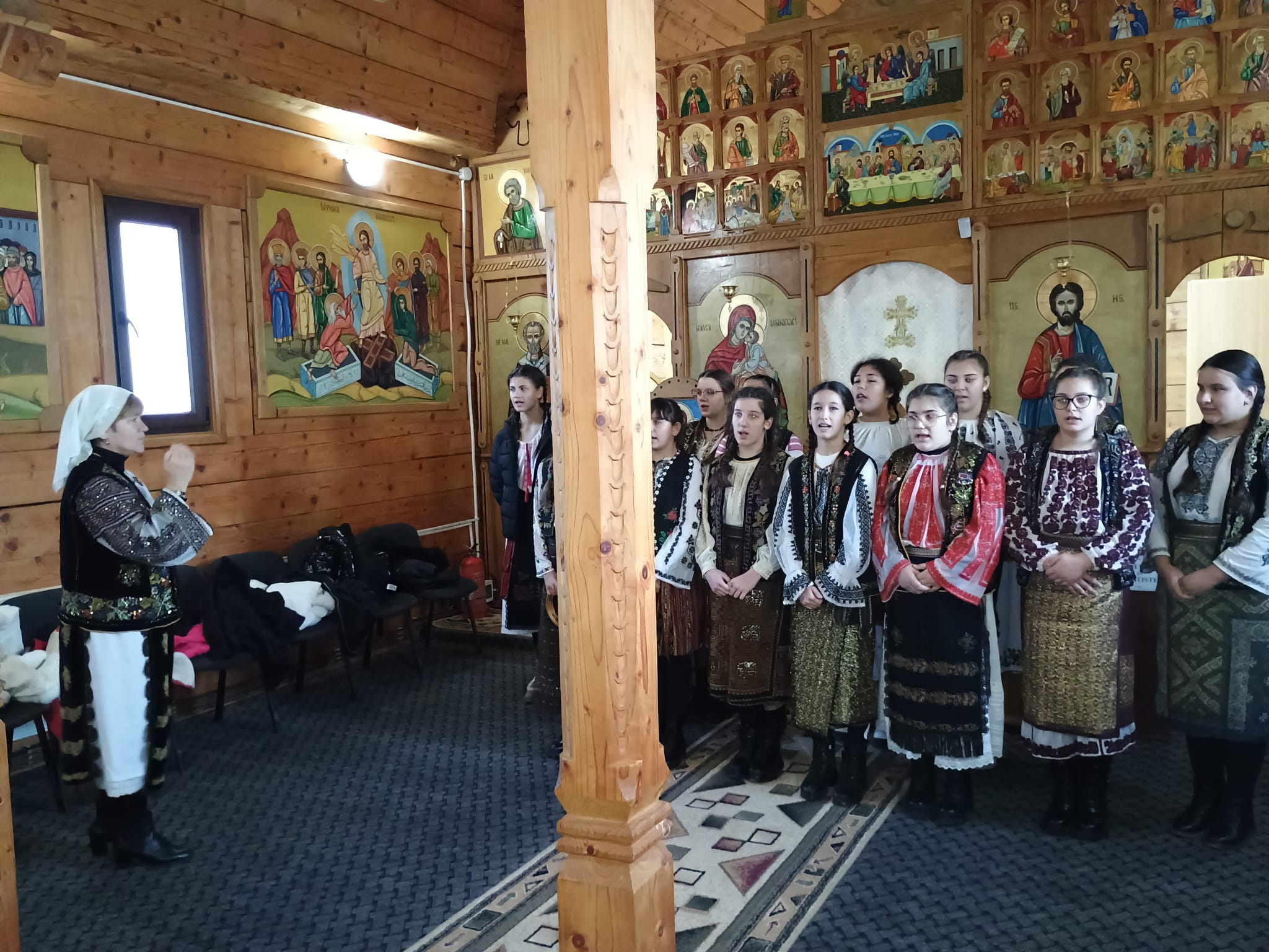 Un grup de elevi de la Școala Gimnazială din Ungheni, sub îndrumarea doamnei profesor de Religie, Jianu Elena, au colindat în biserica de lemn a Protoieriei Costești.