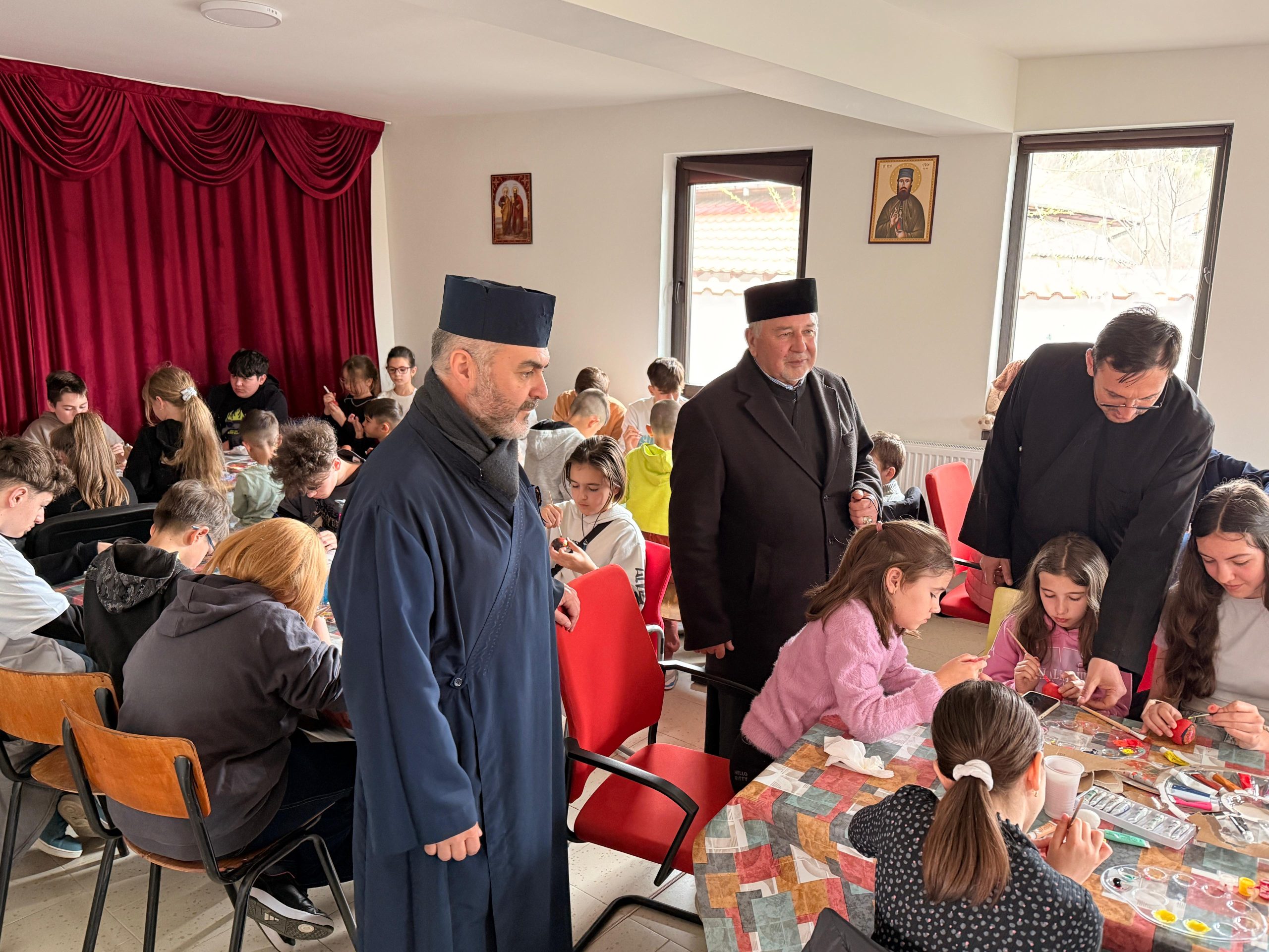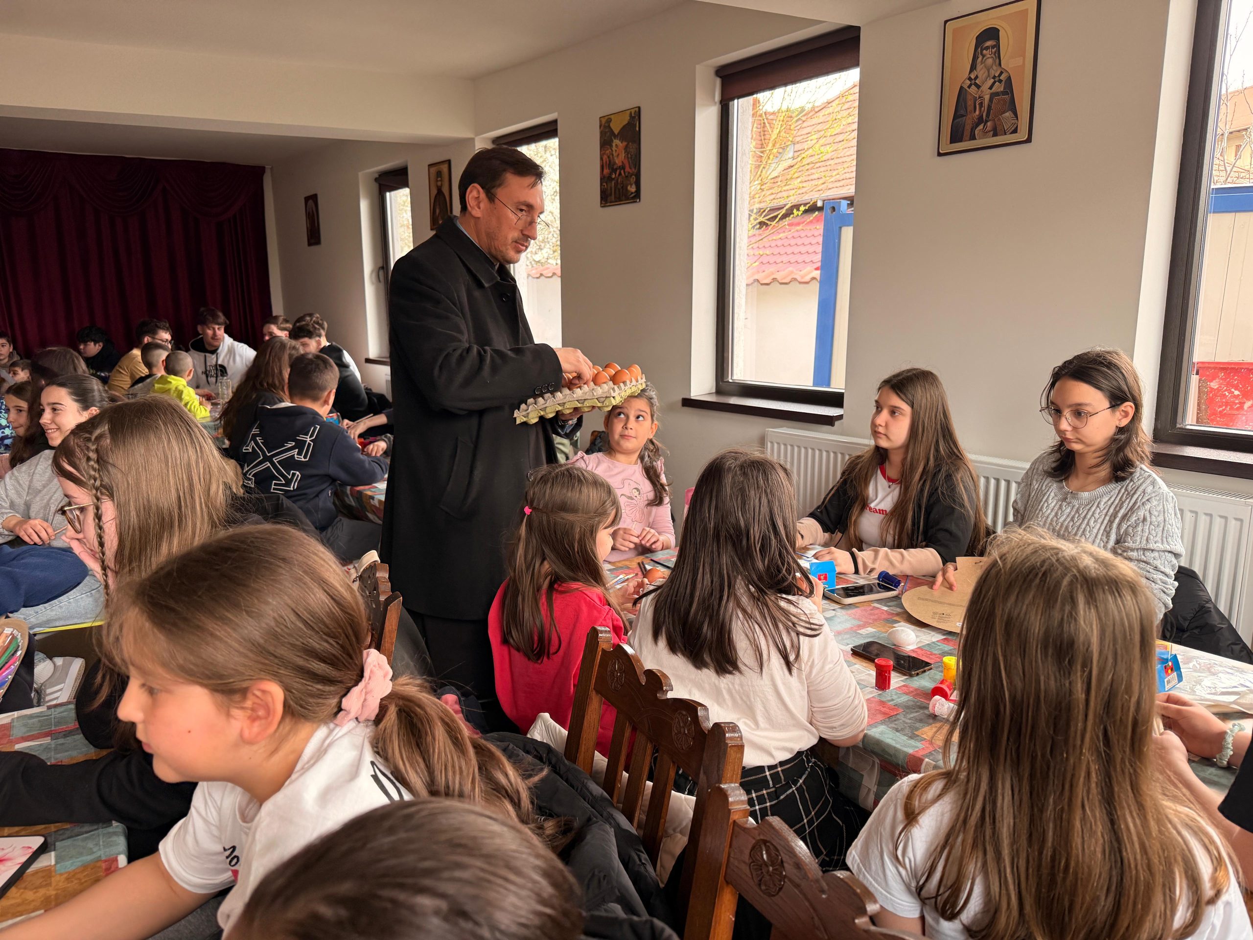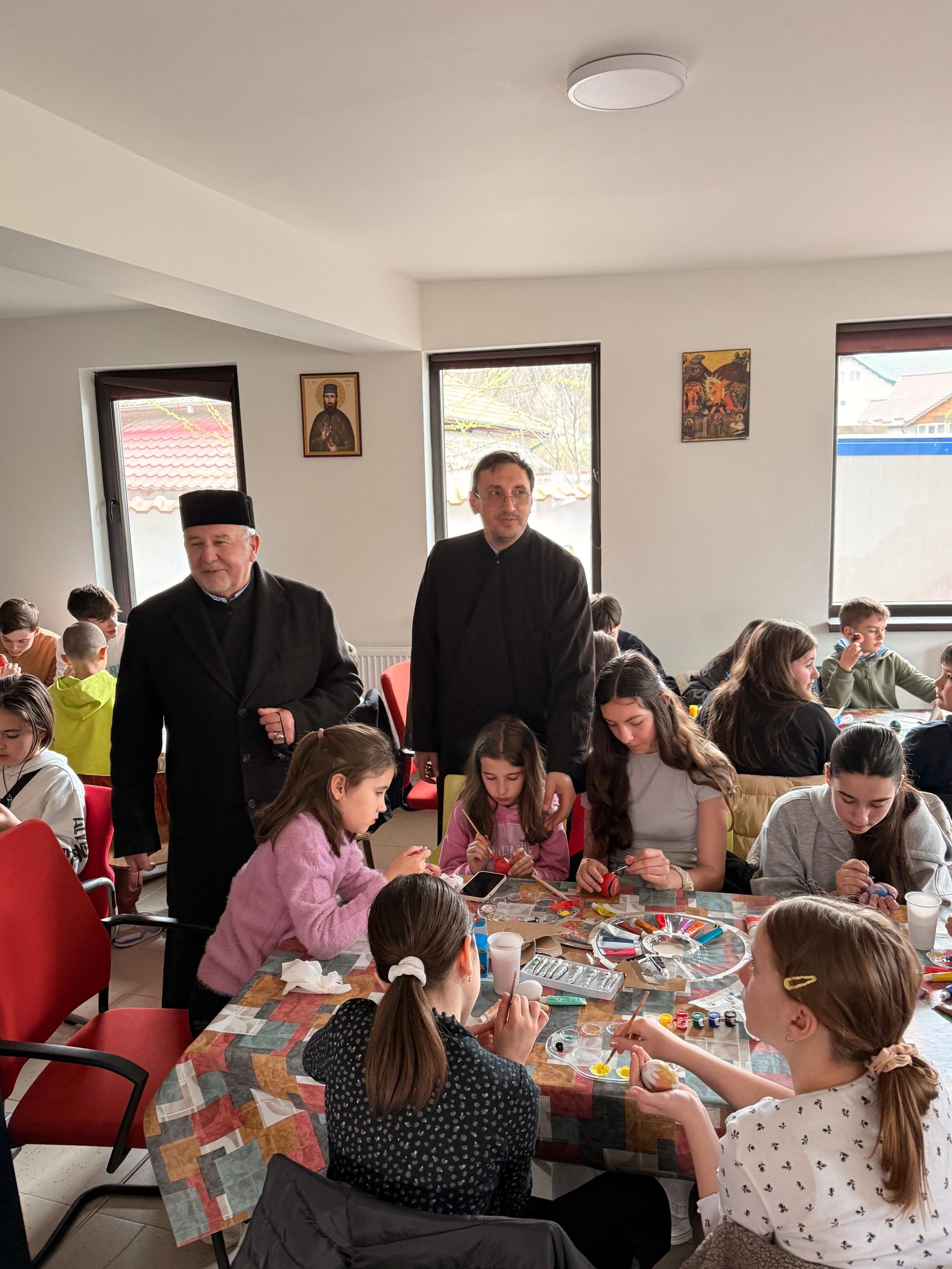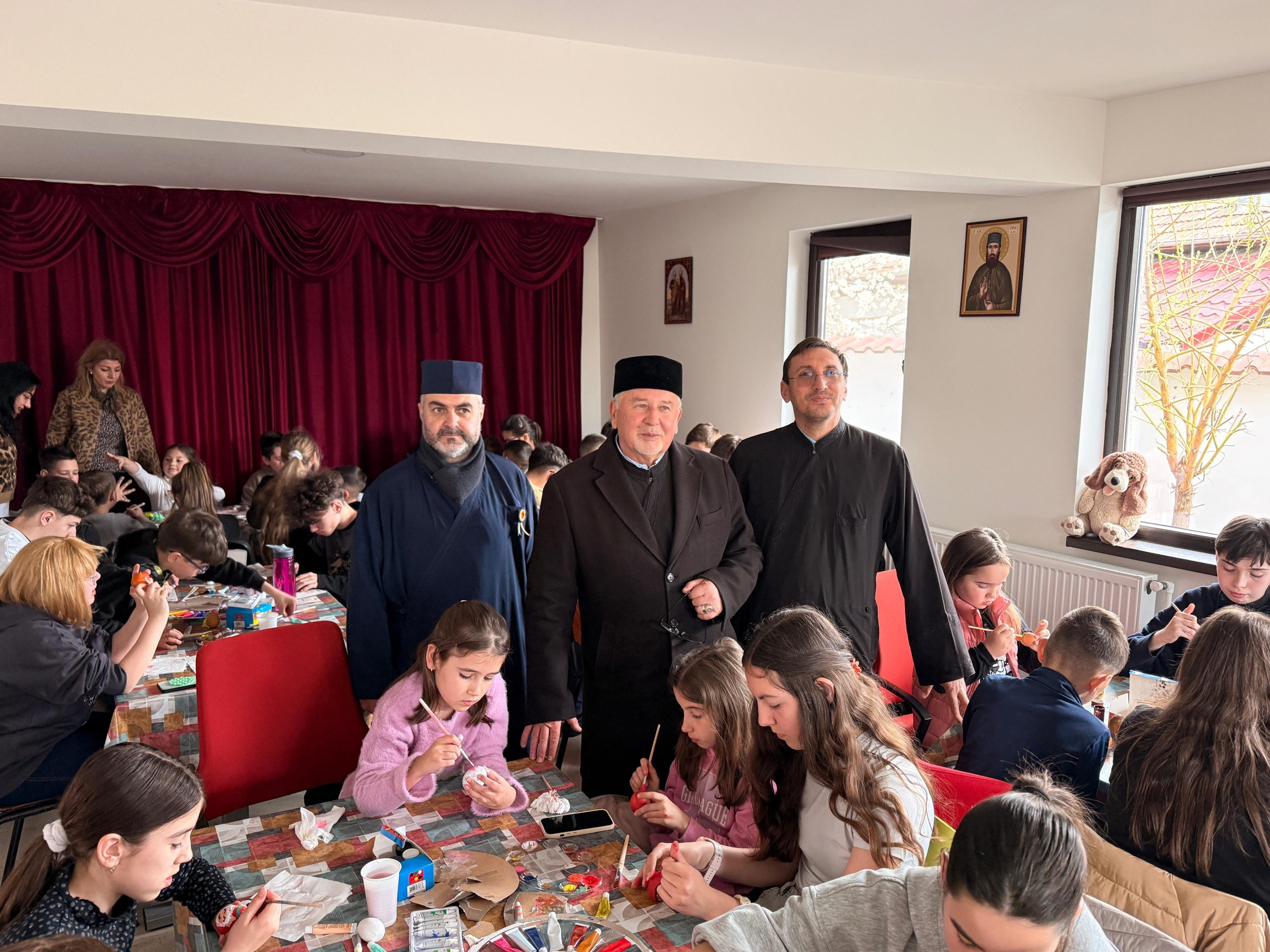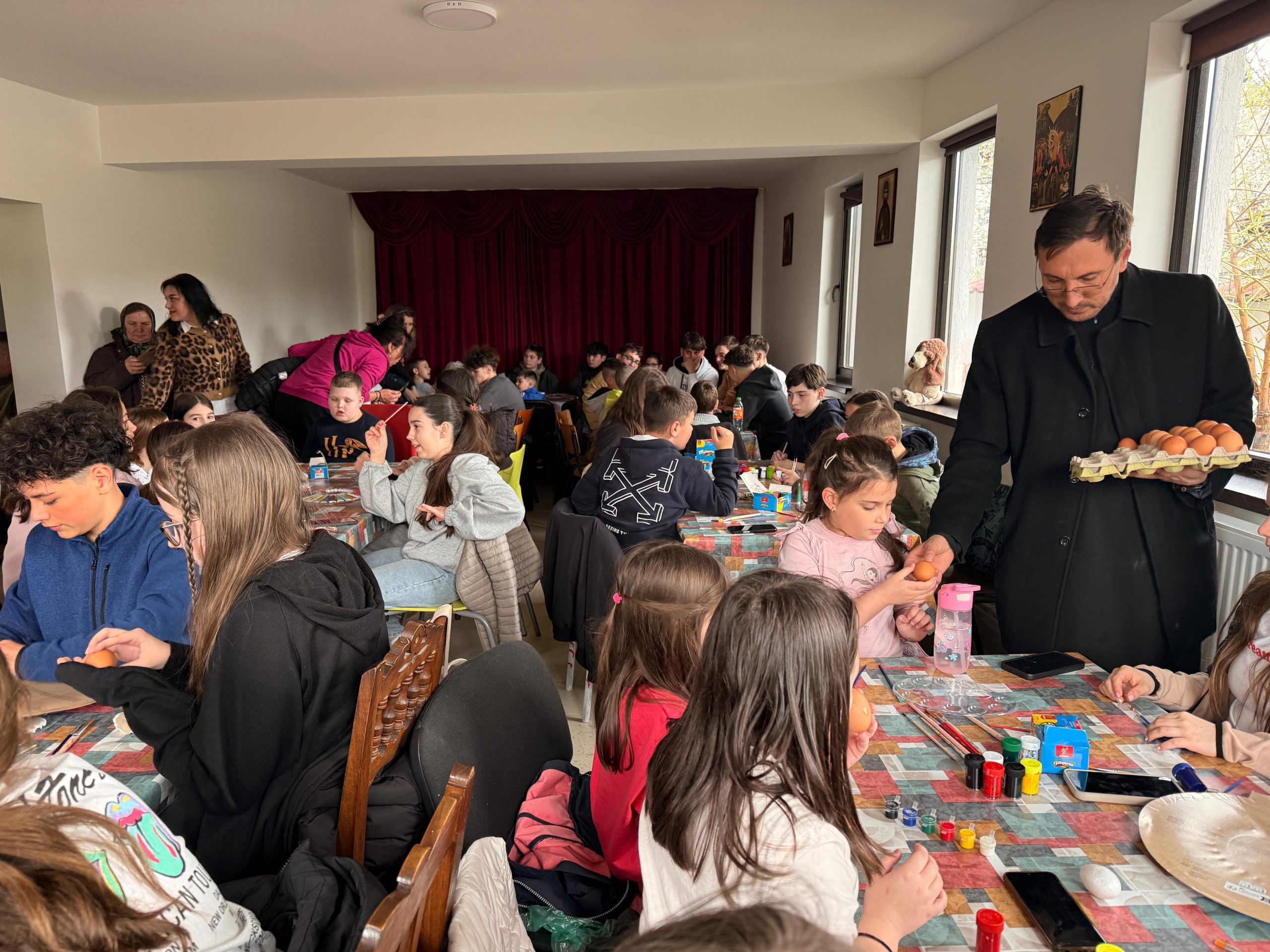 Zeci de copii, coordonați de părintele slujitor Ungurenuș Florentin, s-au adunat pentru a realiza cele mai frumoase ouă de Paști. În mijlocul lor a fost prezent părintele Dan Florin Obrocea care a transmis Arhiereasca Binecuvântare a Părintelui Arhiepiscop Calinic Argeșeanul, și părintele Ilina Vasile, responsabil cu cateheza în Protoieria Curtea de Argeș.