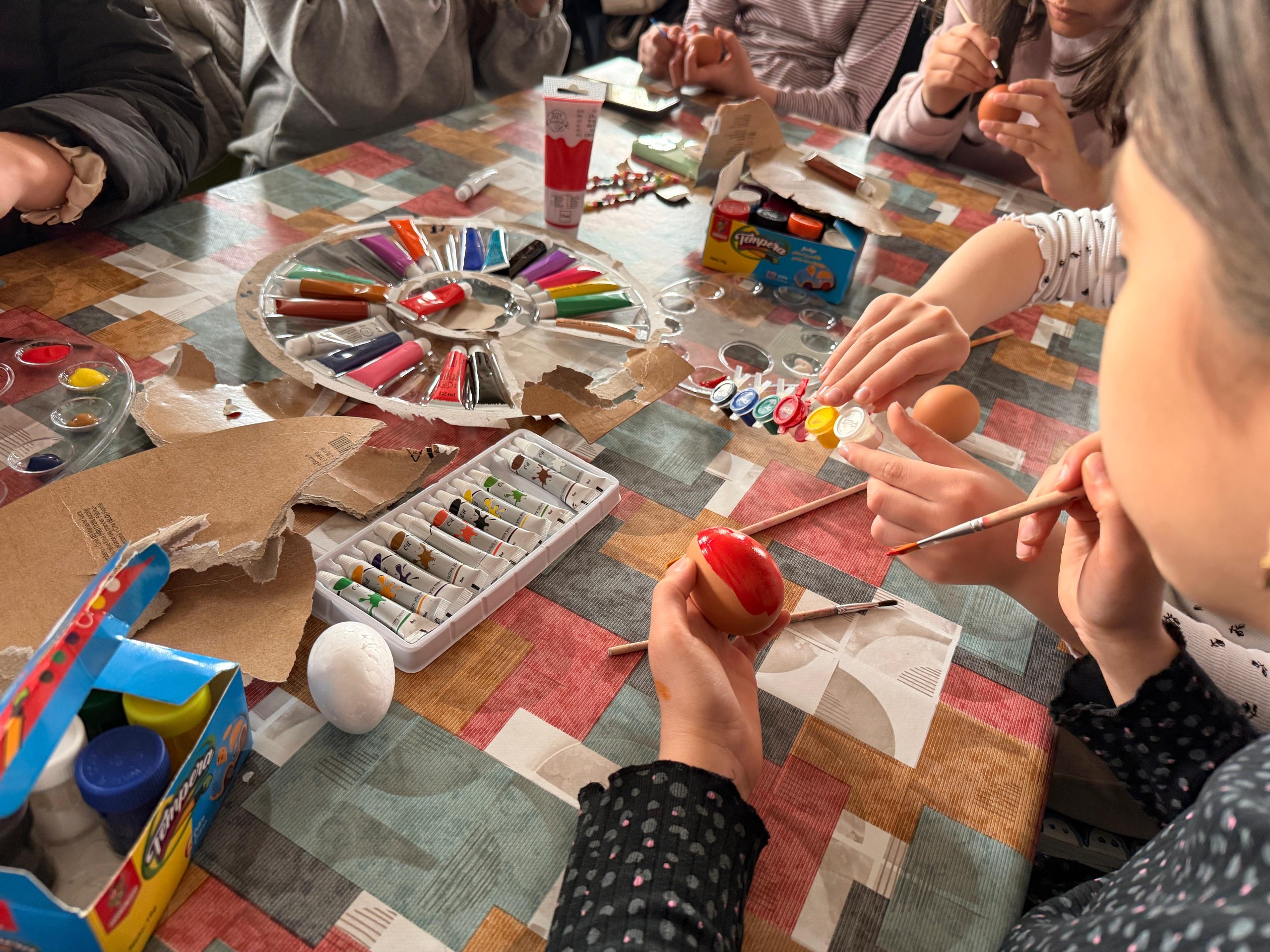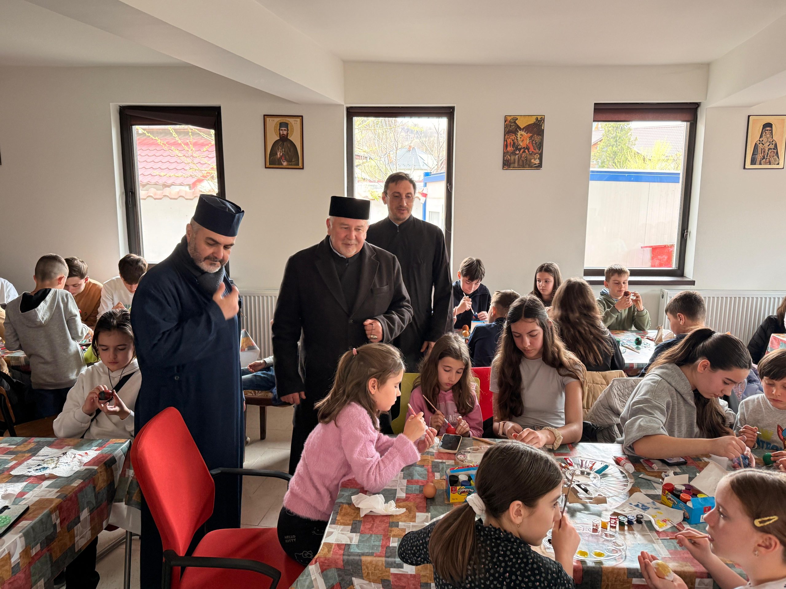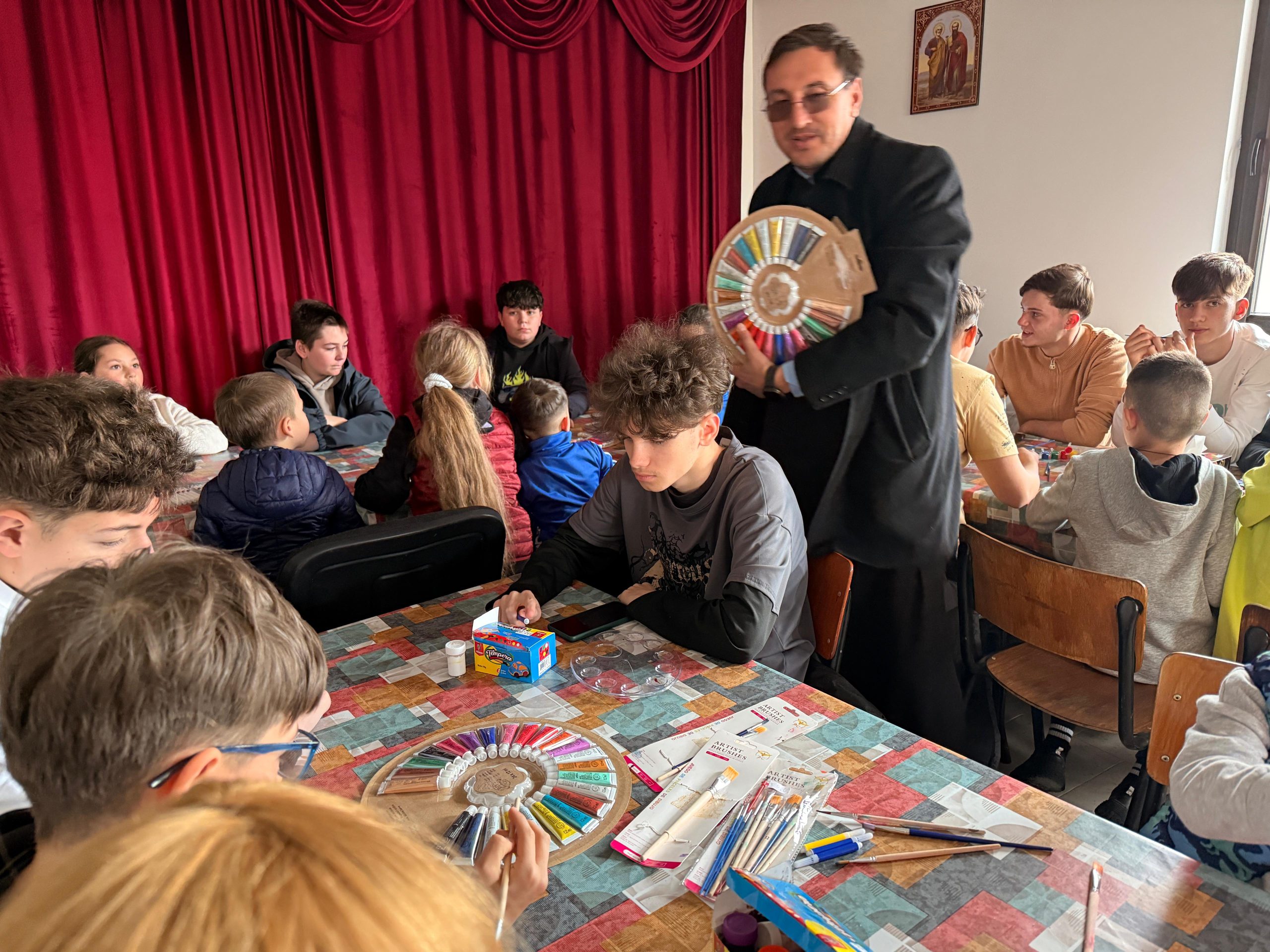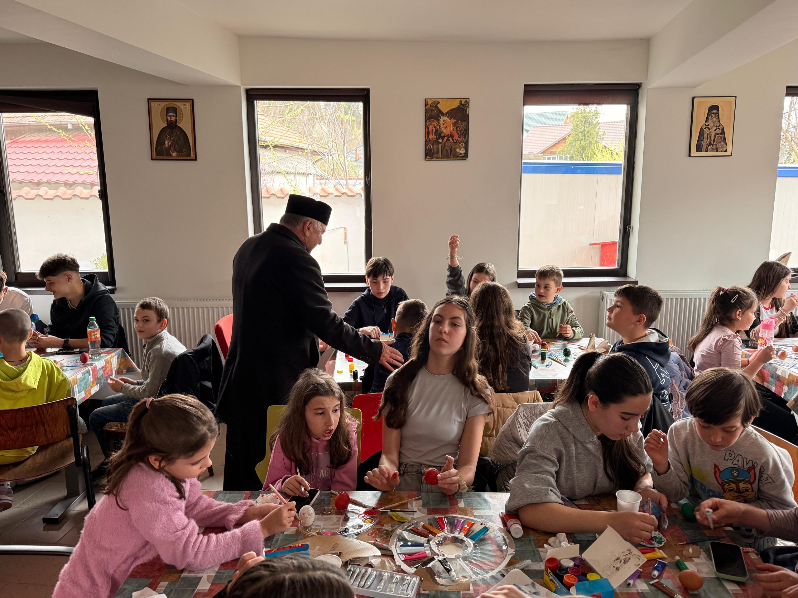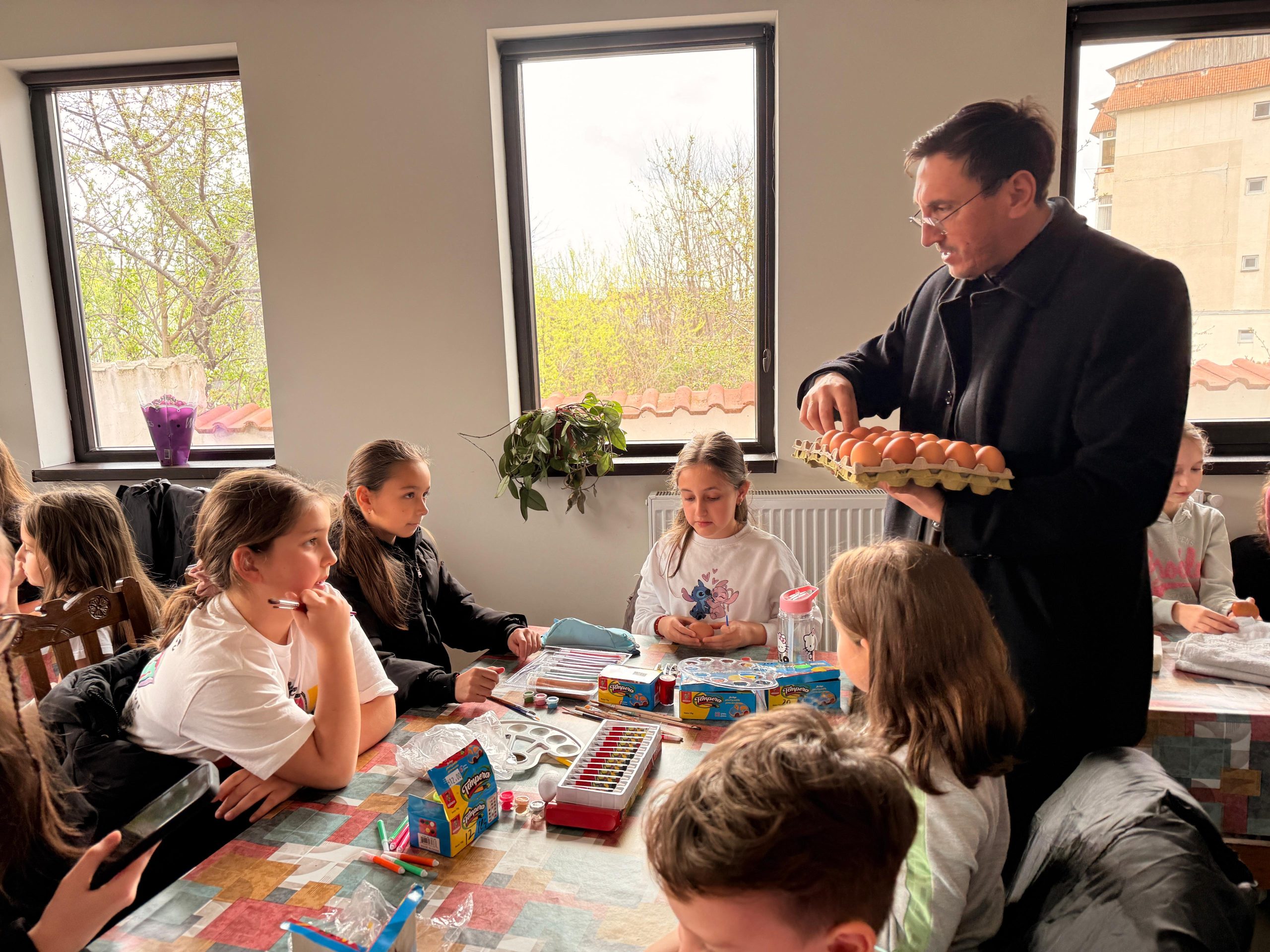 Zeci de copii, coordonați de părintele slujitor Ungurenuș Florentin, s-au adunat pentru a realiza cele mai frumoase ouă de Paști. În mijlocul lor a fost prezent părintele Dan Florin Obrocea care a transmis Arhiereasca Binecuvântare a Părintelui Arhiepiscop Calinic Argeșeanul, și părintele Ilina Vasile, responsabil cu cateheza în Protoieria Curtea de Argeș.