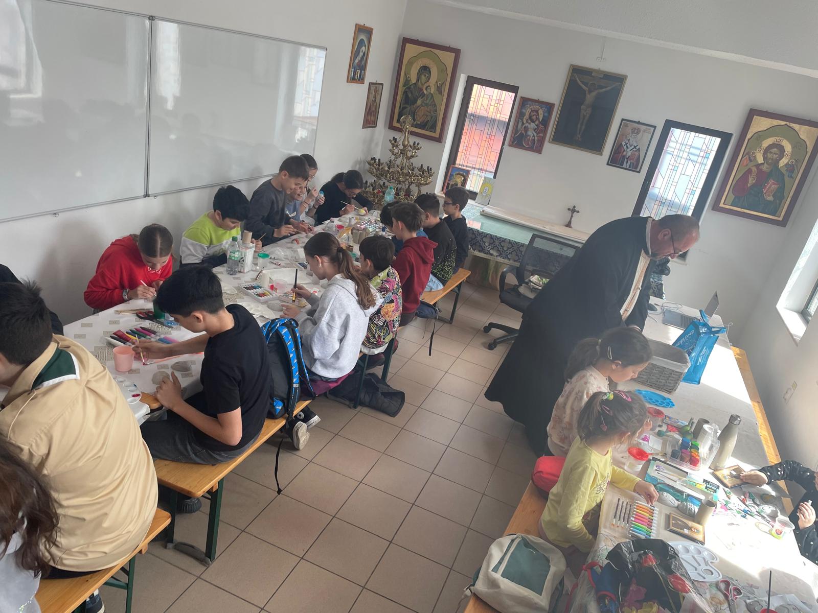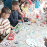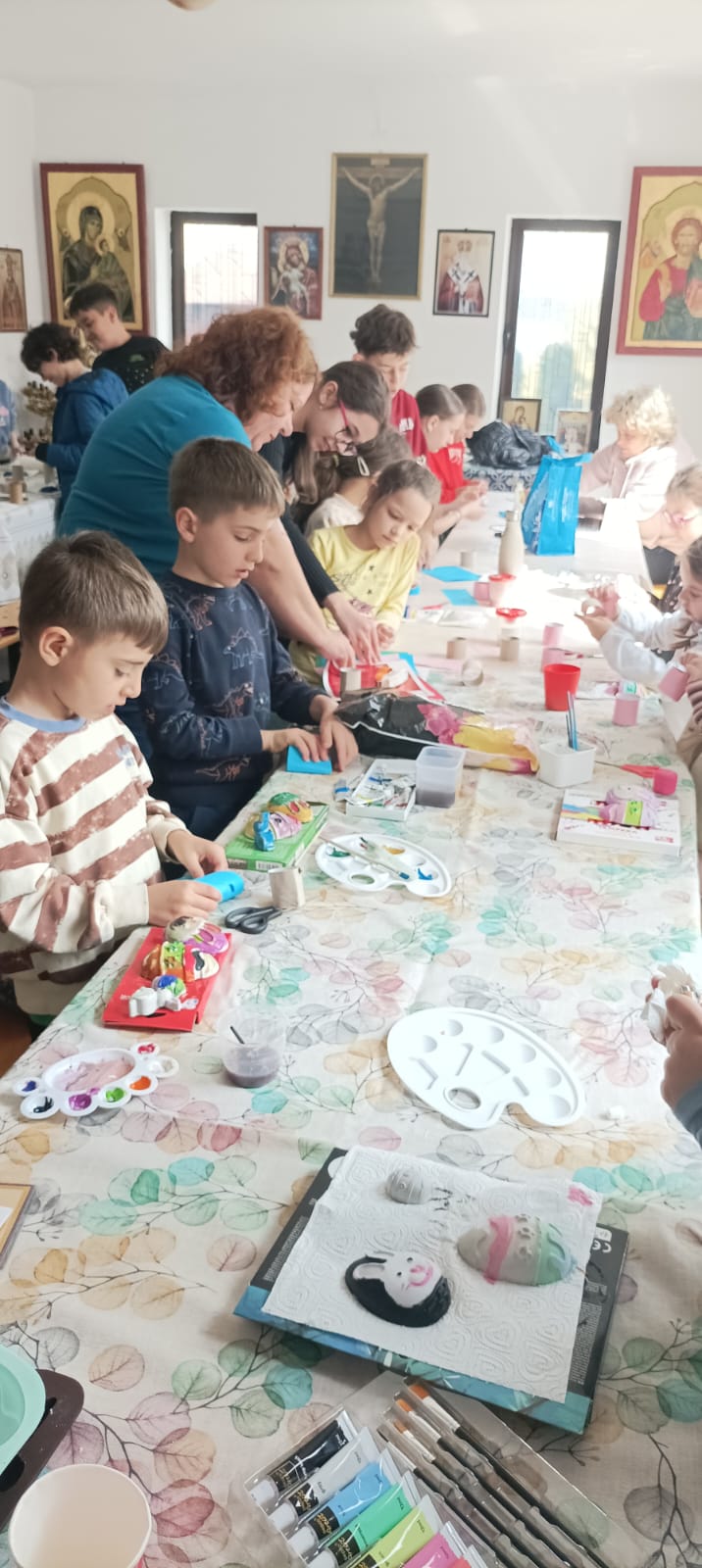 Copiii, coordonați de voluntari, au pictat și au confecționat diverse obiecte.