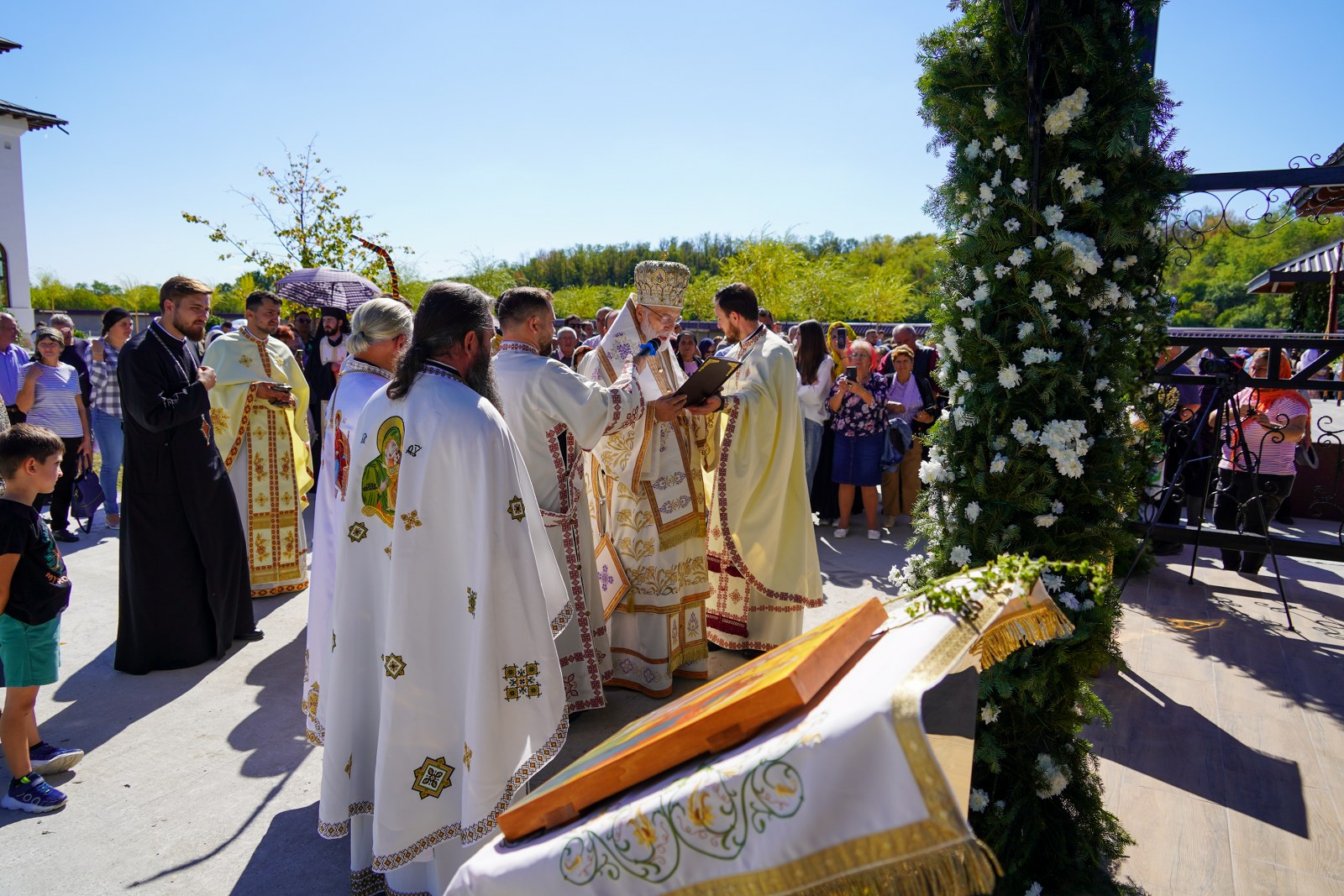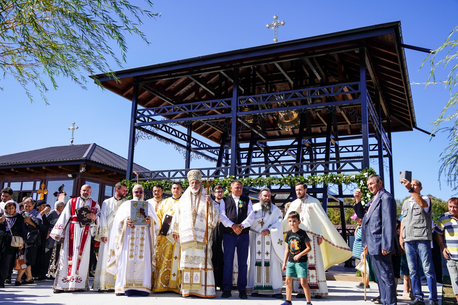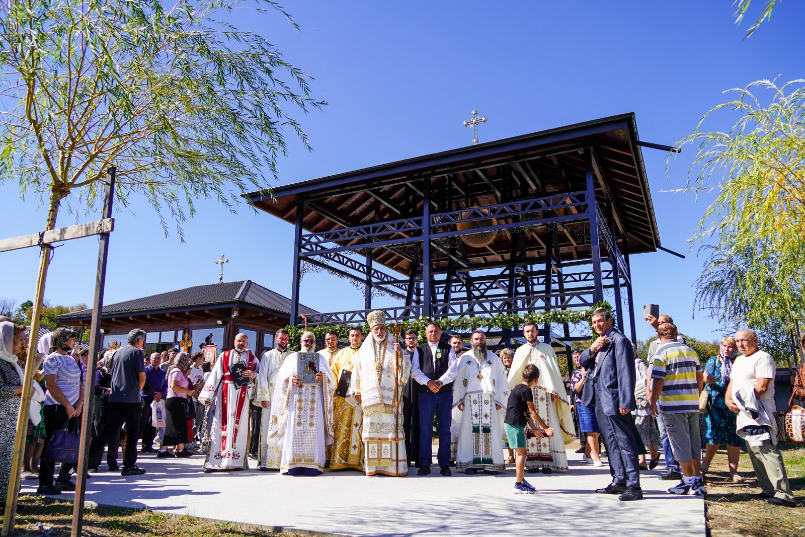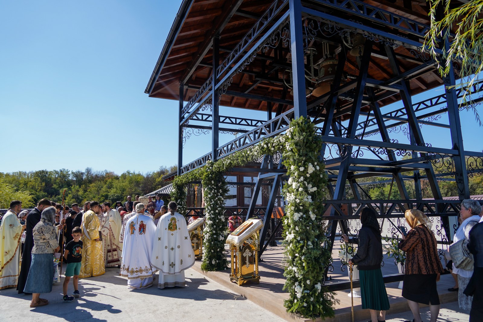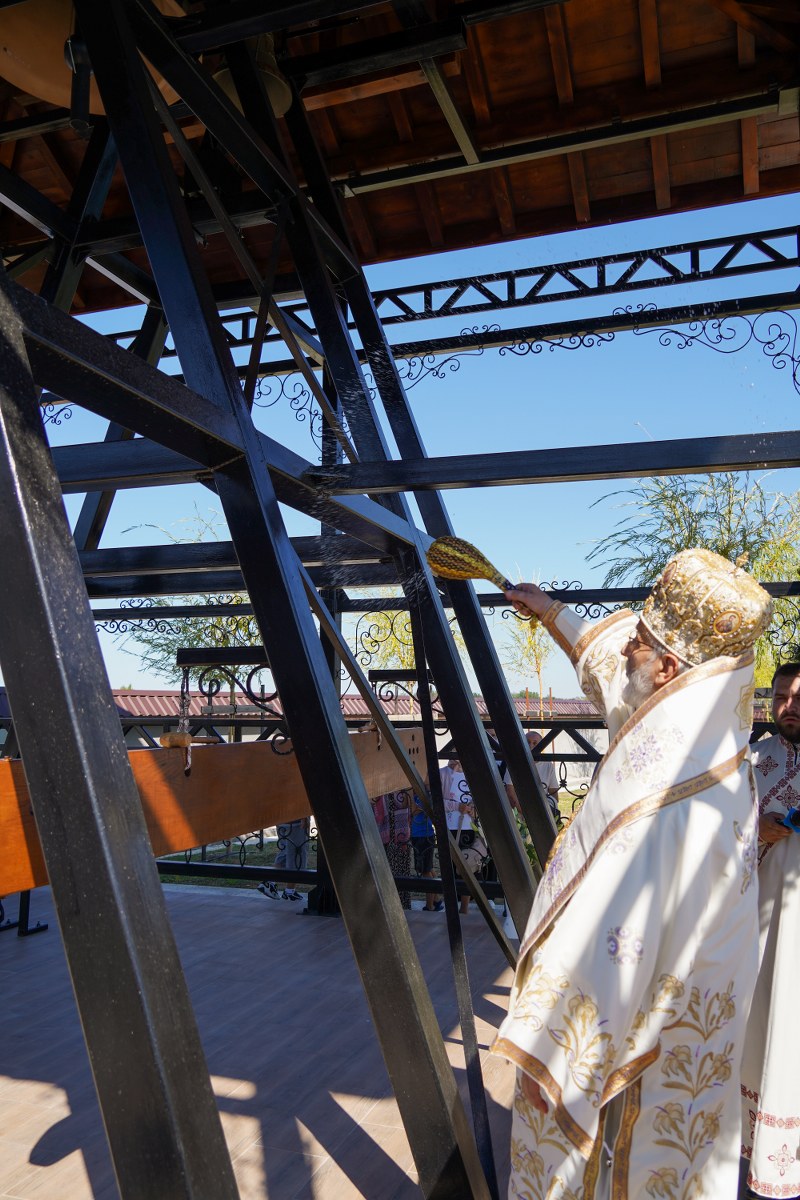 Cu această ocazie, Chiriarhul a săvârșit și slujba de sfințire a noii clopotnițe cu cele  trei clopote, precum și a troiței cu imaginea Sfintei Treimi realizată în mozaic.