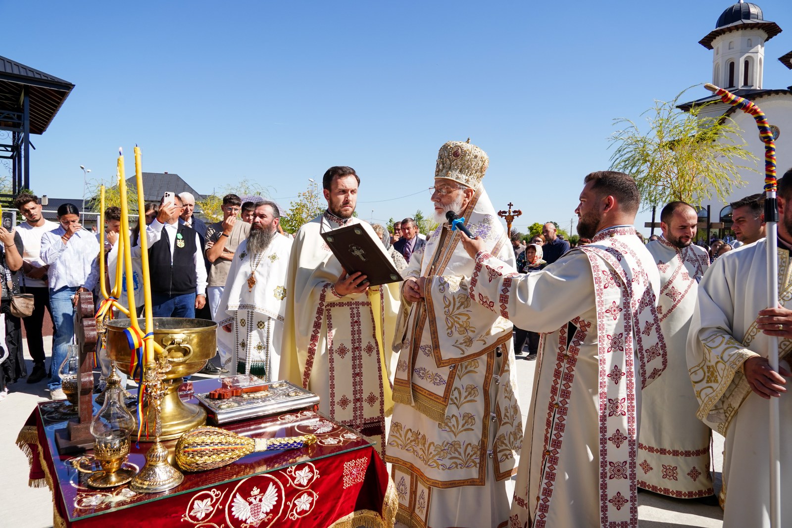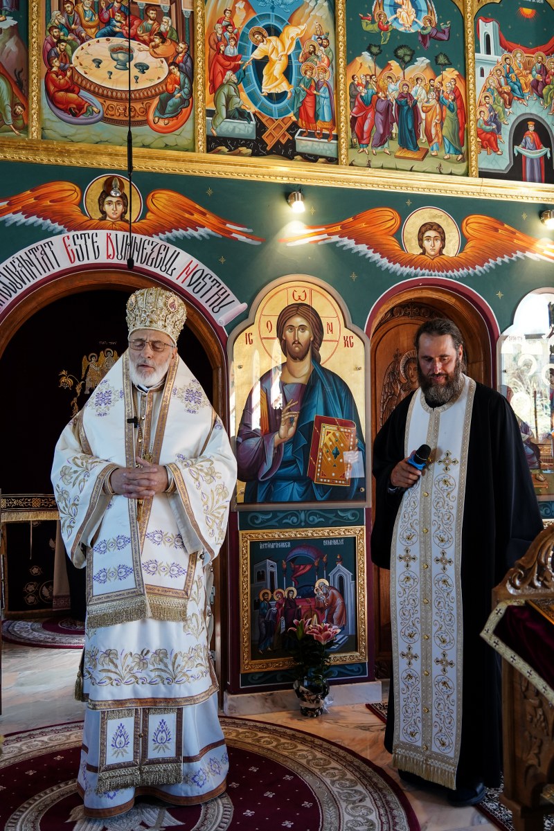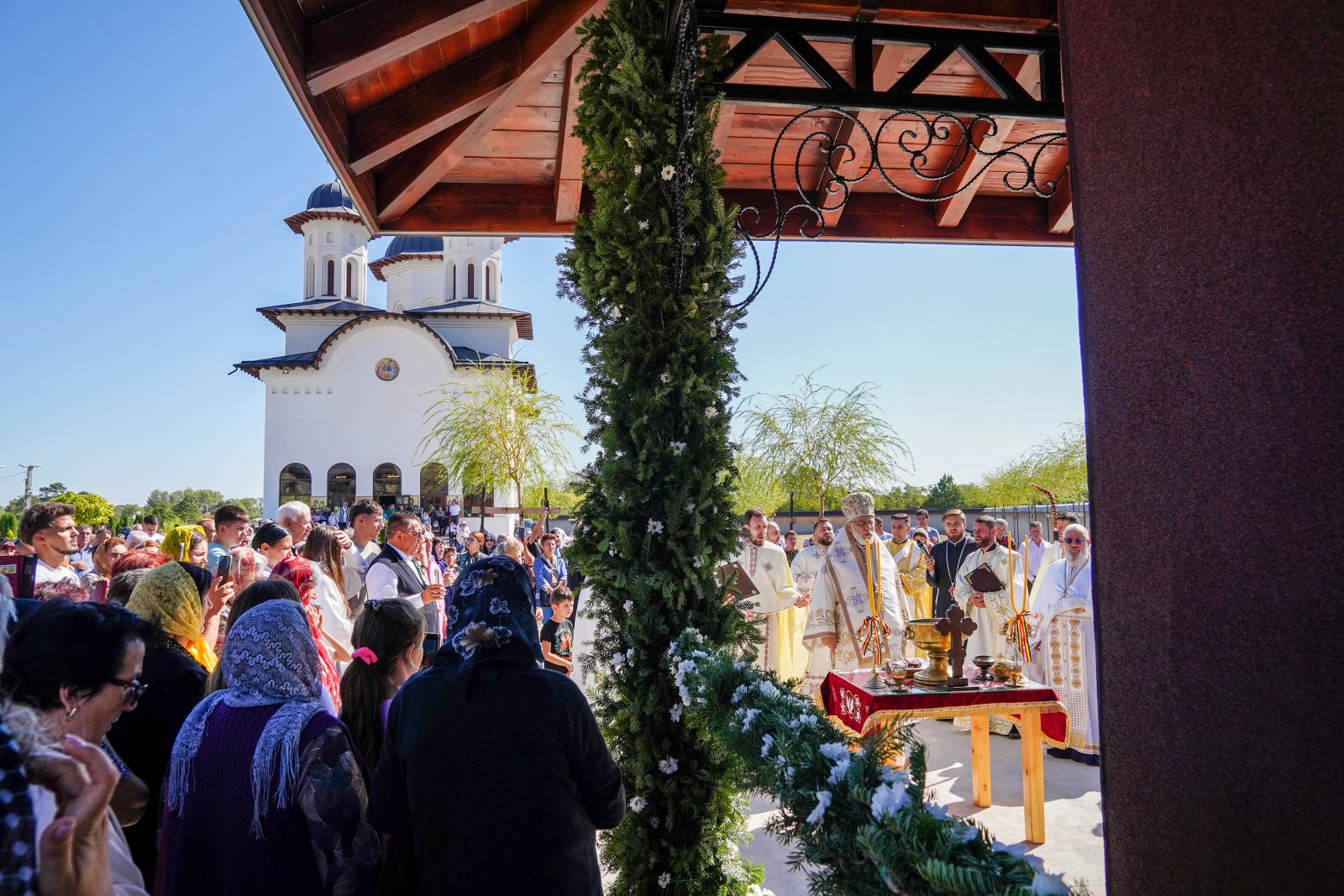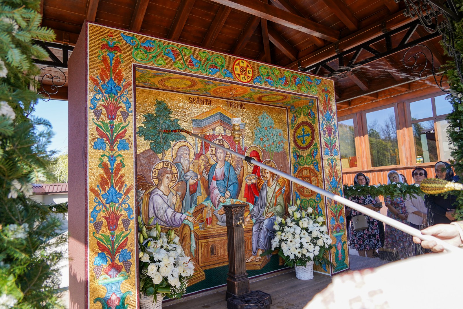 Cu această ocazie, Chiriarhul a săvârșit și slujba de sfințire a noii clopotnițe cu cele  trei clopote, precum și a troiței cu imaginea Sfintei Treimi realizată în mozaic.