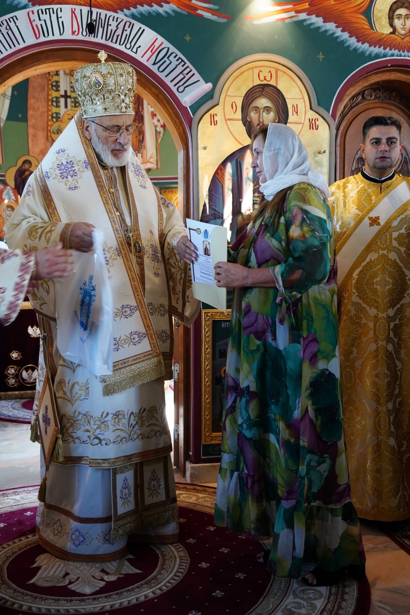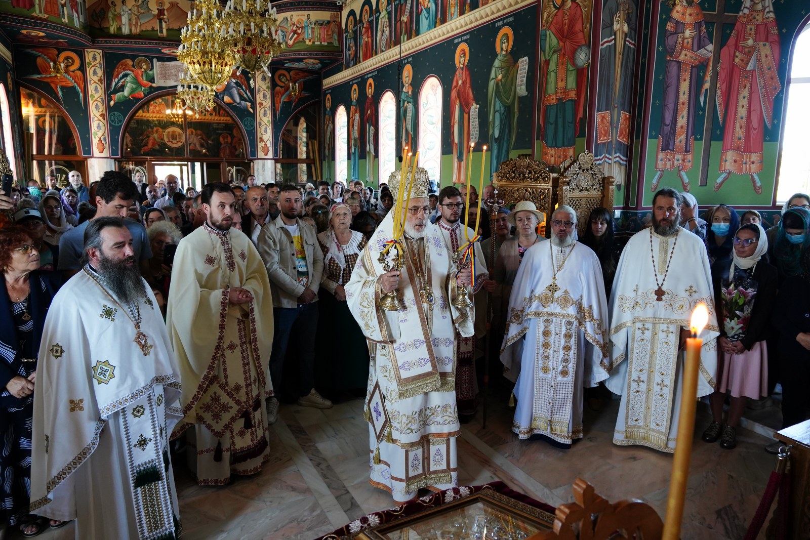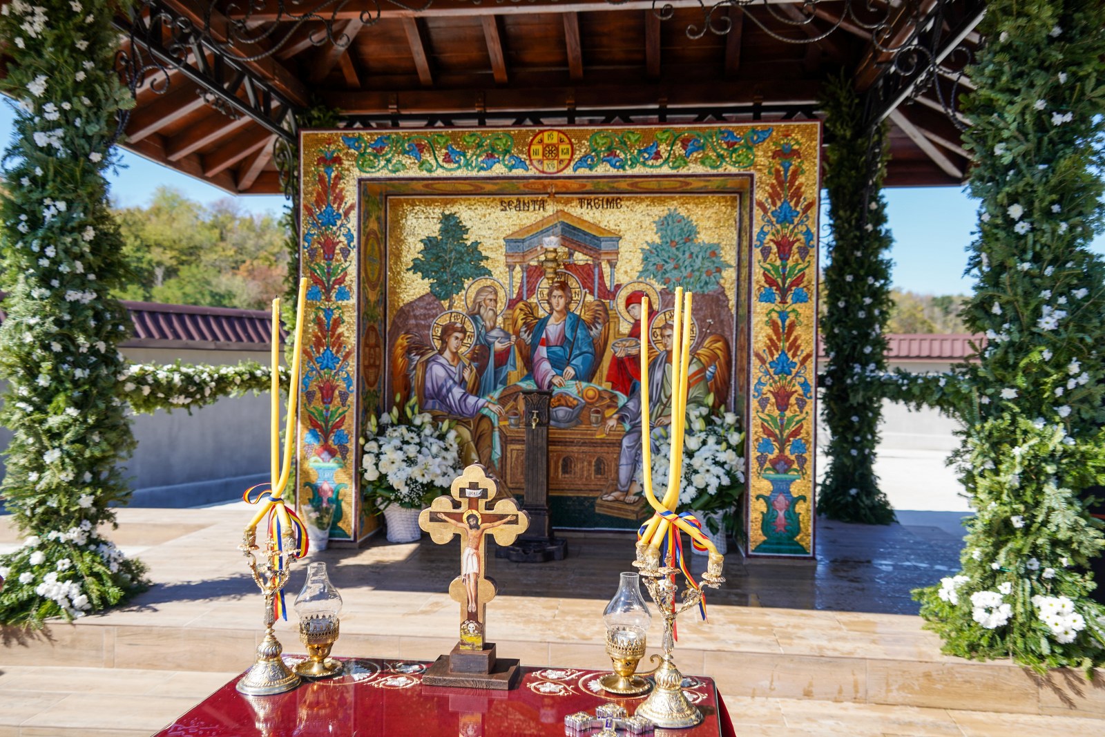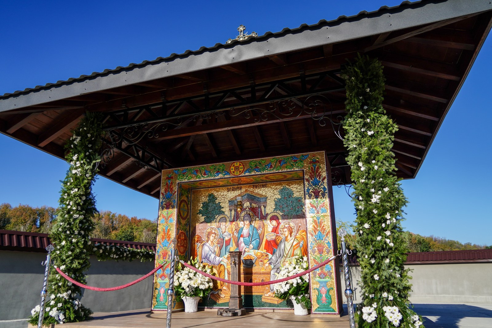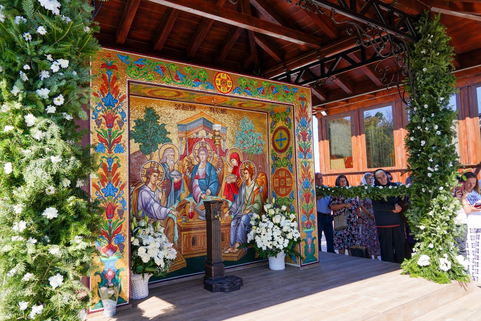 Cu această ocazie, Chiriarhul a săvârșit și slujba de sfințire a noii clopotnițe cu cele  trei clopote, precum și a troiței cu imaginea Sfintei Treimi realizată în mozaic.