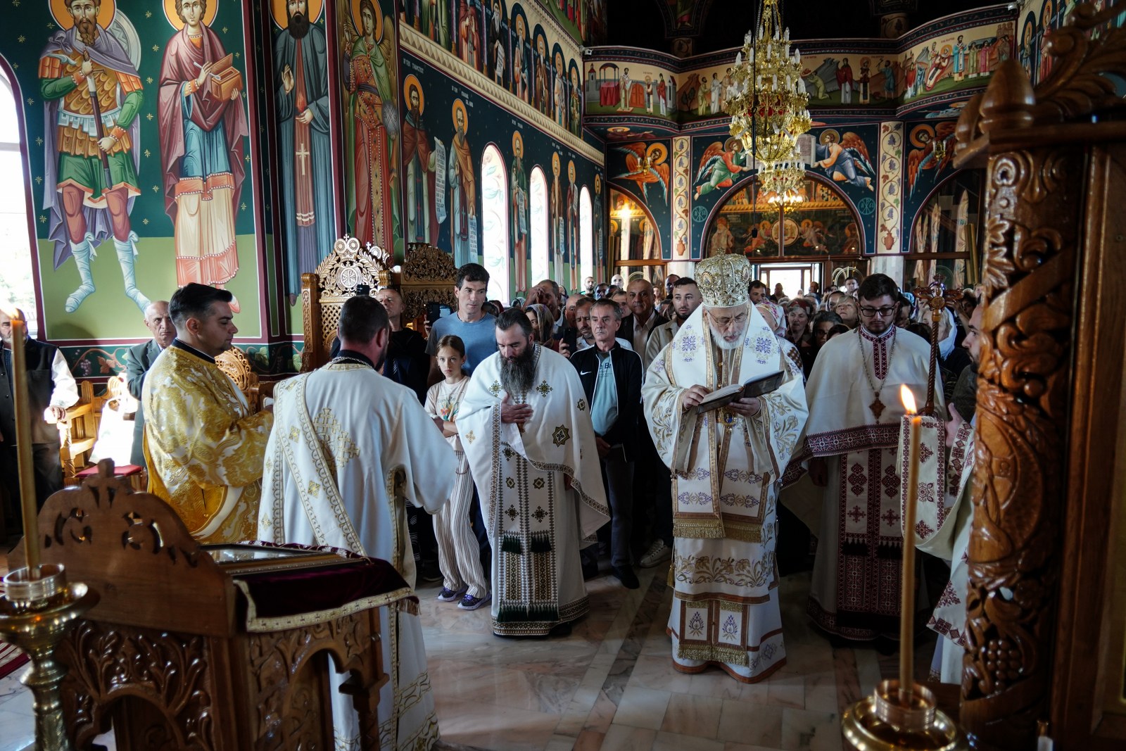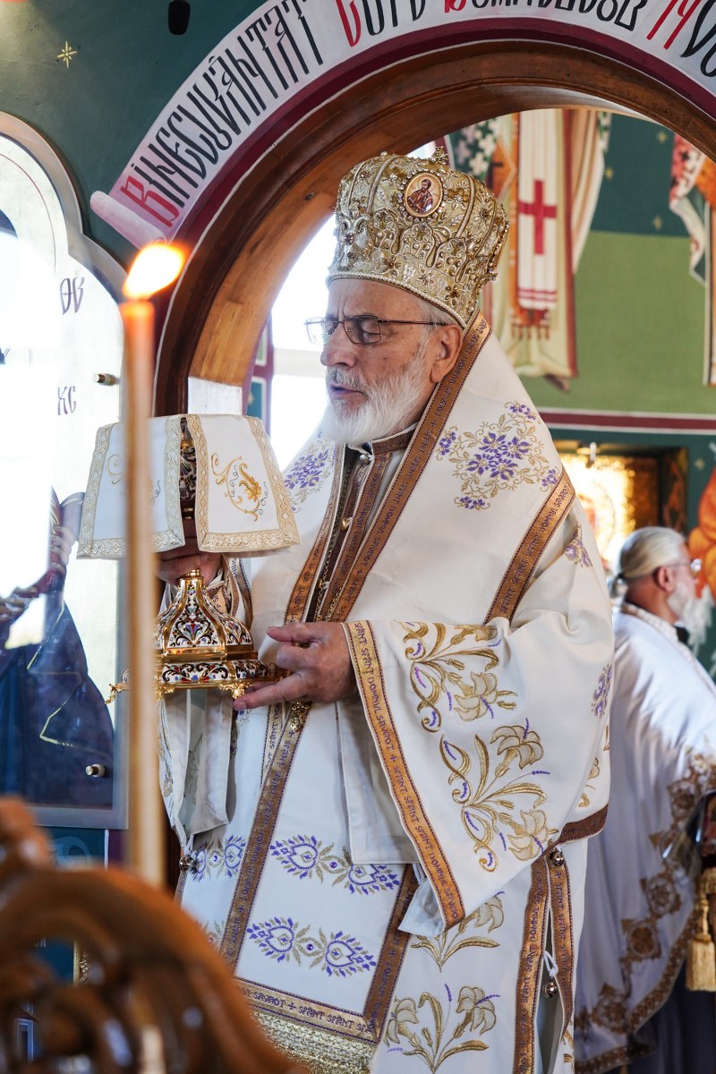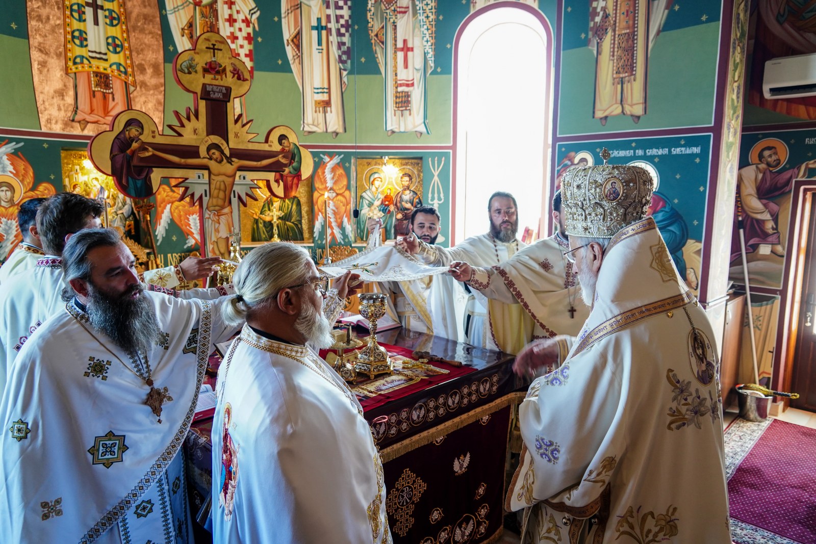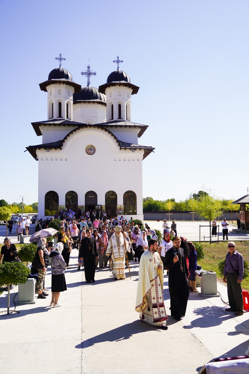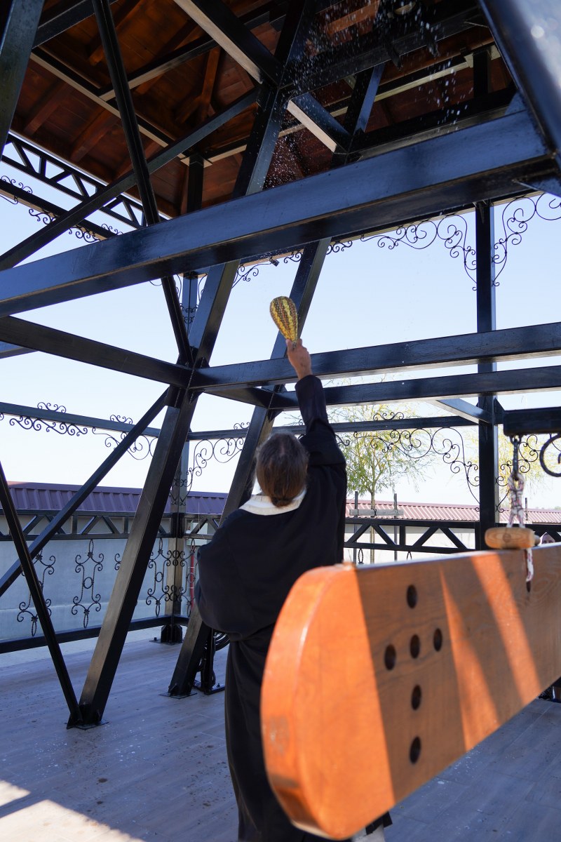 Cu această ocazie, Chiriarhul a săvârșit și slujba de sfințire a noii clopotnițe cu cele  trei clopote, precum și a troiței cu imaginea Sfintei Treimi realizată în mozaic.