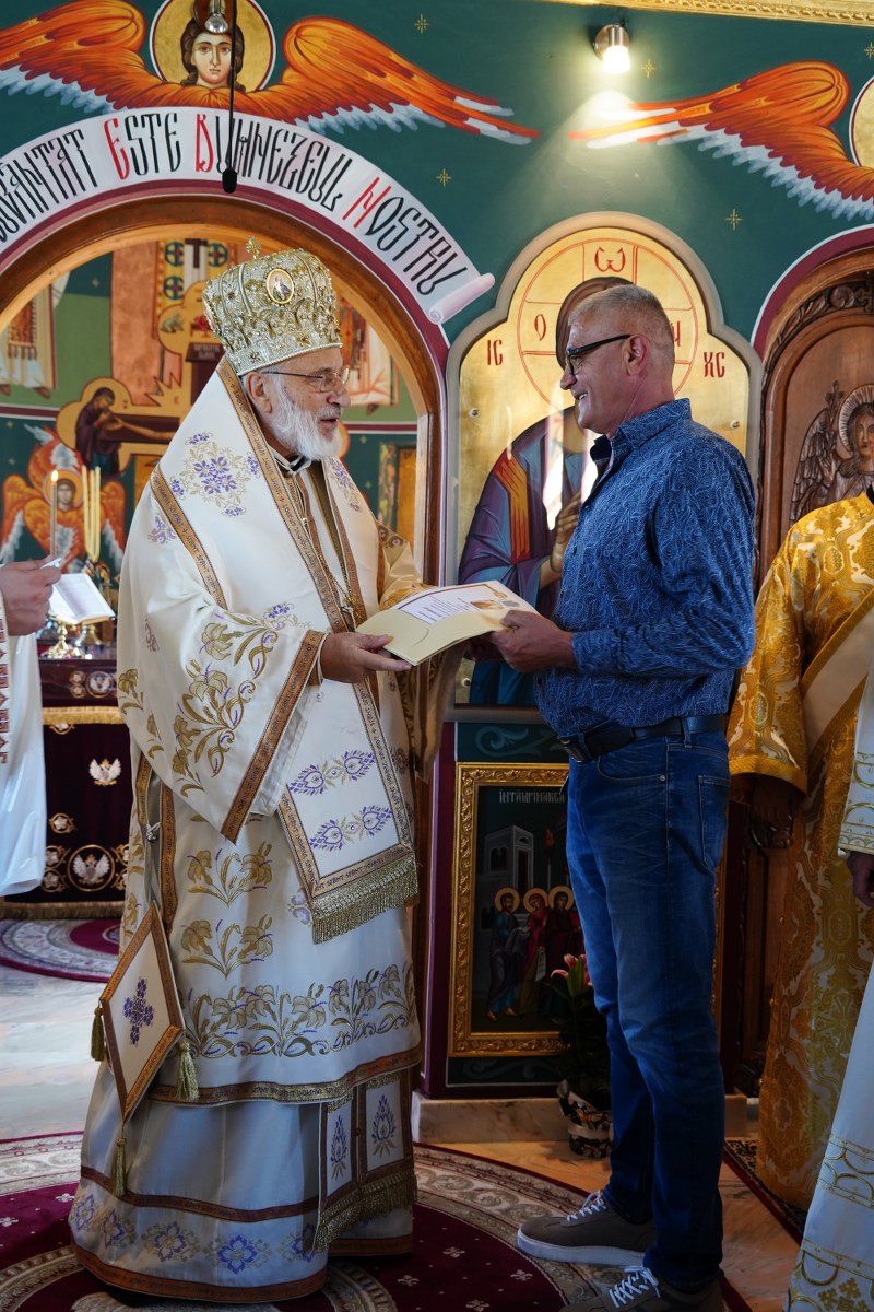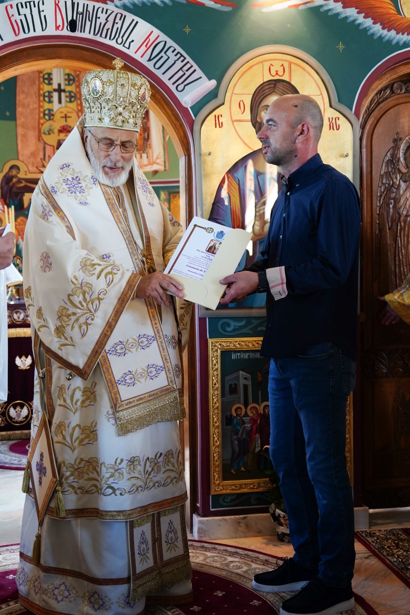Drept mulțumire pentru sprijinul financiar oferit mănăstirii, ctitorii Marian Drăgușin și Baicu Georgică au primit din partea Chiriarhului, medalia creștin ortodoxă ,, Sf. Cuv. Ioanichie Cel Nou de la Muscel”. De asemenea, încă 15 persoane au primit diplome de vrednicie.