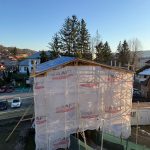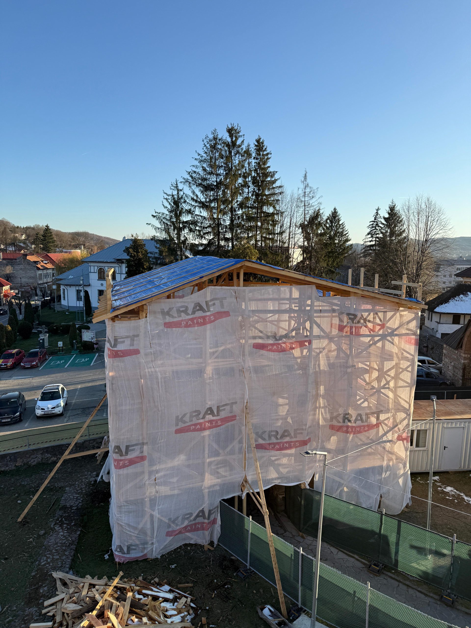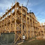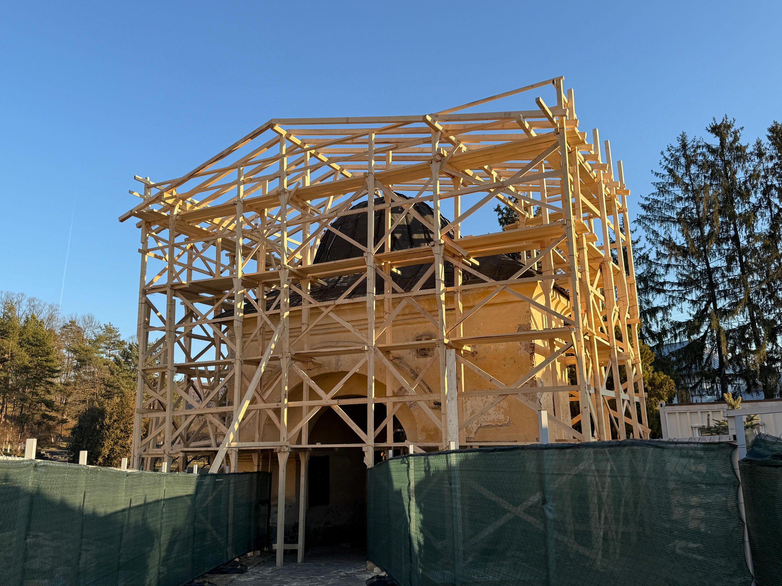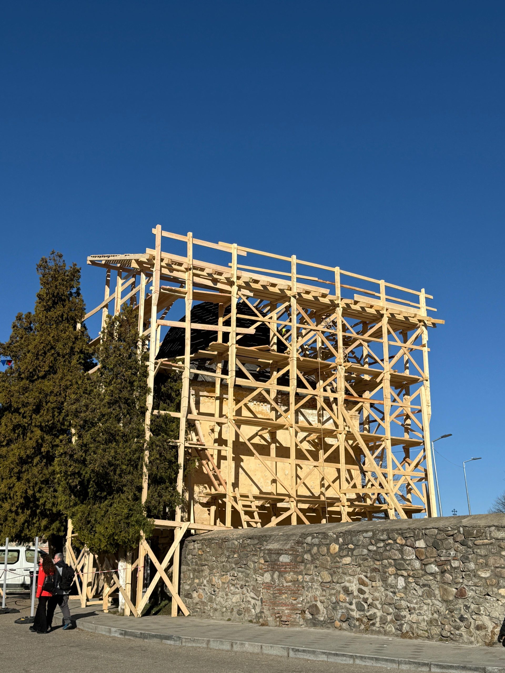 În prezent sunt montate schelele de lemn atât pe biserică, cât și pe turnul clopotniță, iar zeci de muncitori lucrează în ambele zone, profitând și de vremea foarte bună.