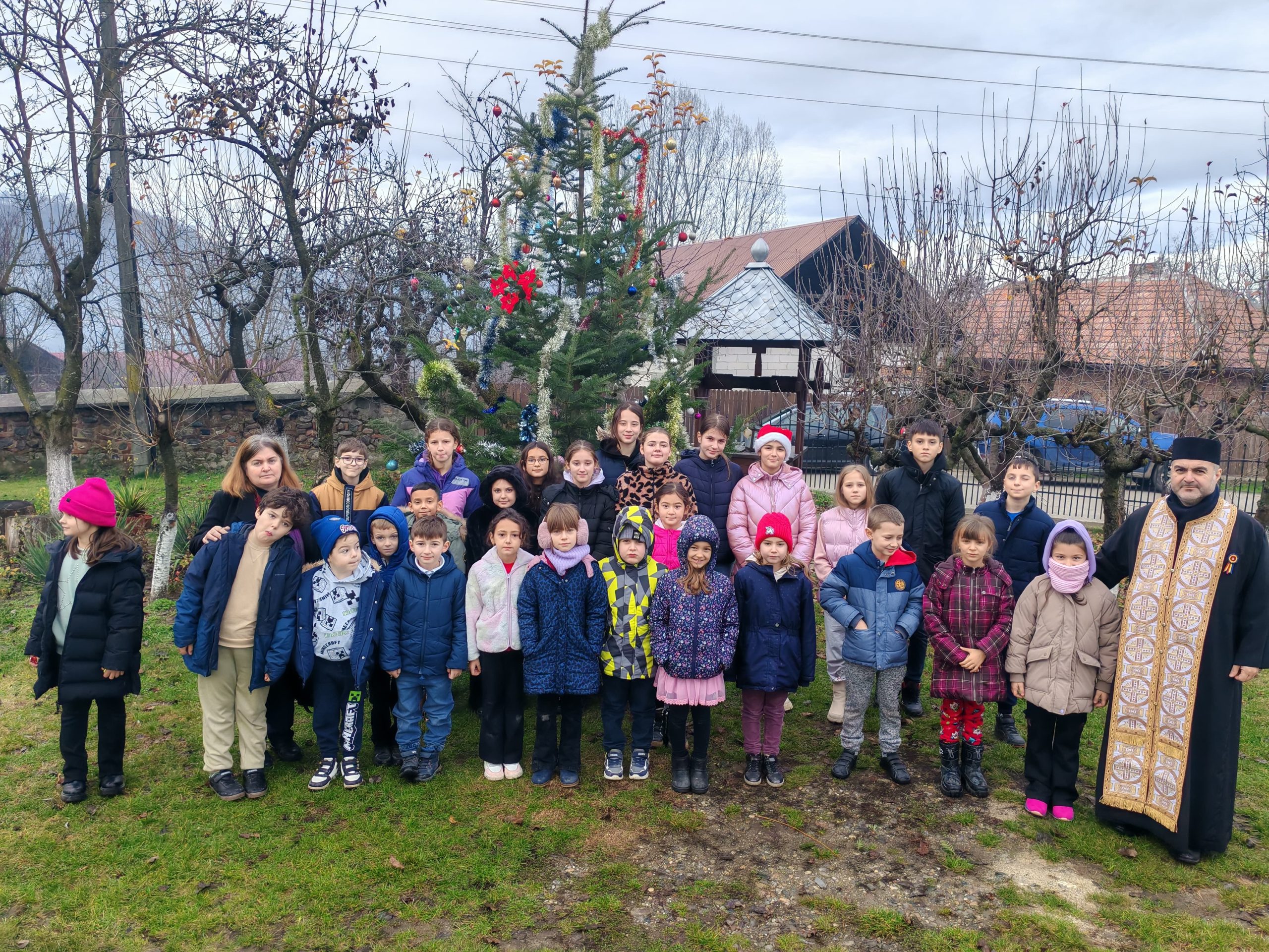 Bradul împodobit cu migală și emoție a devenit simbolul unității dintre generații, dintre școală și biserică, dintre trecut și prezent. În continuarea acestui moment de sărbătoare, glasurile cristaline ale copiilor au răsunat în biserică, aducând colinde care au reînviat farmecul tradițiilor românești legate de Praznicul Nașterii Domnului. Fiecare colindă a fost o rugăciune cântată, o punte între cer și pământ, între sufletul curat al copilului și lumina divină a sărbătorii.