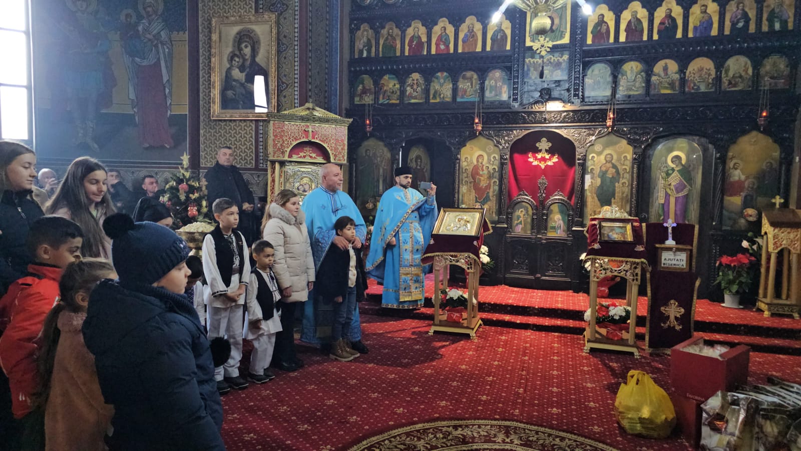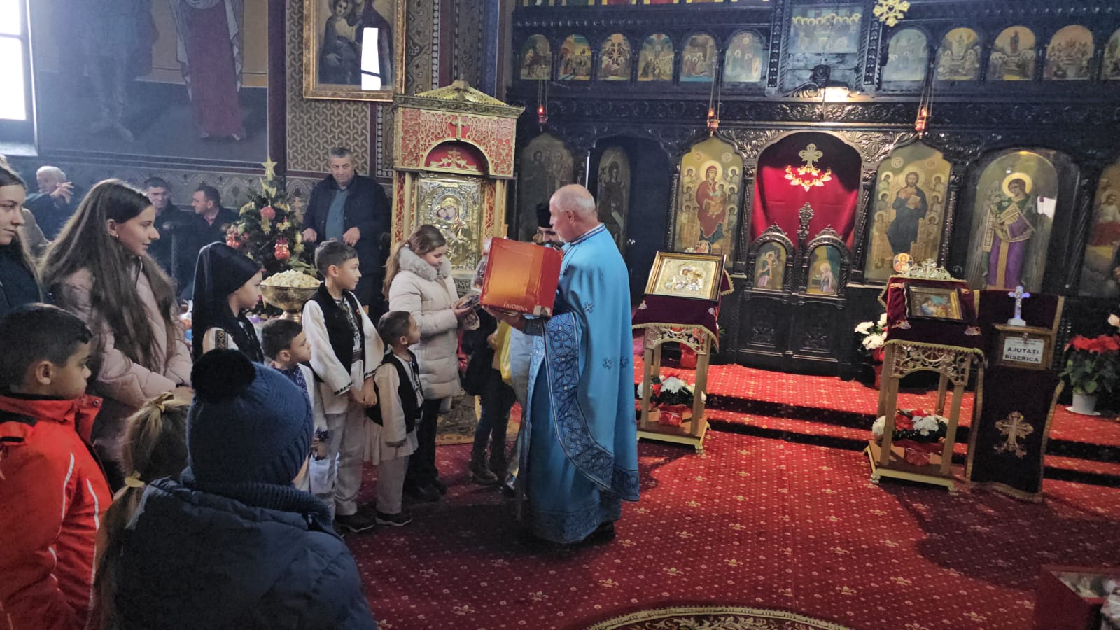 Preoții slujitori Dumitru Gheorghe și Roșu Ion Irinel de la parohia Corbi, protoieria Curtea de Argeș, au primit grupurile de colindători care au adus Vestea cea bună a Nașterii Pruncului Iisus, iar la final, au fost oferite daruri.