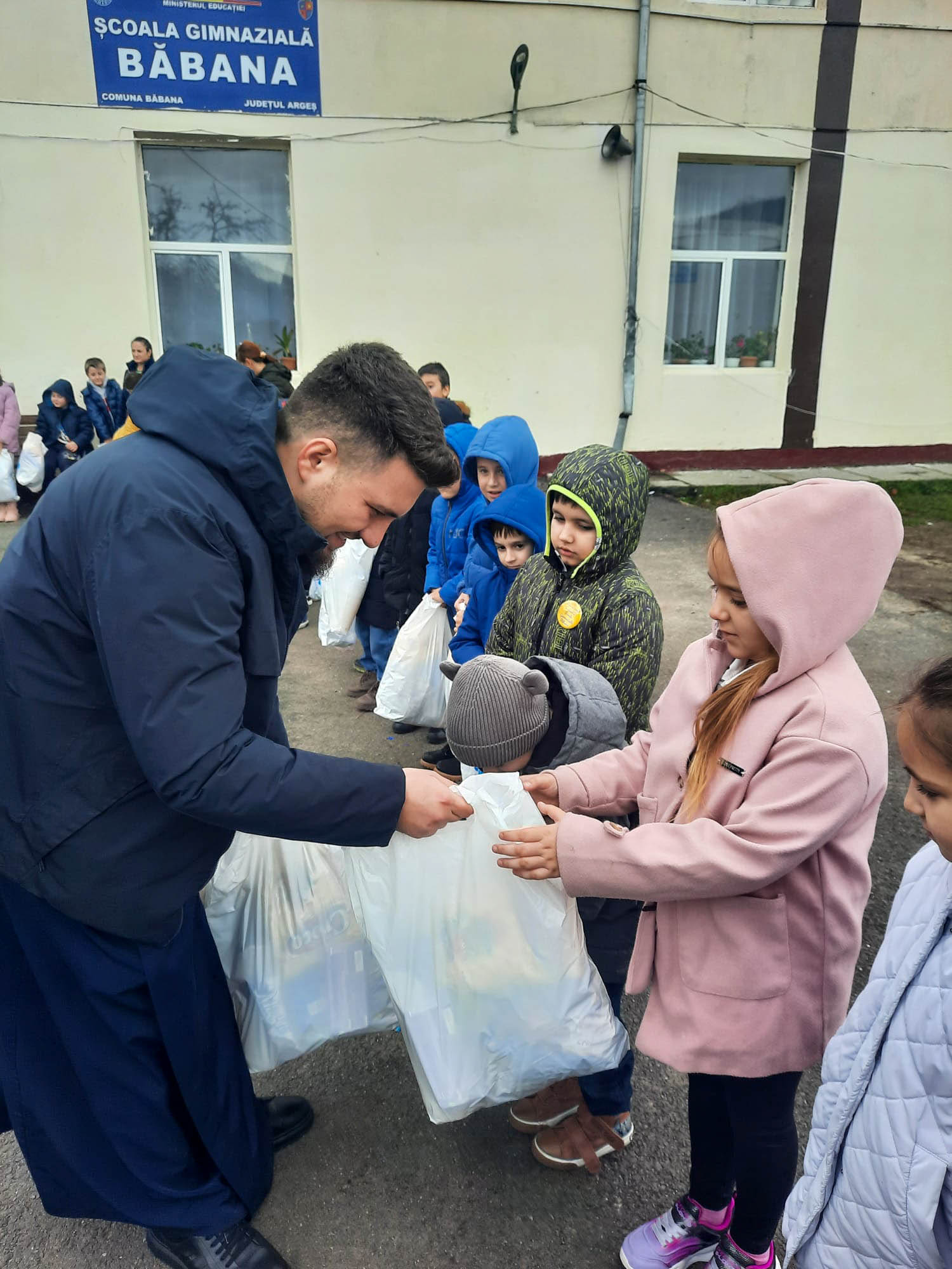 O echipă formată din preoți și voluntari mireni, coordonată de părintele Andrei Diaconescu, consilier eparhial responsabil al Sectorului Social-Filantropic, a adus bucuria Nașterii Domnului la peste 200 de copii de la Școala Gimnazială Băbana, din cadrul Protoieriei Pitești, copiii primind cu emoție și recunoștință darurile pregătite cu multă dăruire.