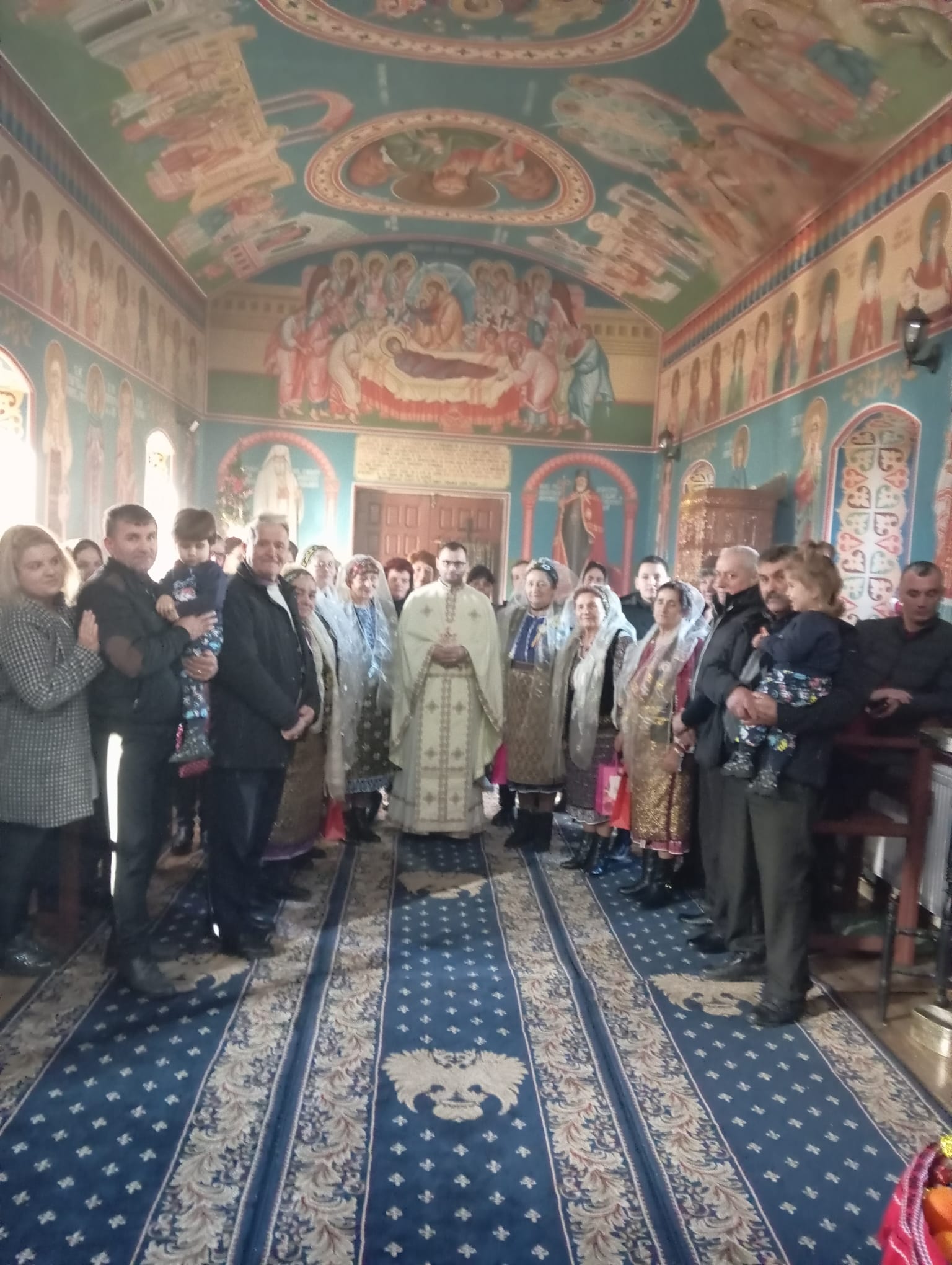 Părintele slujitor Ungureanu Narcis de la parohia Huluba, protoieria Mioveni, a primit colindători care au vestit Nașterea Pruncului Iisus. După cuvântul de mulțumire, colindătorii au primit daruri.