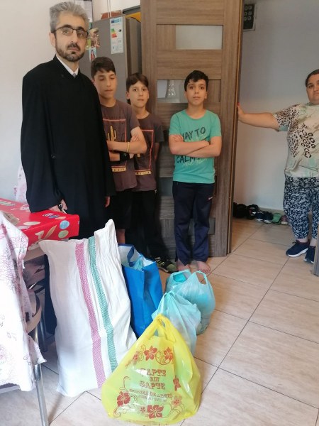 Părintele slujitor Barbu Vasile de la parohia Sfinții Împărați Constantin și Elena, protoieria Curtea de Argeș, a dăruit alimente pentru o familie cu mulți copii.