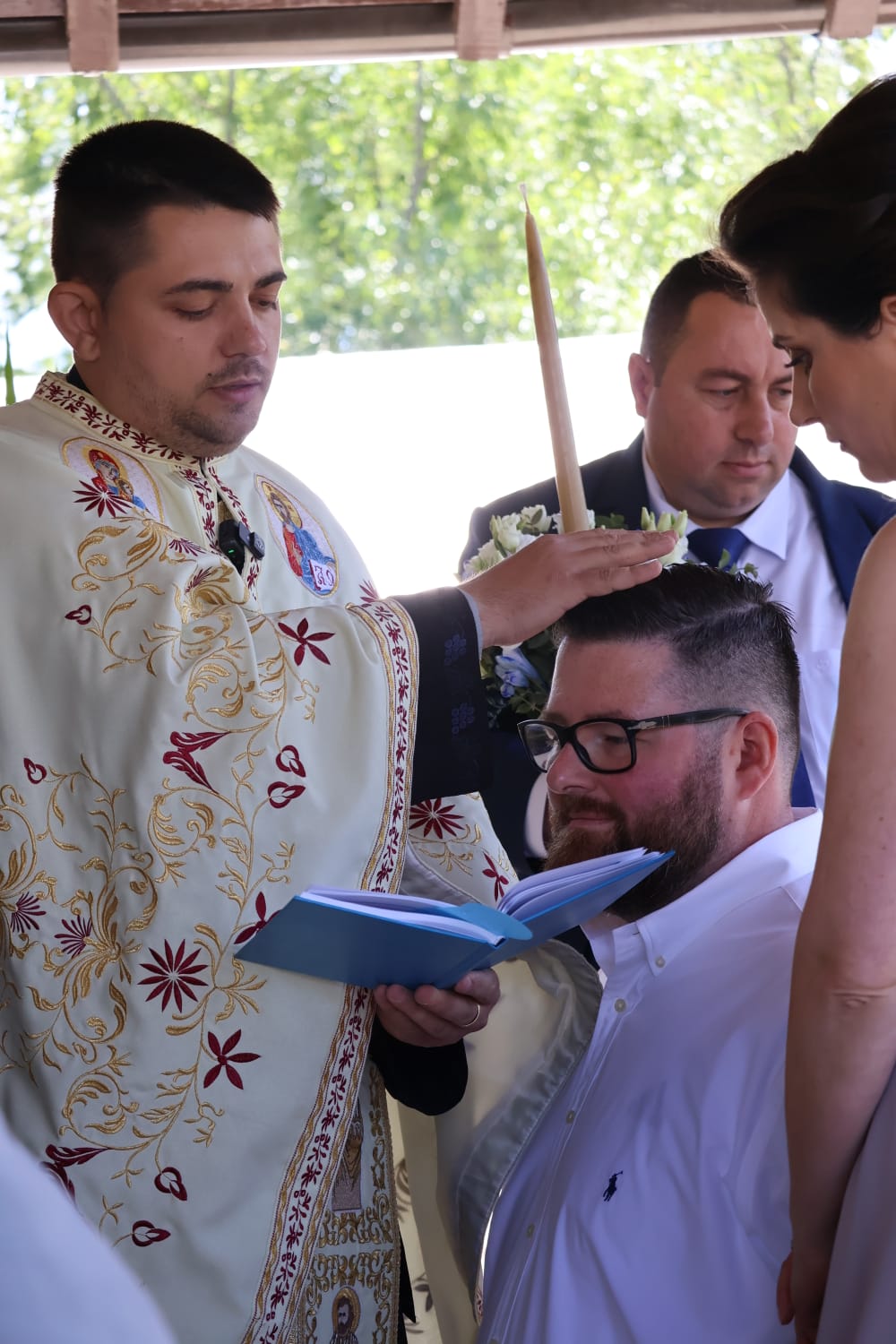 Părintele slujitor Şerban Marius Silviu a efectuat catehizarea domnului Kunze Dominic conform canoanelor Bisericii Ortodoxe Române, acesta mărturisind în scris Învăţătura de Credinţă Ortodoxă, apoi s-a săvârşit Sfânta Taină a Mirungerii.