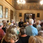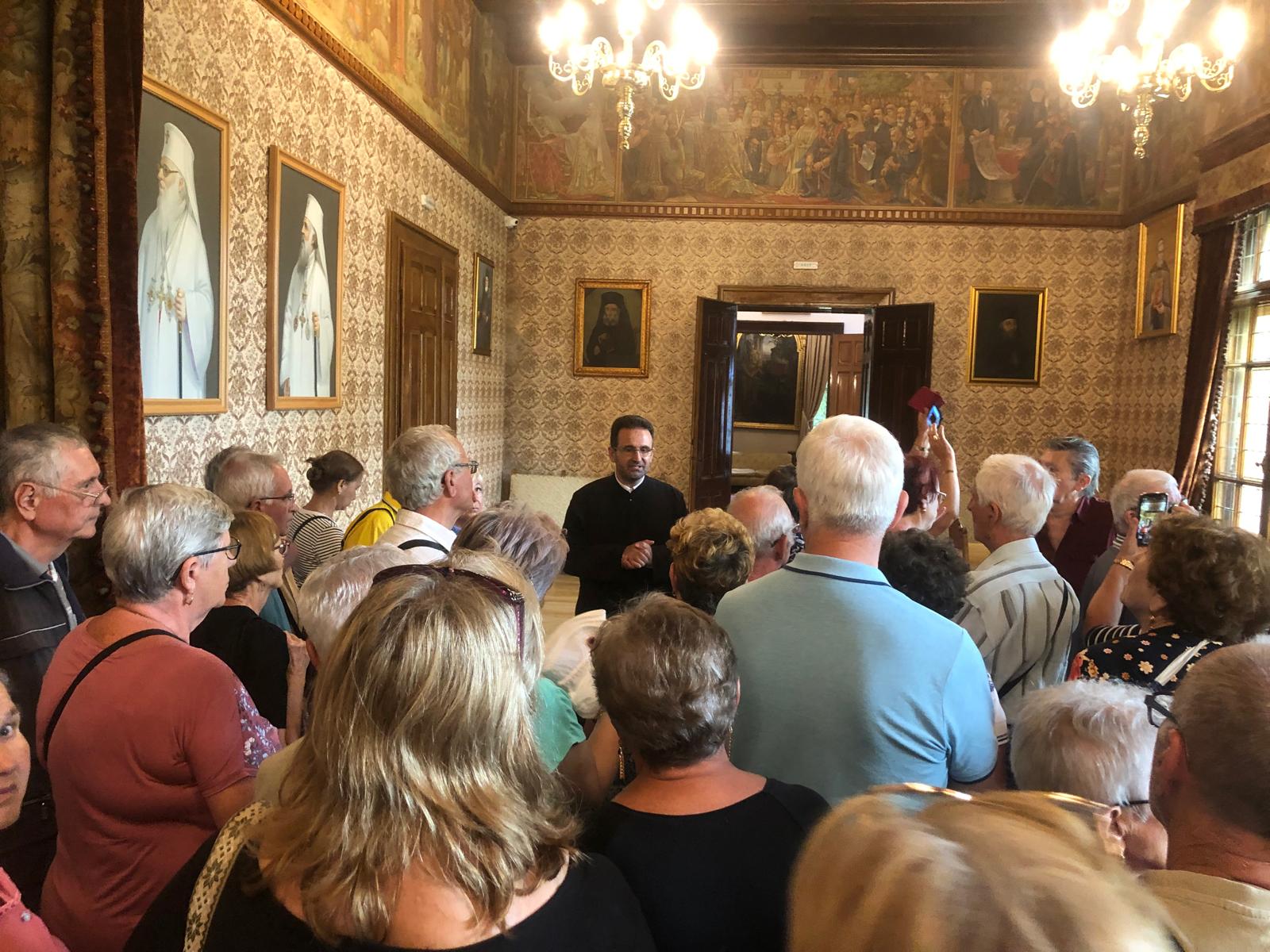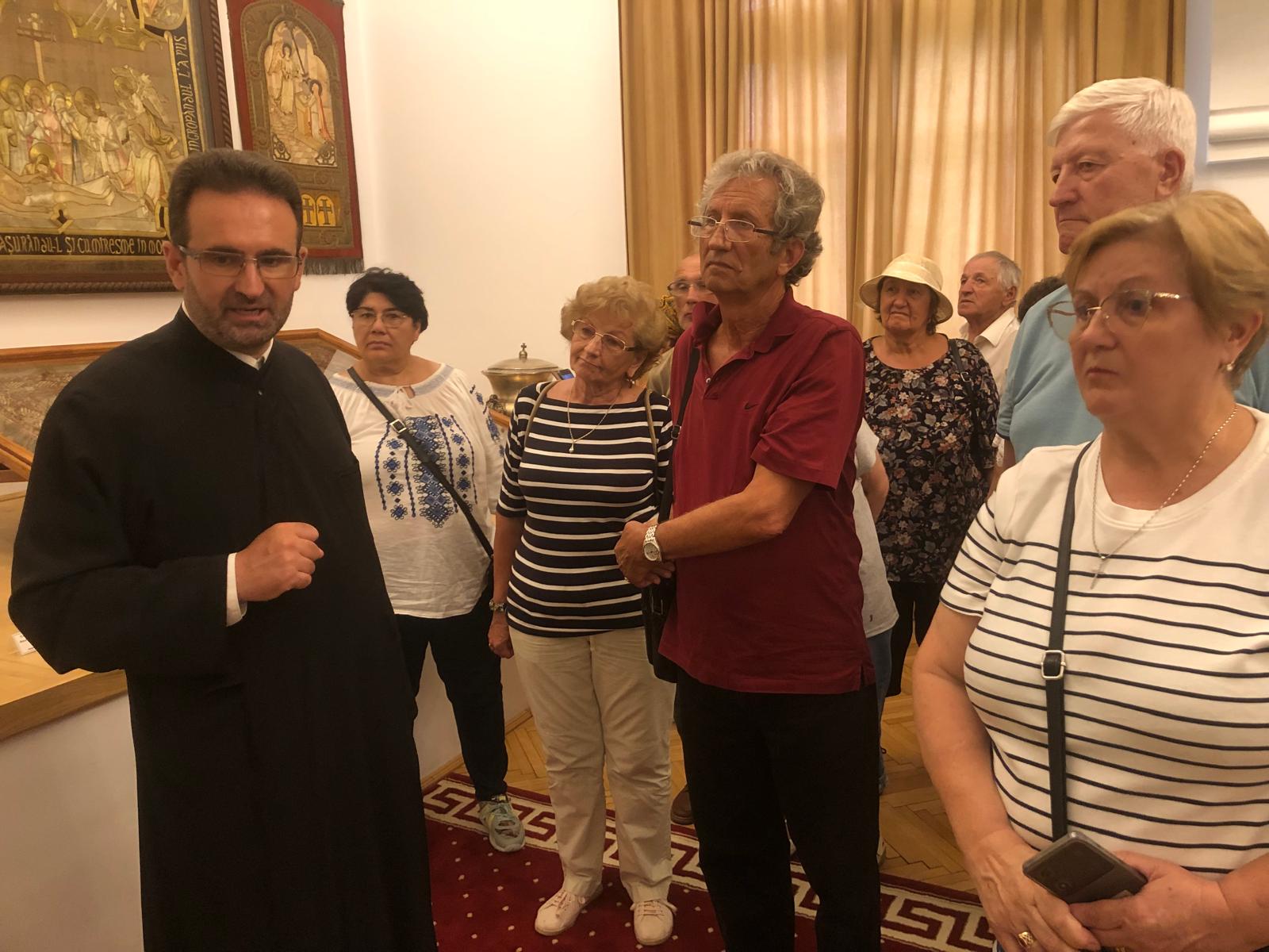 În curtea mânăstirii oaspeții au fost întâmpinați de părintele Adrian Enache, care le-a oferit informațiile despre locul voievodal în care se aflau.