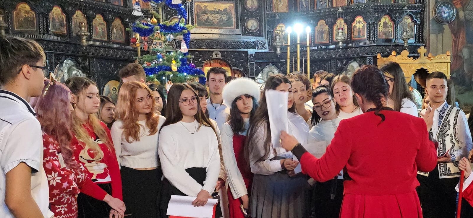 Preoții slujitori au mulțumit elevilor de la Liceul Dinu Lipatti care au încântat pe cei prezenți, și au oferit daruri colindătorilor.