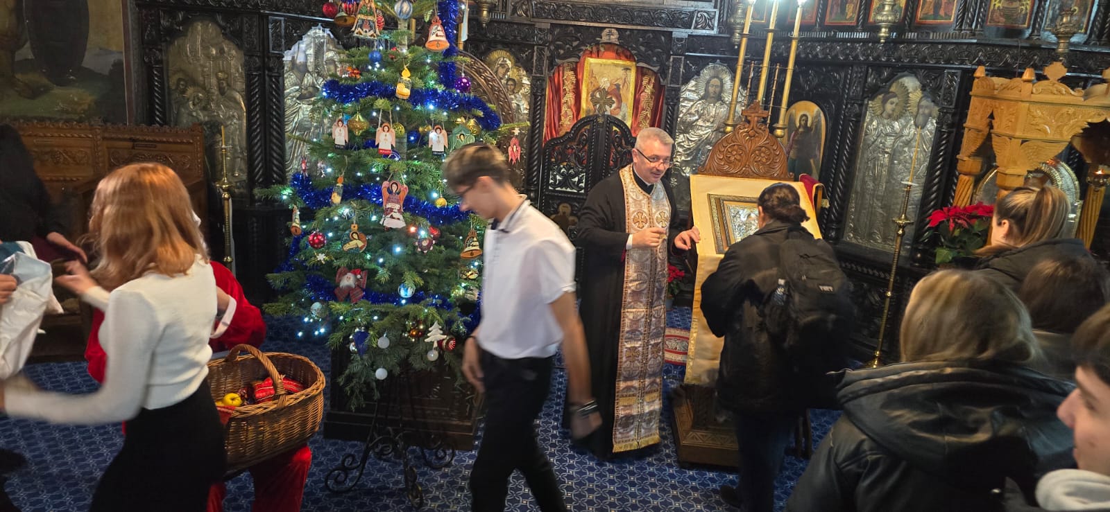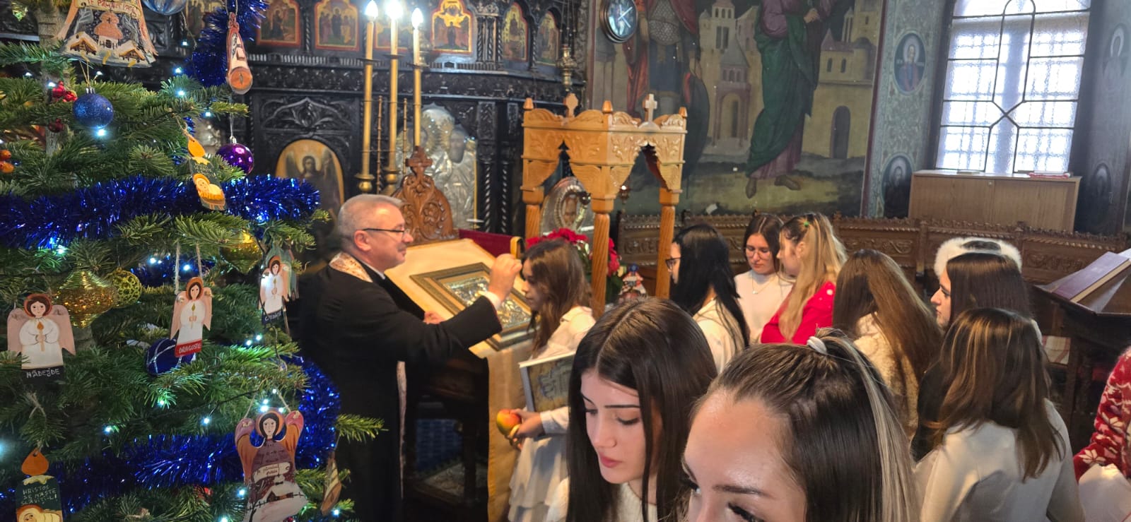 Preoții slujitori au mulțumit elevilor de la Liceul Dinu Lipatti care au încântat pe cei prezenți, și au oferit daruri colindătorilor.