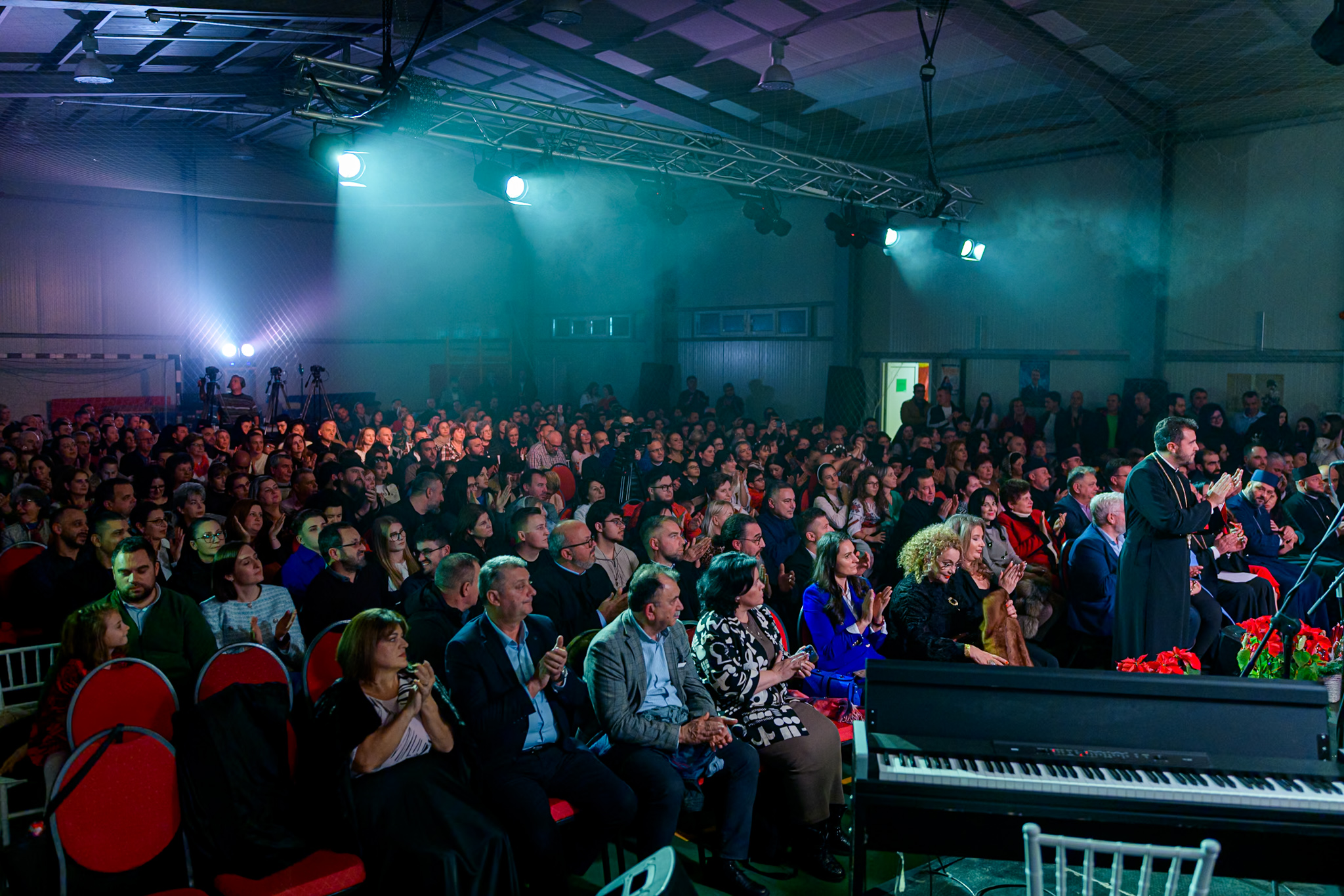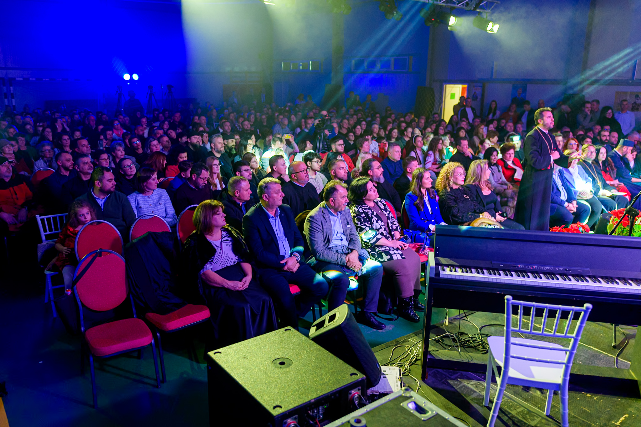 Cuvântul de început i-a aparținut părintelui Florin Păcioianu care a mulțumit celor care au ales să vină la această întâlnire cu muzica, și a pus la inima celor prezenți îndemnul de a aduce o bucurie de Crăciun beneficiarilor celor două centre sociale din comuna Domnești, precum și unei fetițe din comuna Micești, care are nevoie de un ajutor financiar, necesar unei intervenții în străinătate.