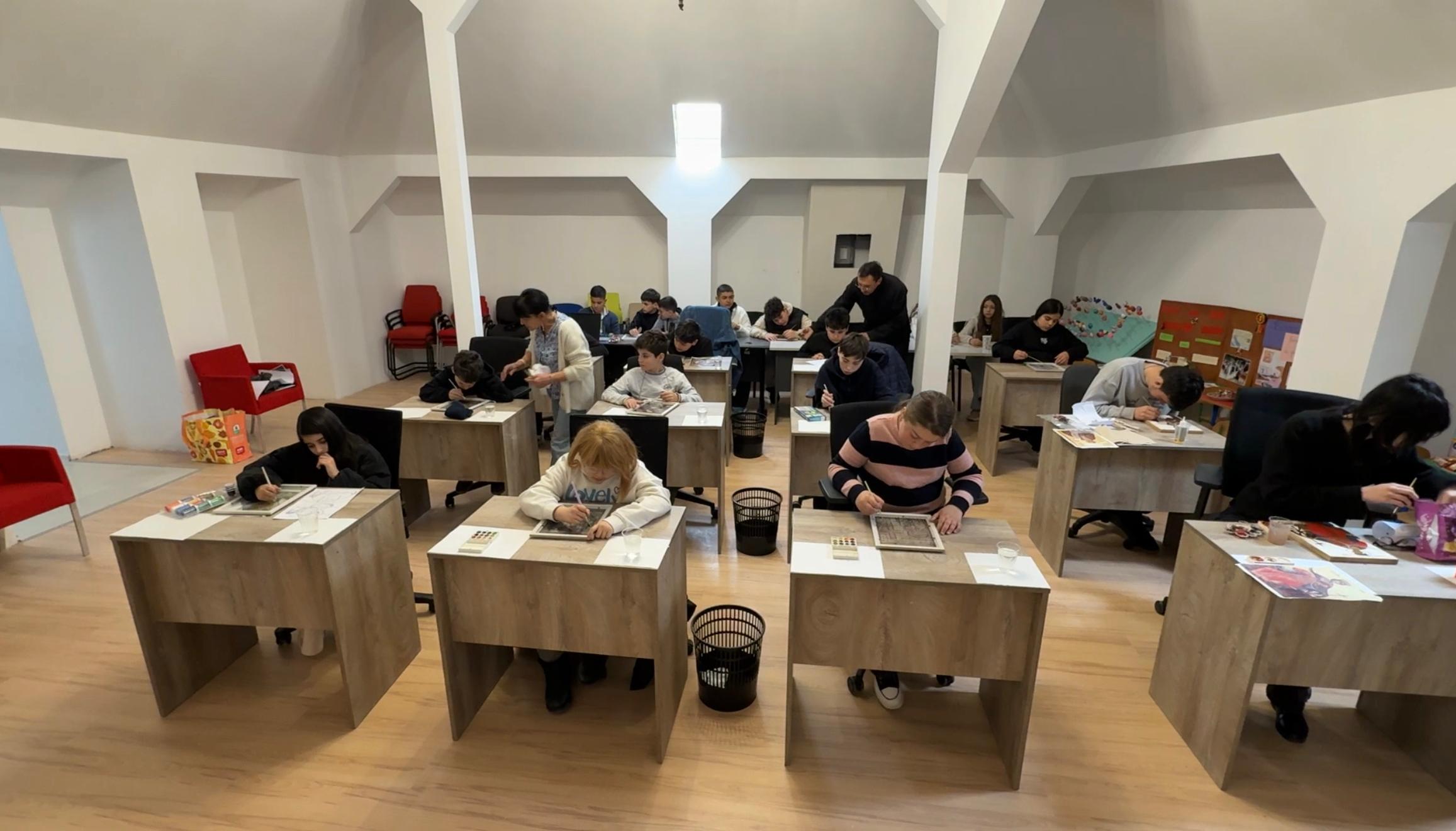 Elevi de la Colegiul Național „Vlaicu Vodă” din municipiul Curtea de Argeș, au participat la Centrul socio-cultural al parohiei Bătușari la un atelier de pictură.