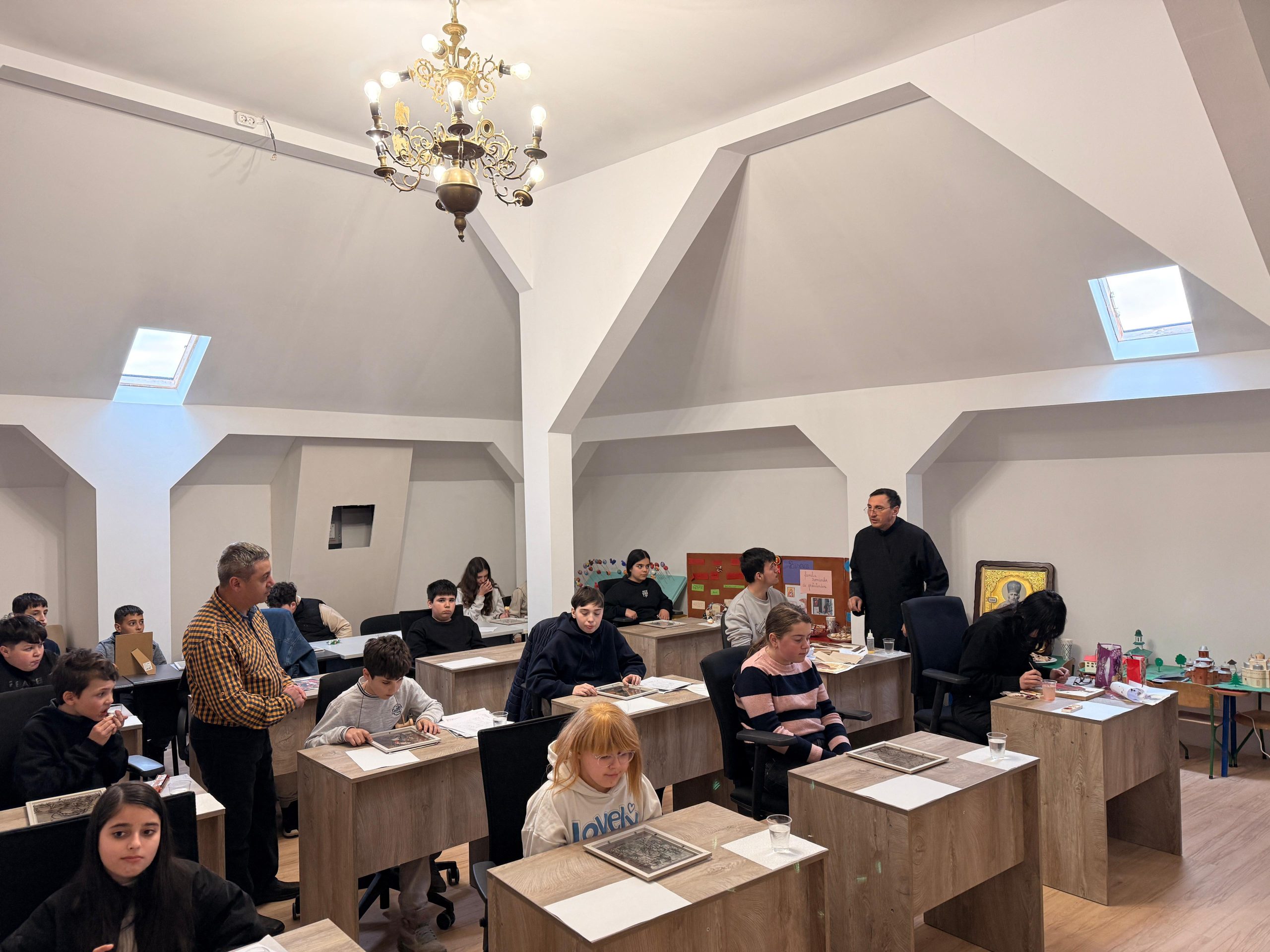 Părintele slujitor Ungurenuș Florentin a rostit un cuvânt catehetic, după care elevii au pictat chipuri de sfinți, lucrări care vor face parte din portofoliul parohiei la Concursul Național organizat de Patriarhia Română.