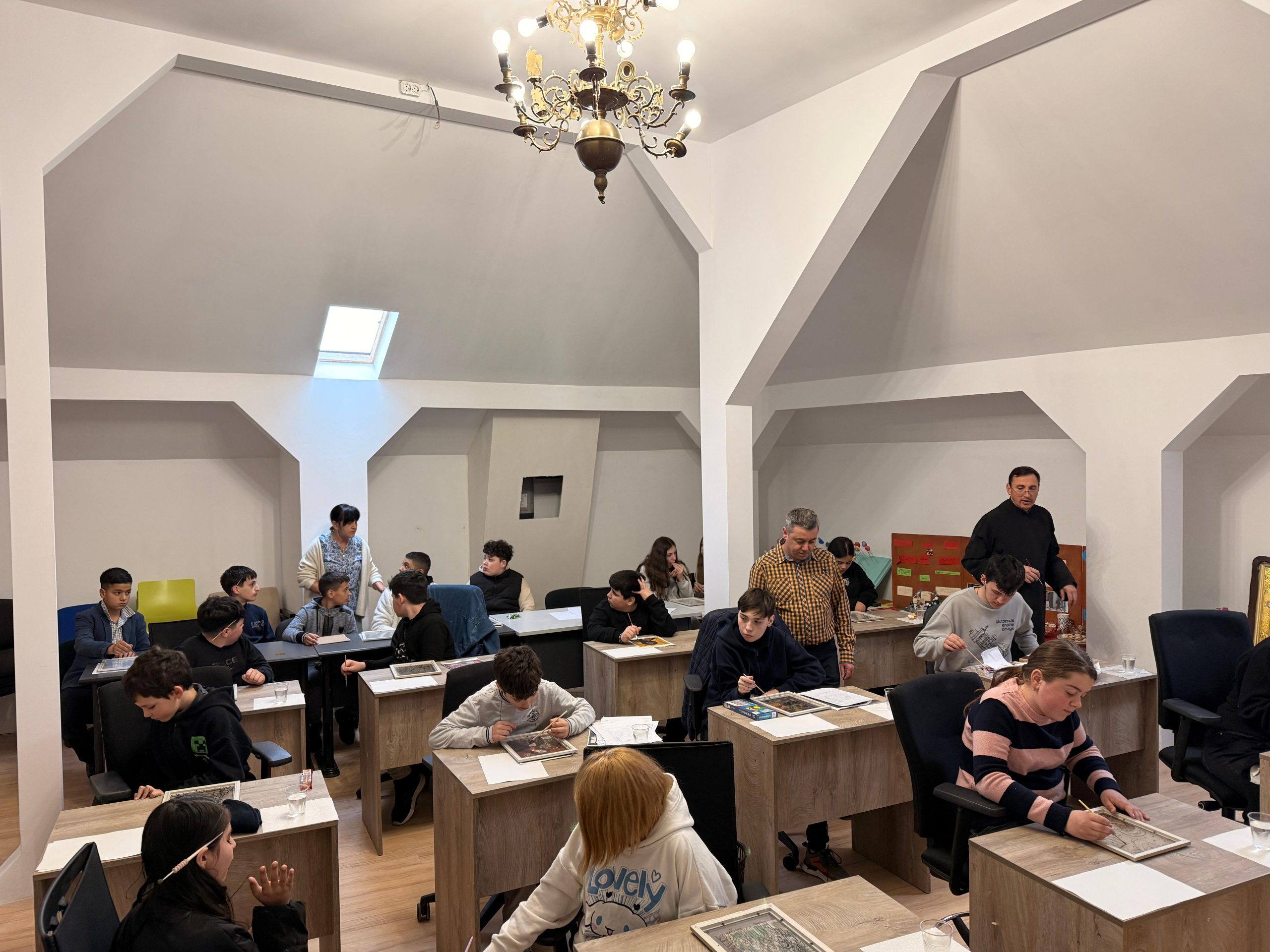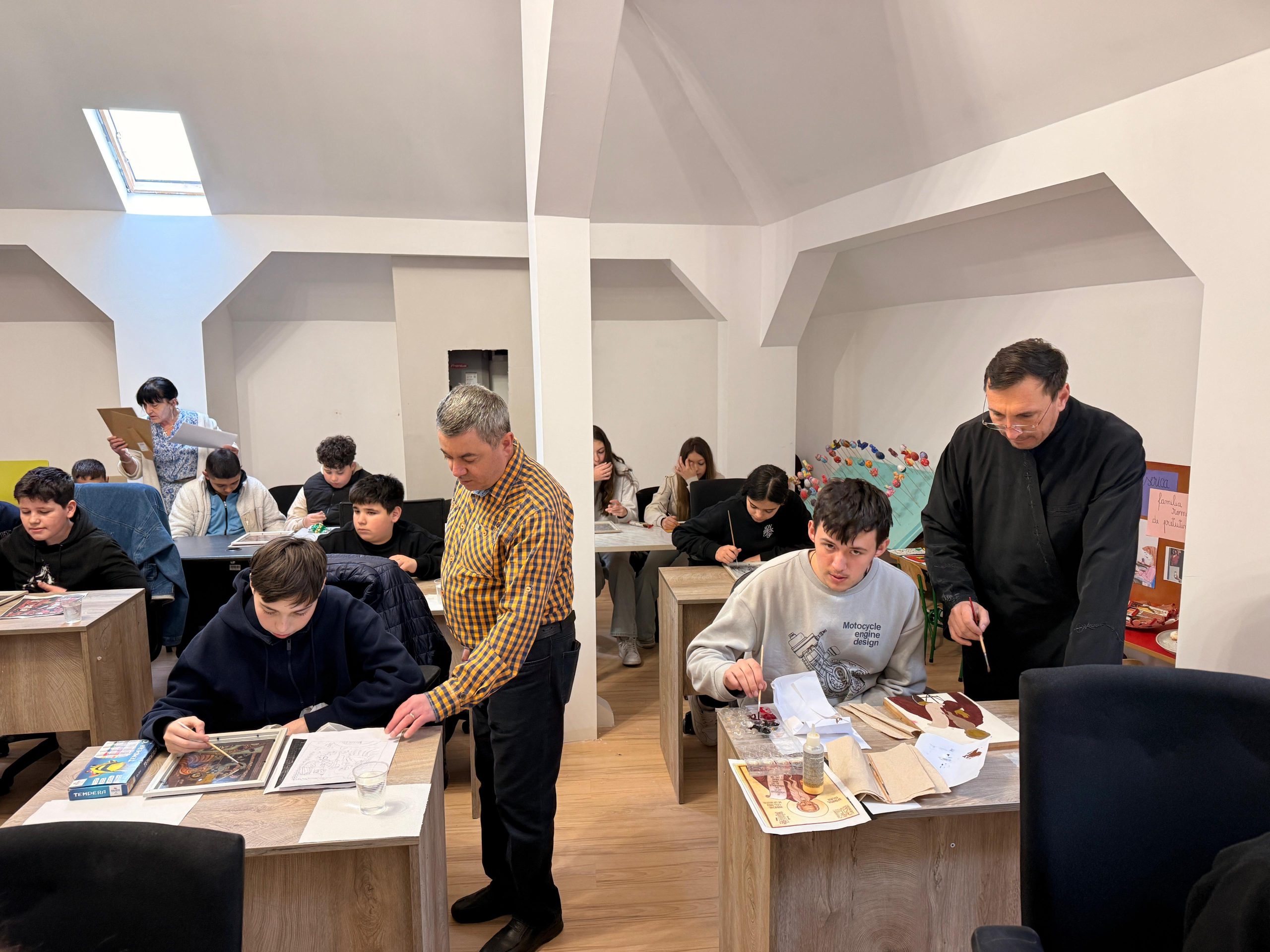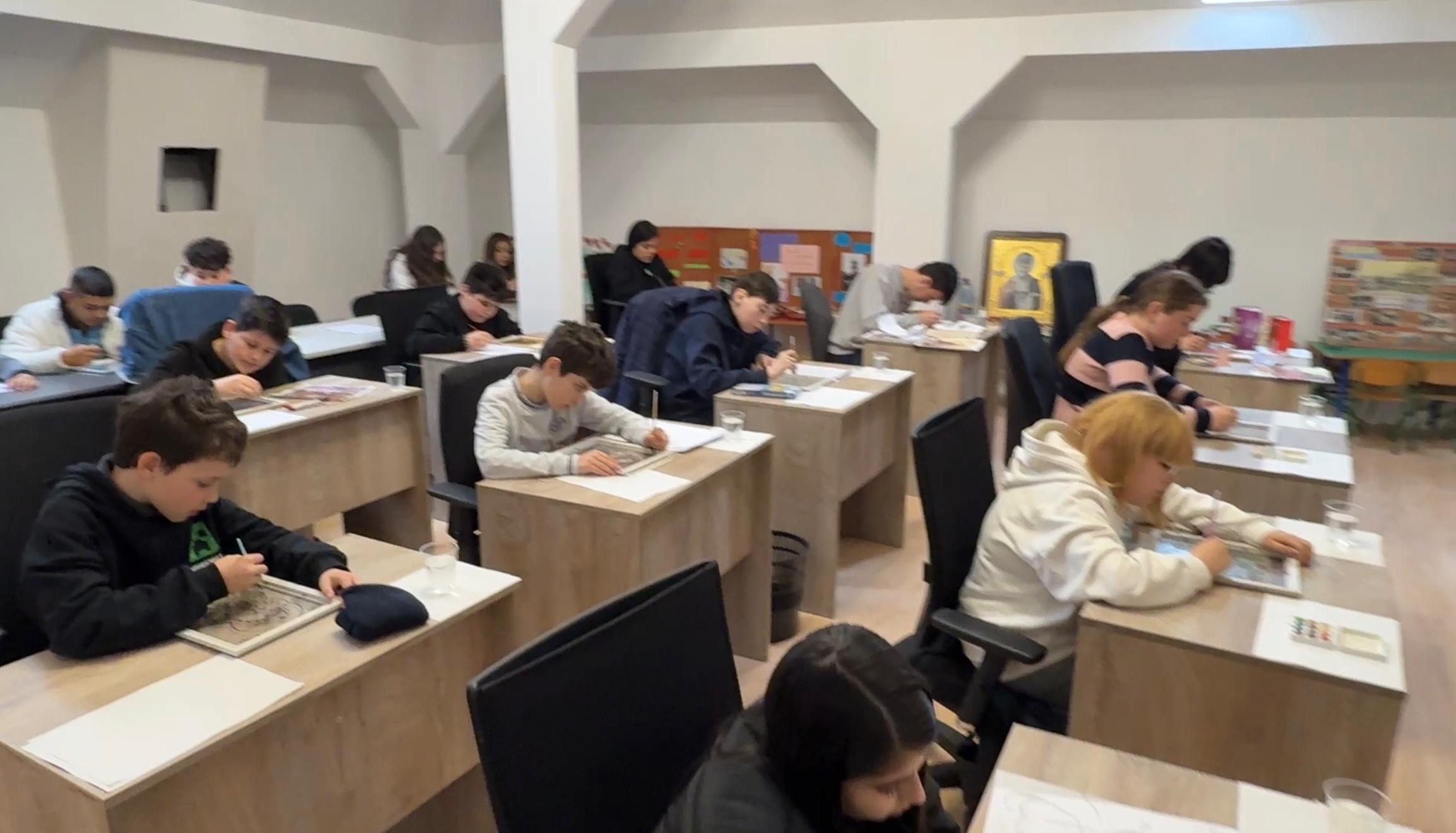 Elevi de la Colegiul Național „Vlaicu Vodă” din municipiul Curtea de Argeș, au participat la Centrul socio-cultural al parohiei Bătușari la un atelier de pictură.