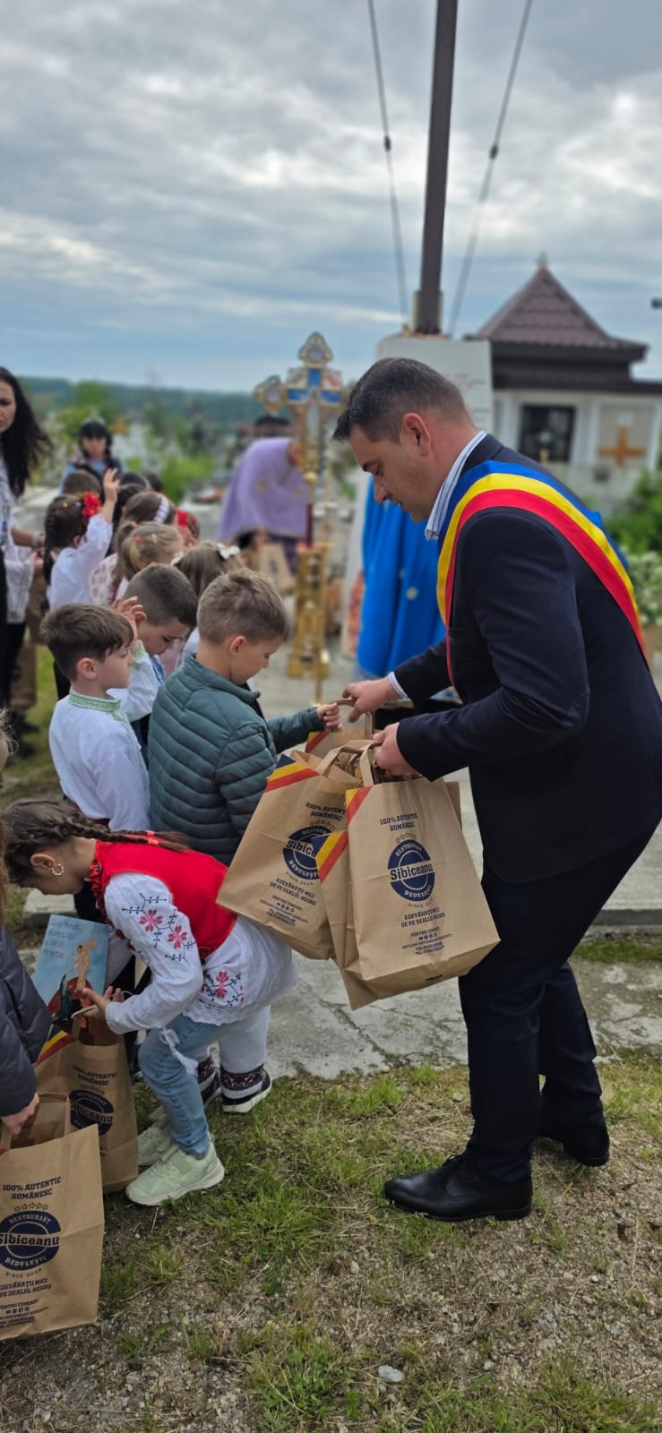 40 de copii au primit pachete cu dulciuri, fructe și cărți, în semn de dragoste pentru implicarea lor. Prin acest gest s-a dorit nu doar răsplătirea efortului lor, ci și cultivarea unui spirit de comuniune și recunoștință față de cei care au luptat și s-au jertfit pentru țară. Se estimează că în timpul Primului Război Mondial, în România au murit peste 1.000.000 de militari și civili. Atunci, întreaga populație a fost implicată în strângerea rămășițelor acestor eroi, care au fost înhumați în cimitire, dar și în curțile bisericilor.
