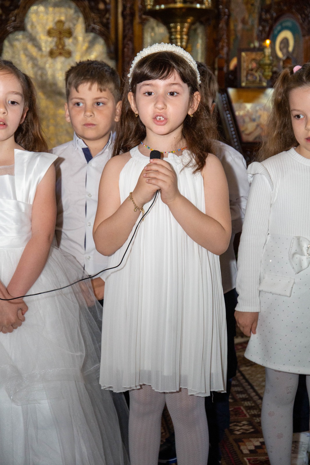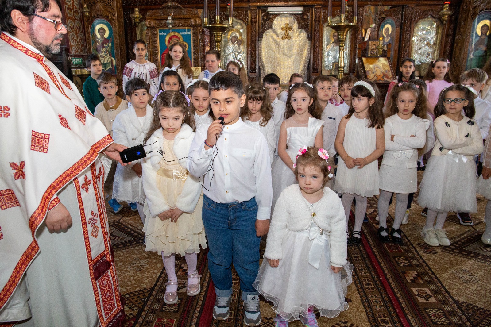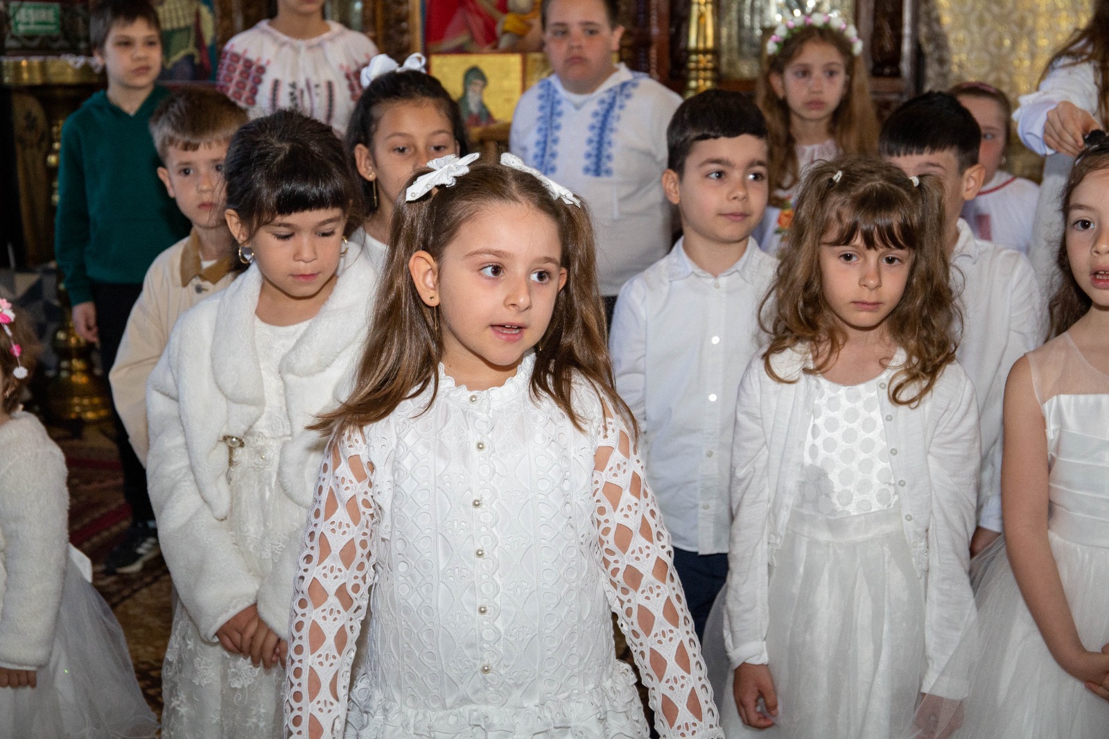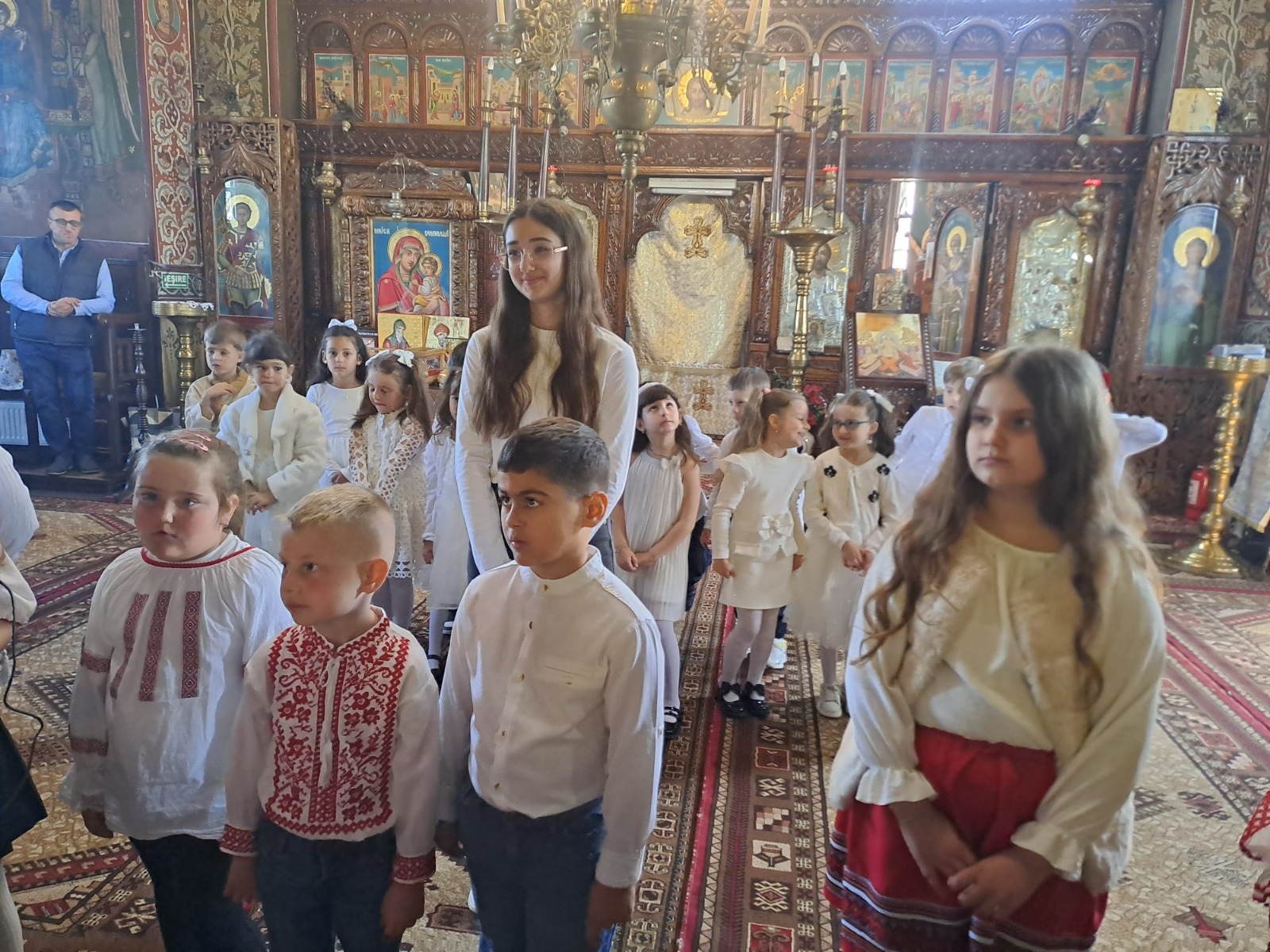 La sfârșit, preotul slujitor le-a vorbit copiilor despre însemnătatea Praznicului Învierii Domnului și a oferit din partea parohiei ouă roșii și pască.