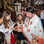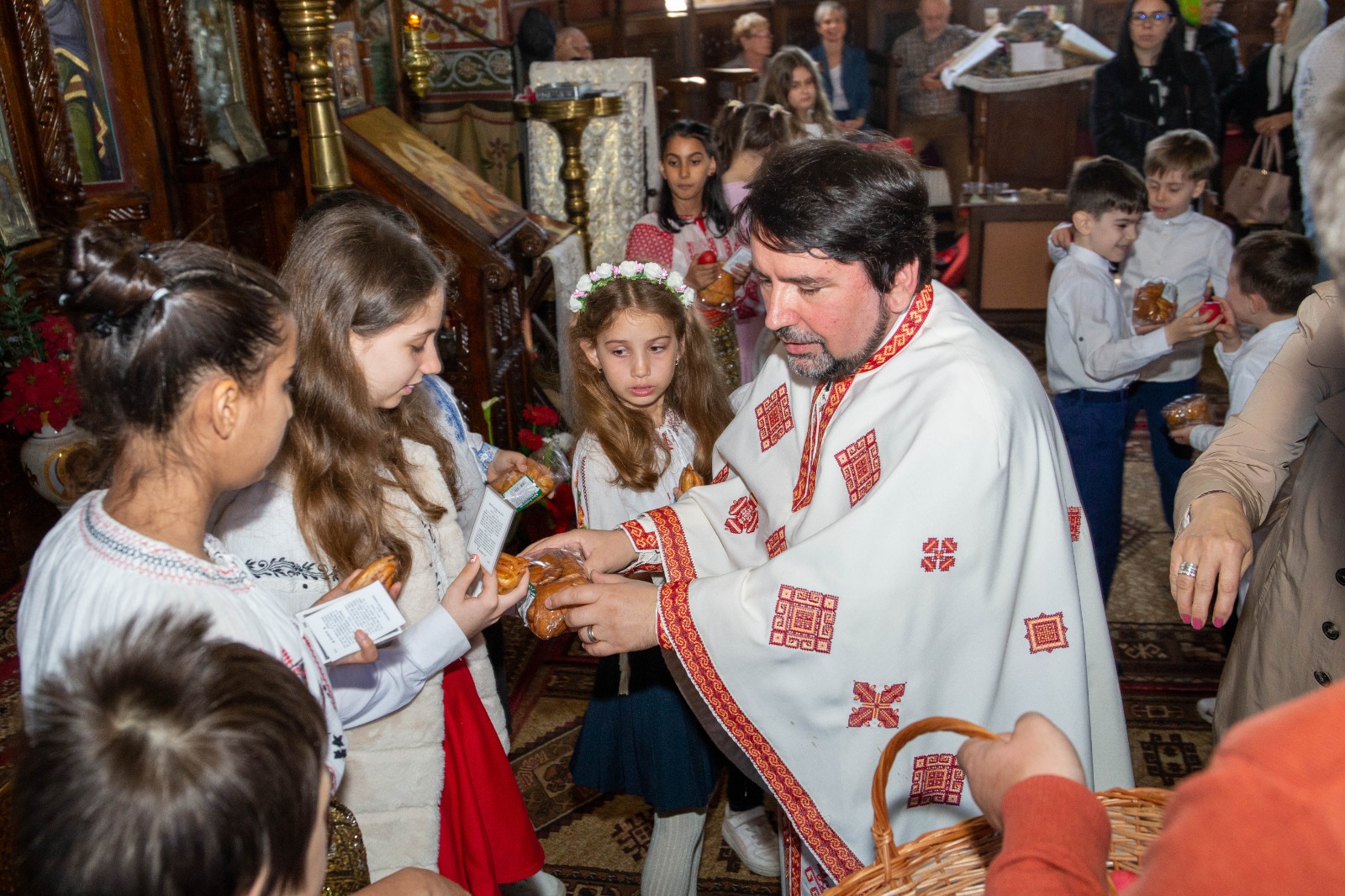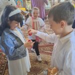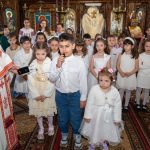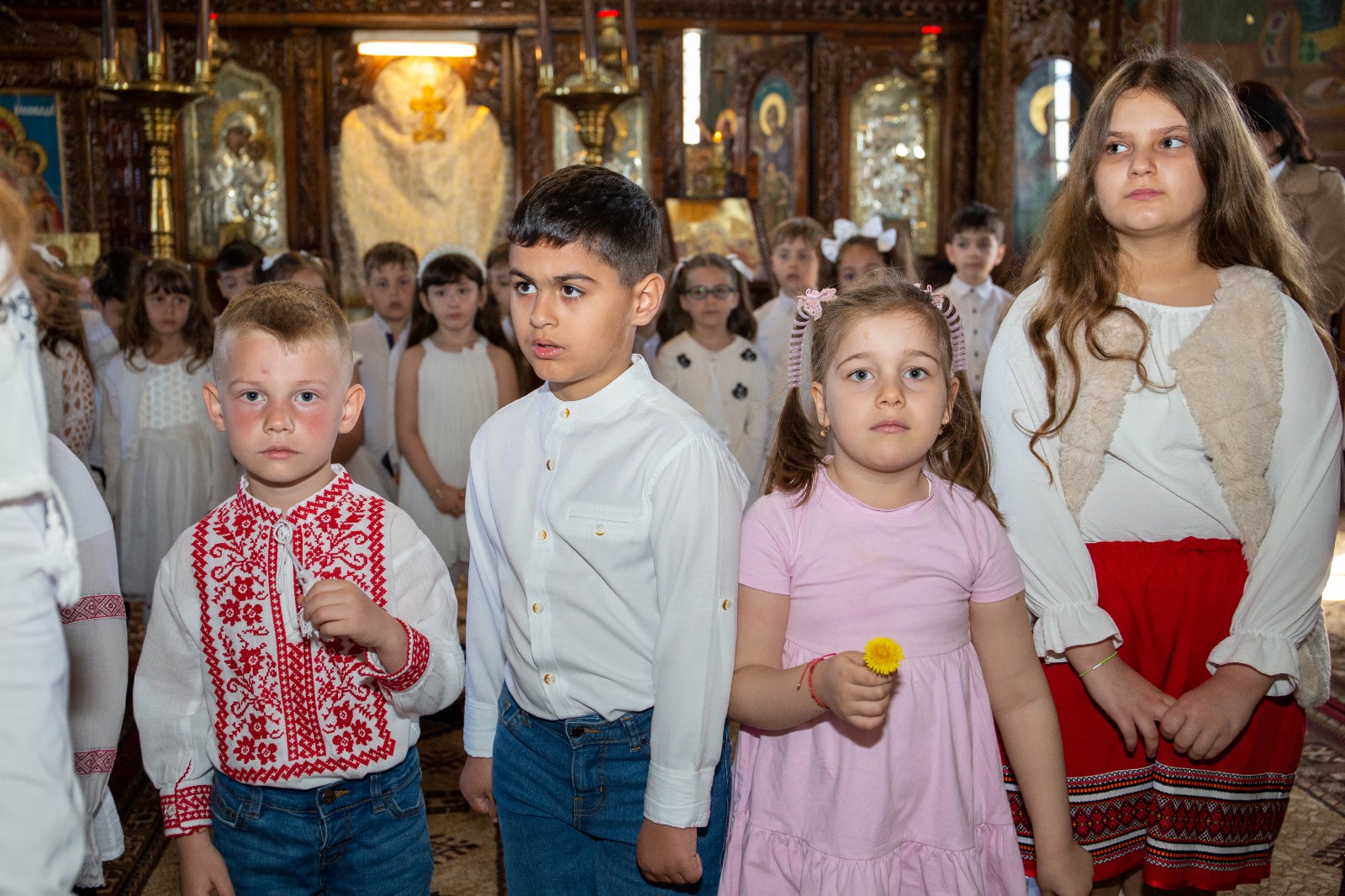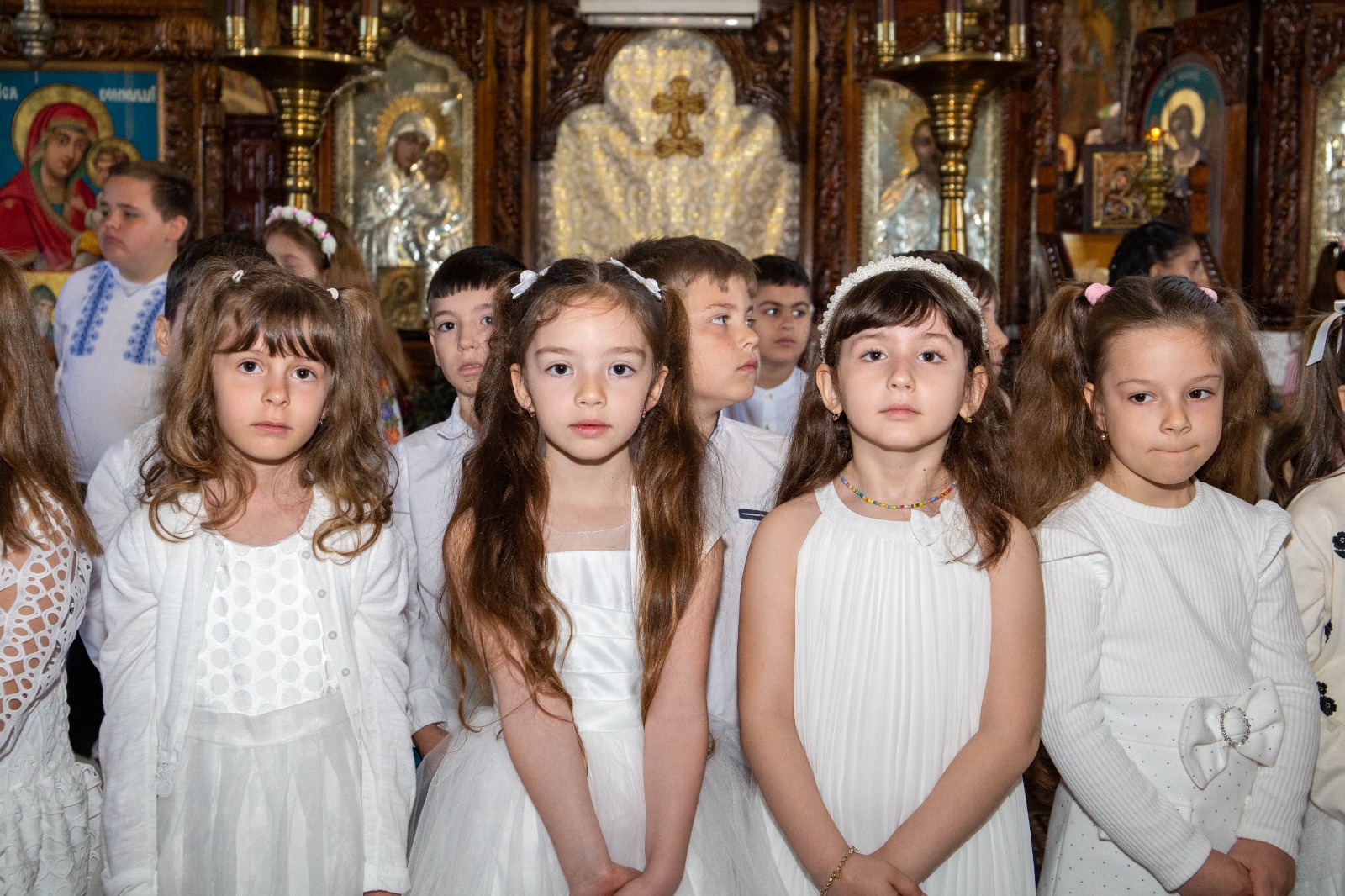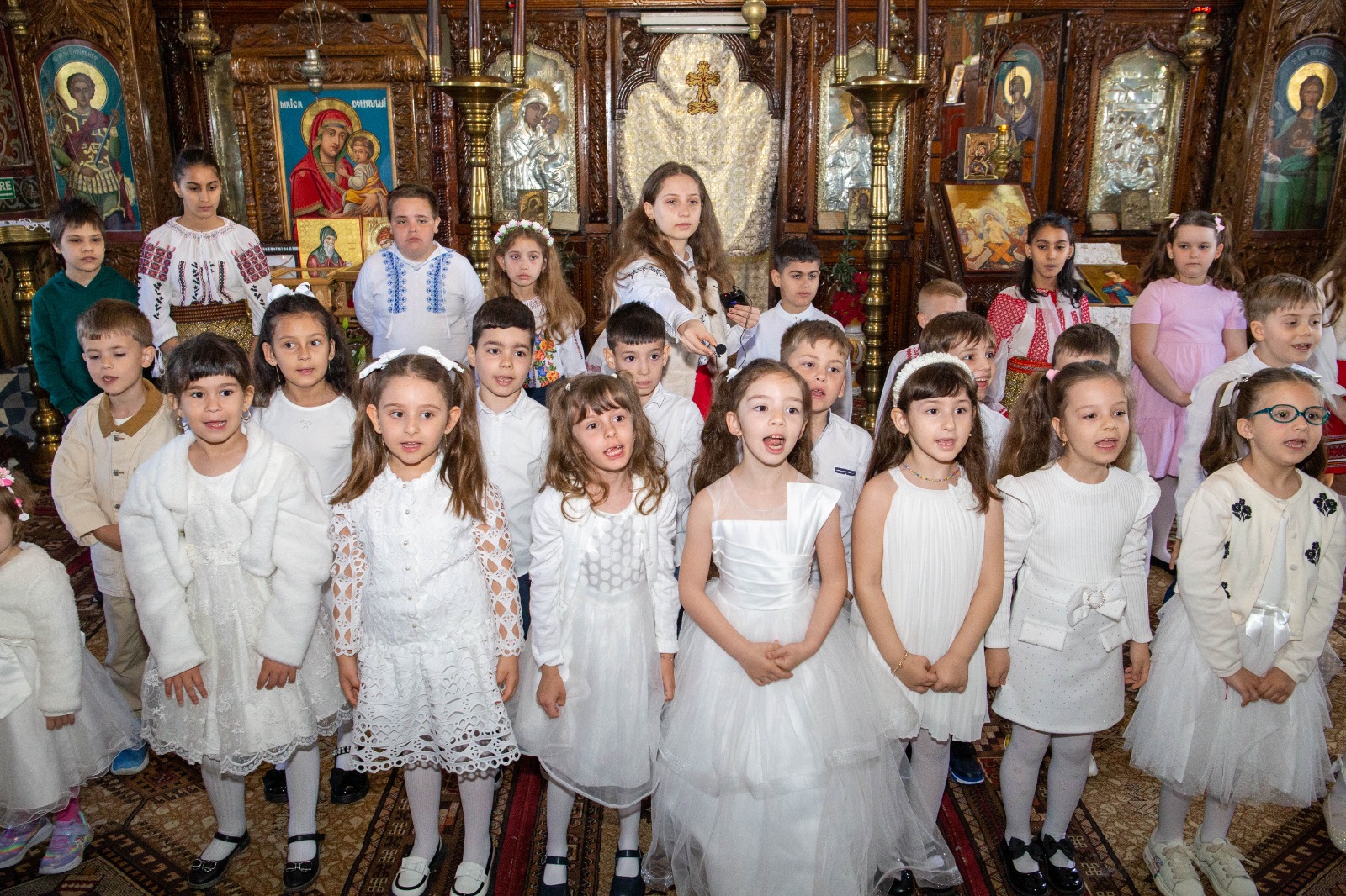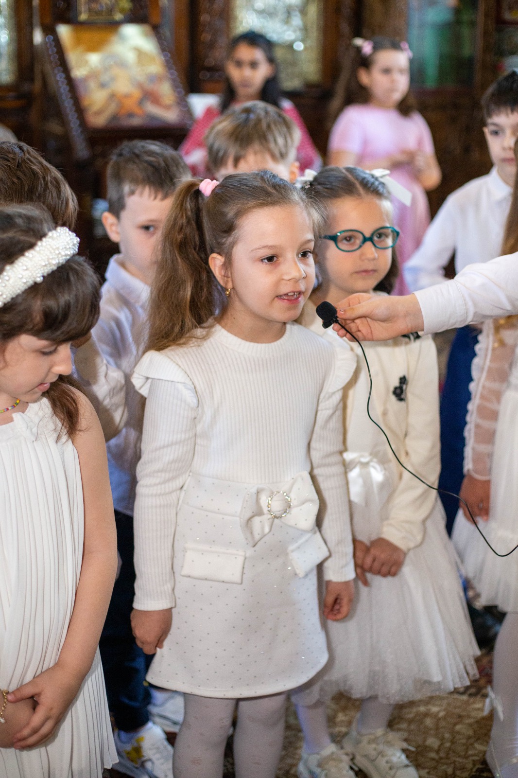 La sfârșit, preotul slujitor le-a vorbit copiilor despre însemnătatea Praznicului Învierii Domnului și a oferit din partea parohiei ouă roșii și pască.