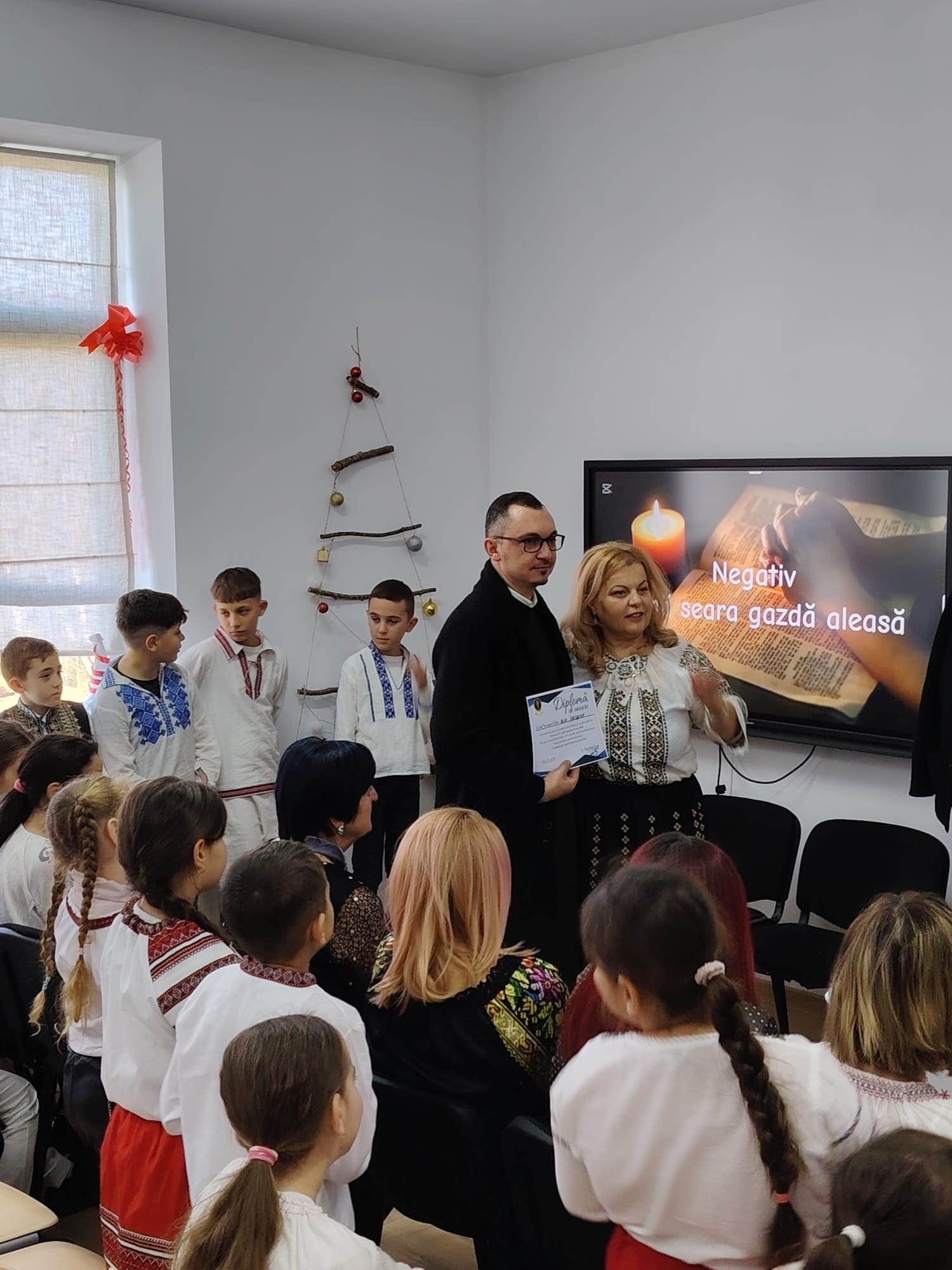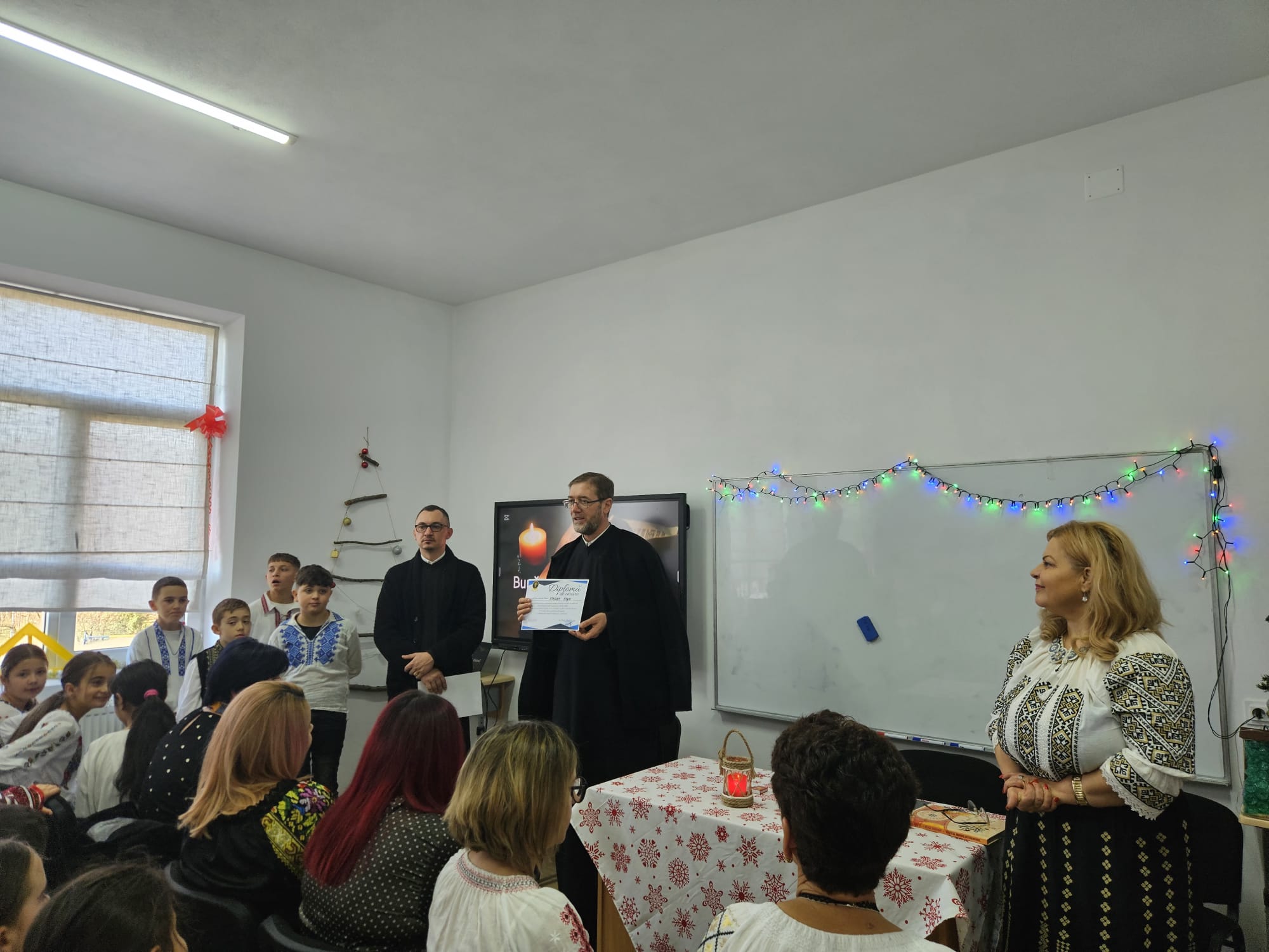 La invitația doamnei director Maria Badea și a cadrelor didactice ale școlii, în mijlocul elevilor au sosit preoții Stan Stelian, Cătănea Cosmin și Iordache Alin Daniel, care au susținut o cateheză despre Nașterea Pruncului Iisus, vorbind și despre frumoasele tradiții care se păstrează de aceste sărbători.