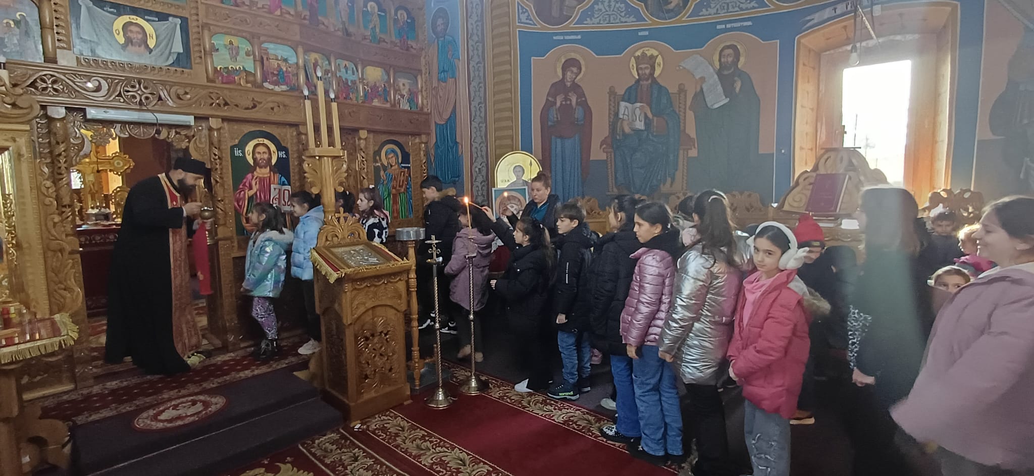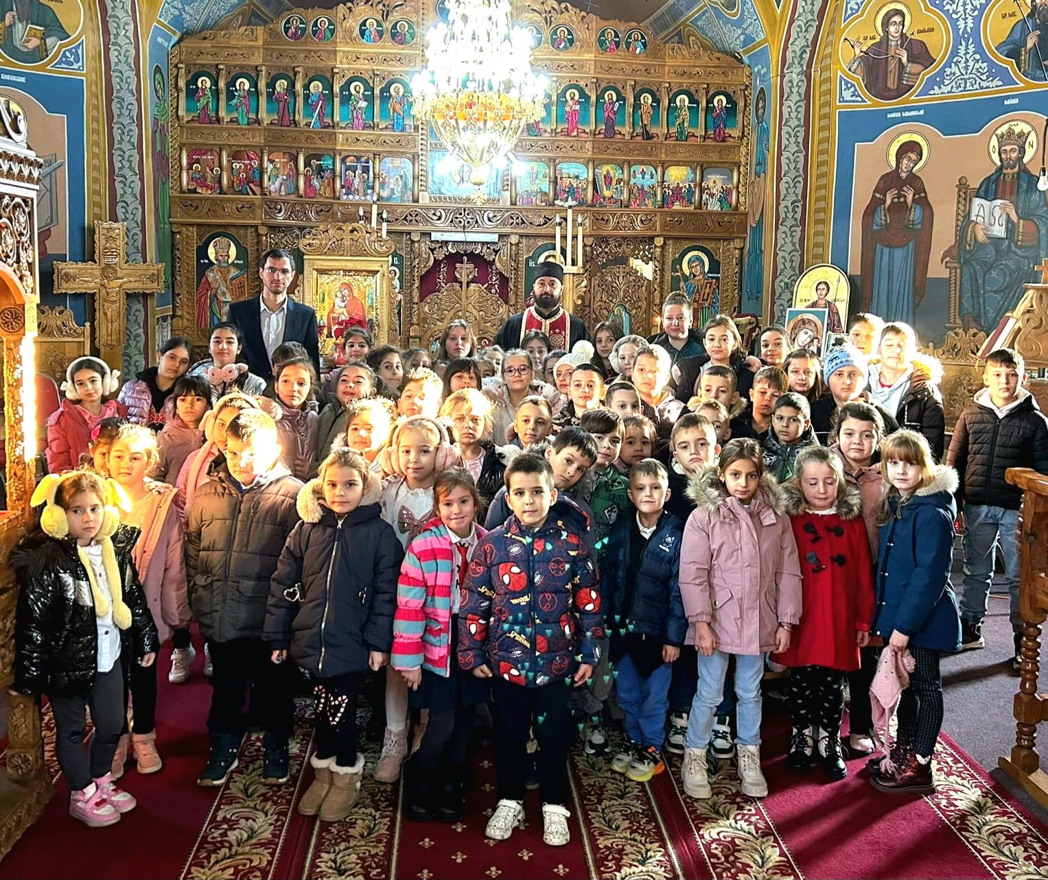 Această învățătură a fost transmisă elevilor în cadrul Sfintei Liturghii, unde au avut ocazia să se împărtășească cu Trupul și Sângele Domnului, întărindu-și astfel legătura cu Hristos și cu Biserica. Prin cuvântul de învățătură rostit de părintele paroh, copiii au fost îndemnați să trăiască Crăciunul nu doar ca o sărbătoare exterioară, ci ca o renaștere interioară, ca o chemare la iubire, iertare și lumină.