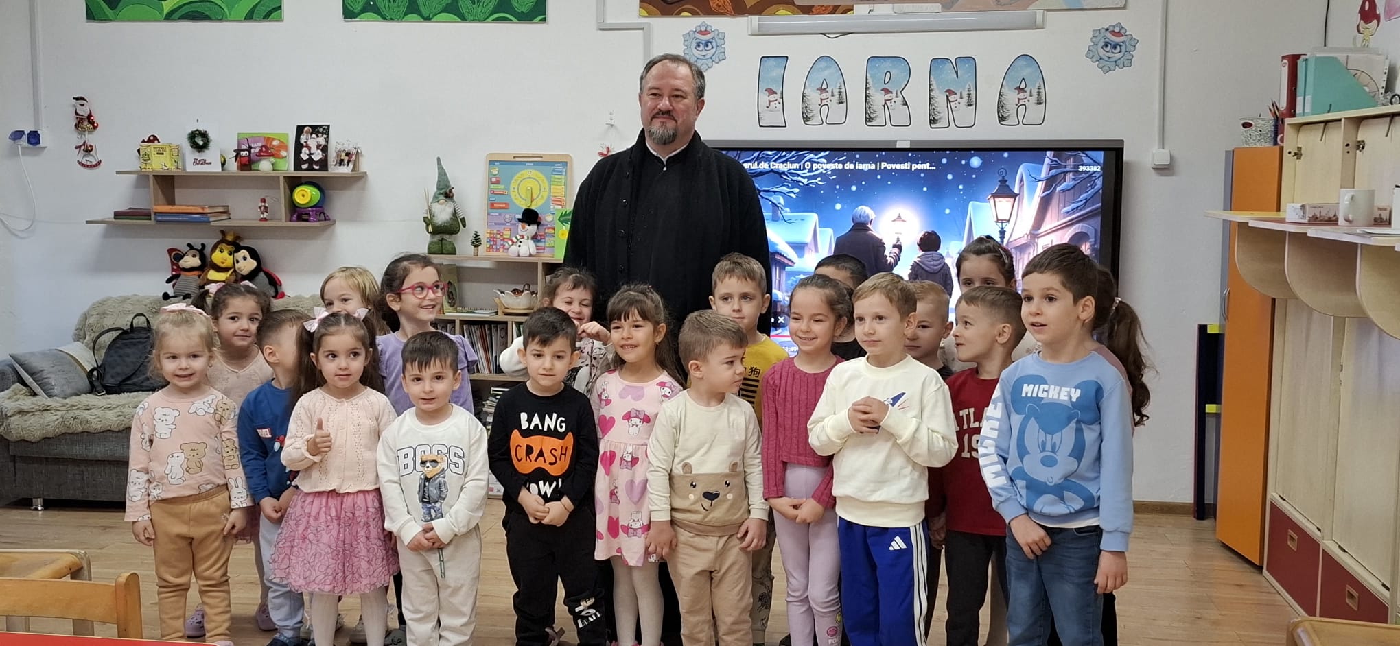 Părintele slujitor Marcu Marin a fost prezent în mijlocul copiilor de la Grădinița Tic Pitic din Mioveni, cărora le-a vorbit despre frumoasele tradiții legate de nașterea Pruncului Sfânt, iar în final le-a oferit dulciuri.