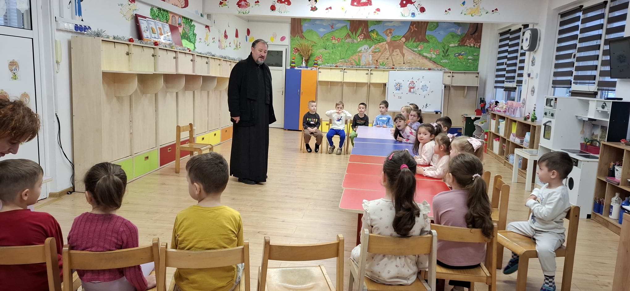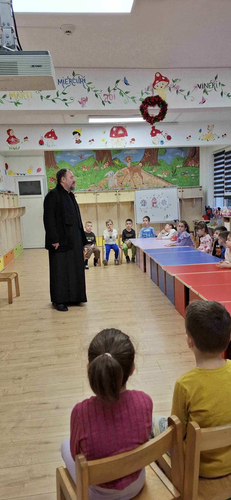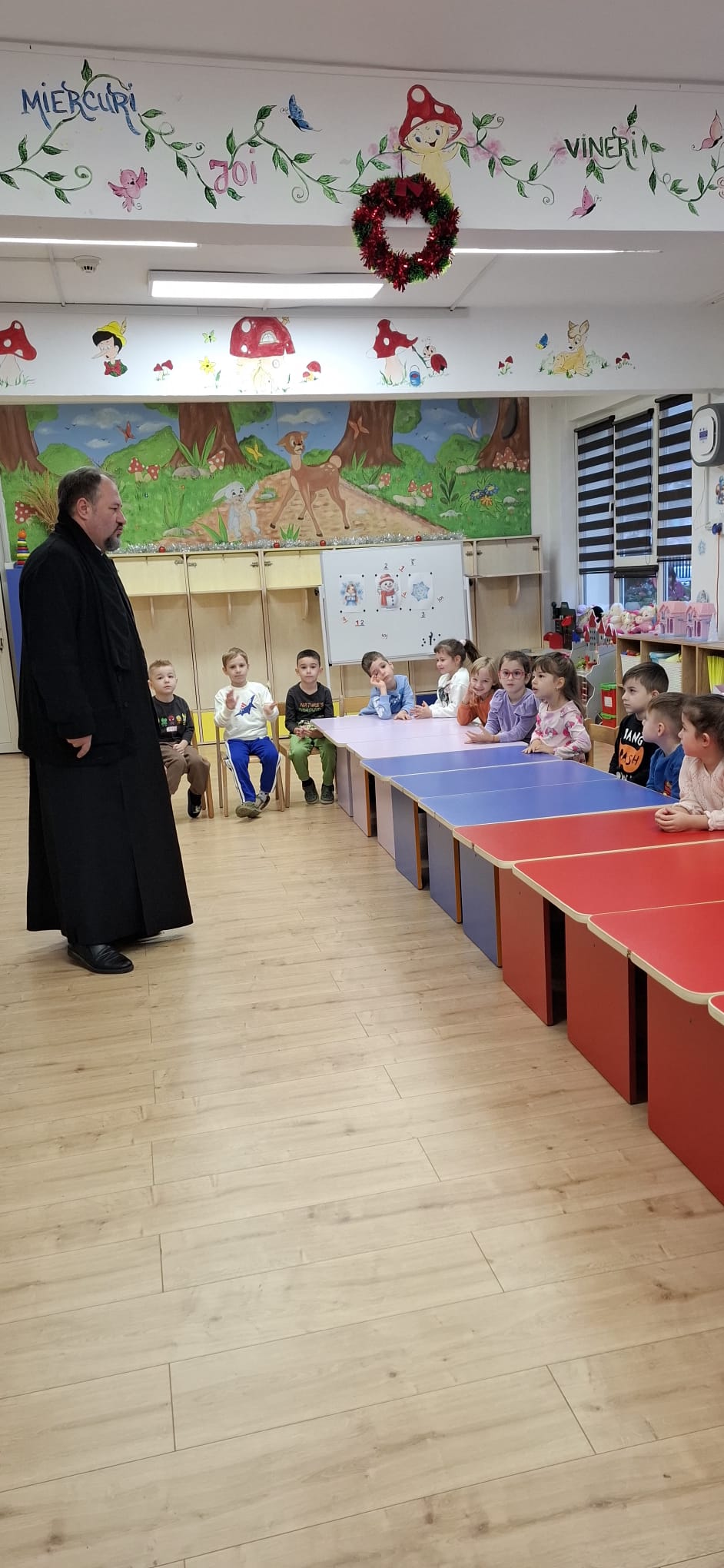 Părintele slujitor Marcu Marin a fost prezent în mijlocul copiilor de la Grădinița Tic Pitic din Mioveni, cărora le-a vorbit despre frumoasele tradiții legate de nașterea Pruncului Sfânt, iar în final le-a oferit dulciuri.