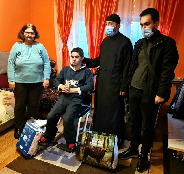 Cu purtarea de grijă a Înaltpreasfințitului Părinte Calinic Argeșeanul, Preotul Ghețea Constantin, de la parohia Frătici – Vârsești, protoieria Pitești, sprijinit de psih. prof. univ. dr. Andreea Bădulescu și de psih. Rafael Vintilă, a oferit unui tânăr de 24 ani cu dizabilităţi locomotorii din orașul Topoloveni, un cărucior ortopedic cu vas de toaletă, scutece adult confort tip chilot, cremă-balsam pentru escare și plata unor ședințe de recuperare  balneofiziokinetoterapie specială pentru a-i uşura viaţa de zi cu zi.