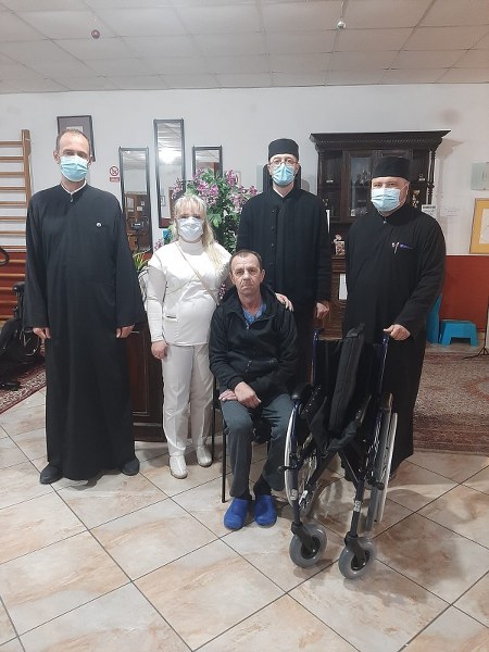 Preoții slujitori Popescu Ion și Stan Stelian de la parohia Priboieni de Jos și Ciobanu Ion de la parohia Beleți, protoieria Topoloveni, au donat un cărucior pentru un bolnav, care se află într-un azil.