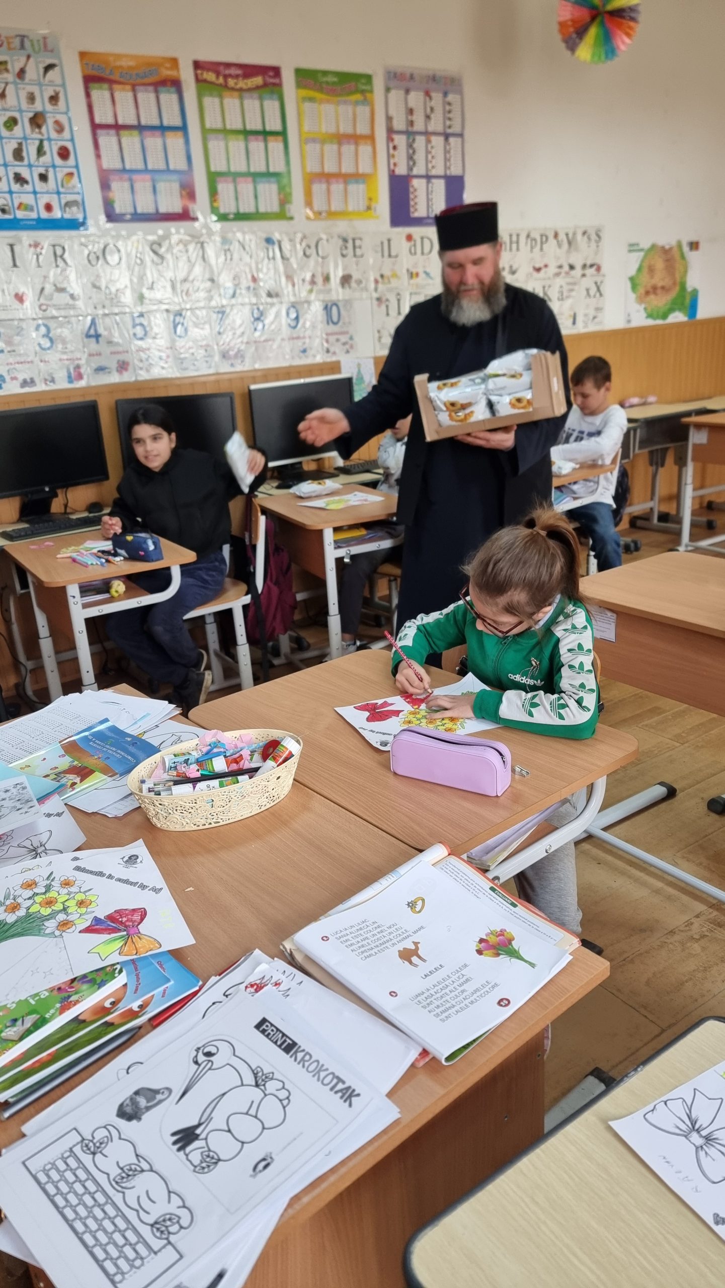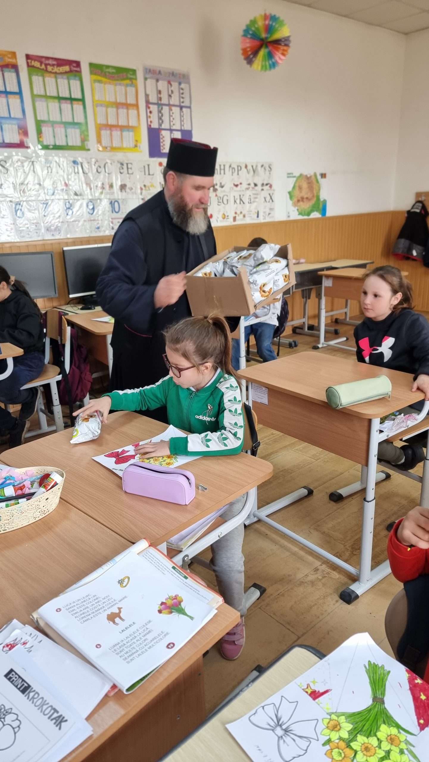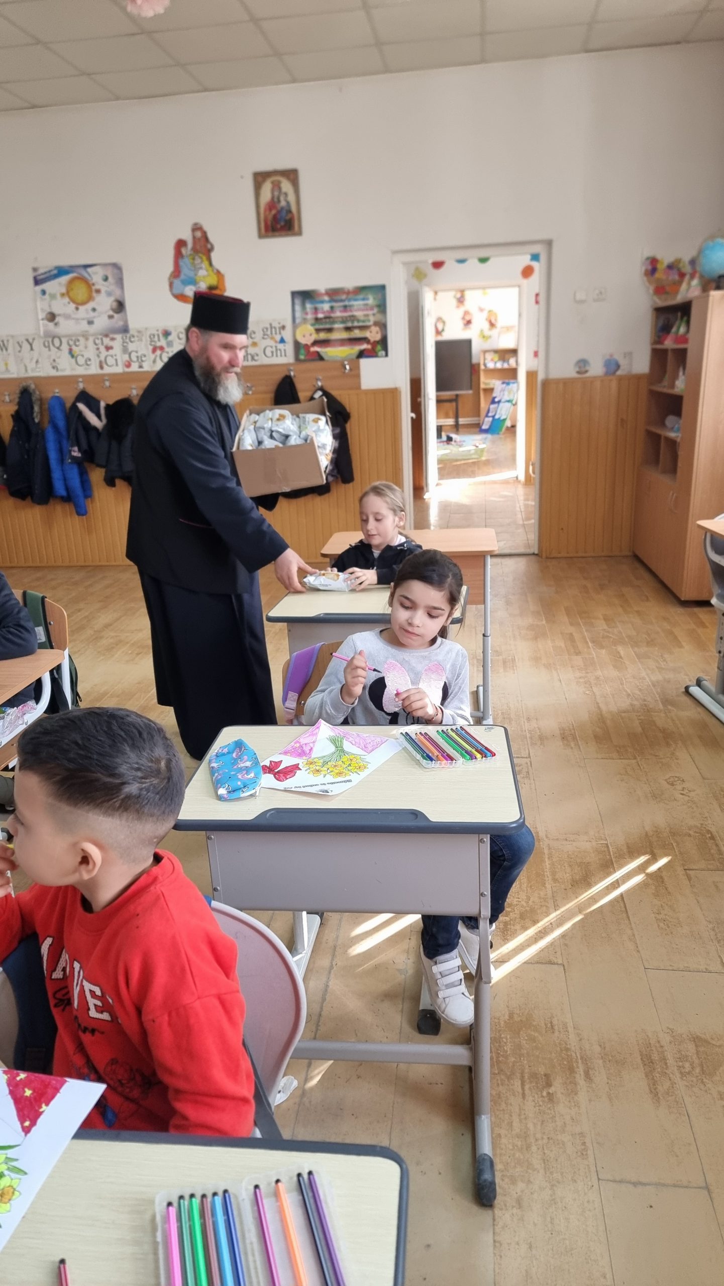 Părintele slujitor Dan Stancu de la parohia Glavacioc, protoieria Costești, desfășoară săptămânal activități pastoral-misionare pentru copiii de la unitățile de învățământ din localitate, pe care îi vizitează, le adresează cuvânt de învățătură și le oferă daruri.